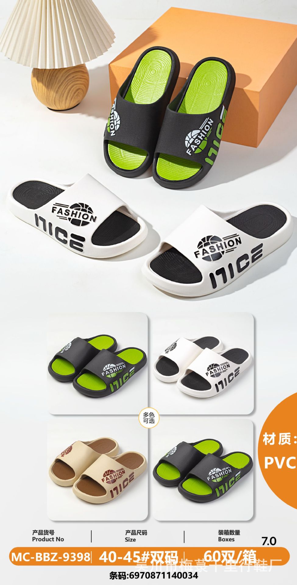 Wuchuan 새로운 패션 트렌드 스포츠 스타일 가정 및 외출 큰 어린이 남성 슬리퍼 9398