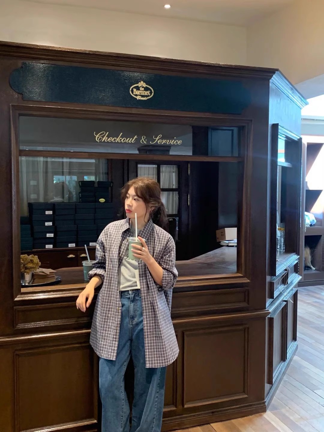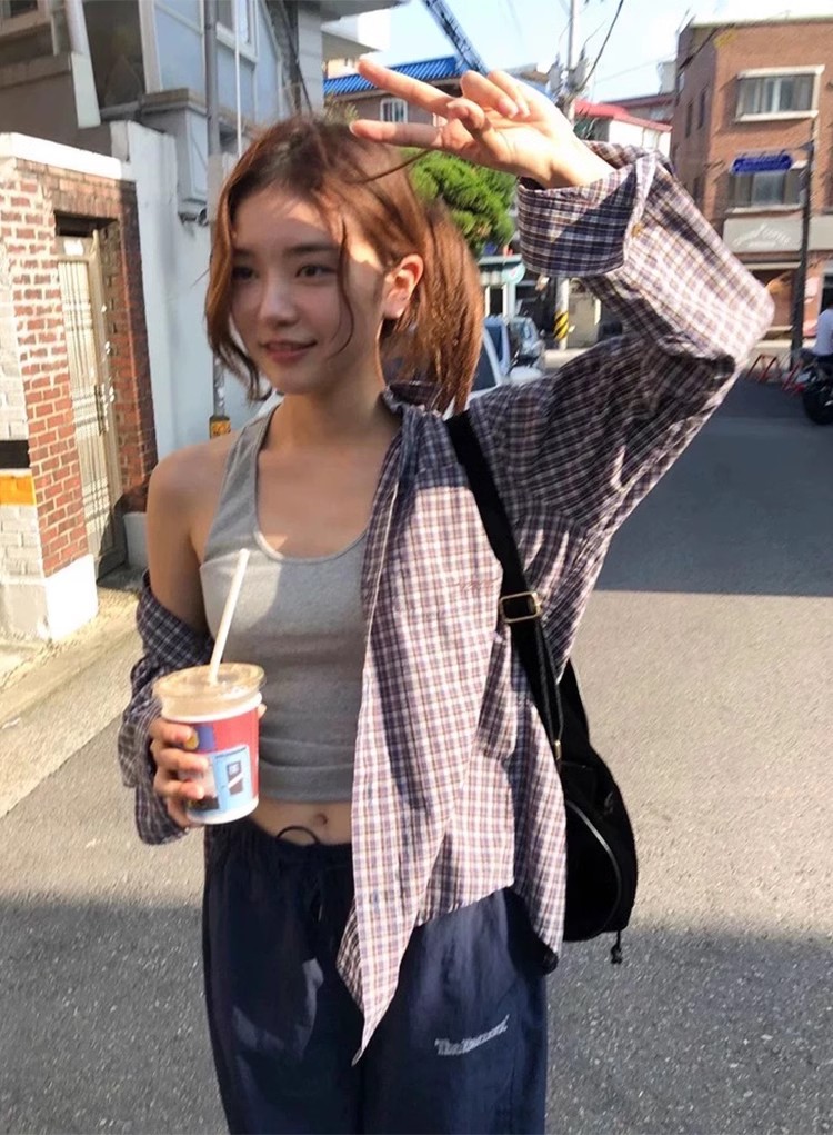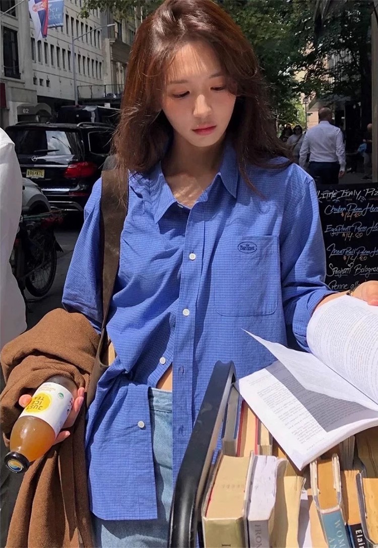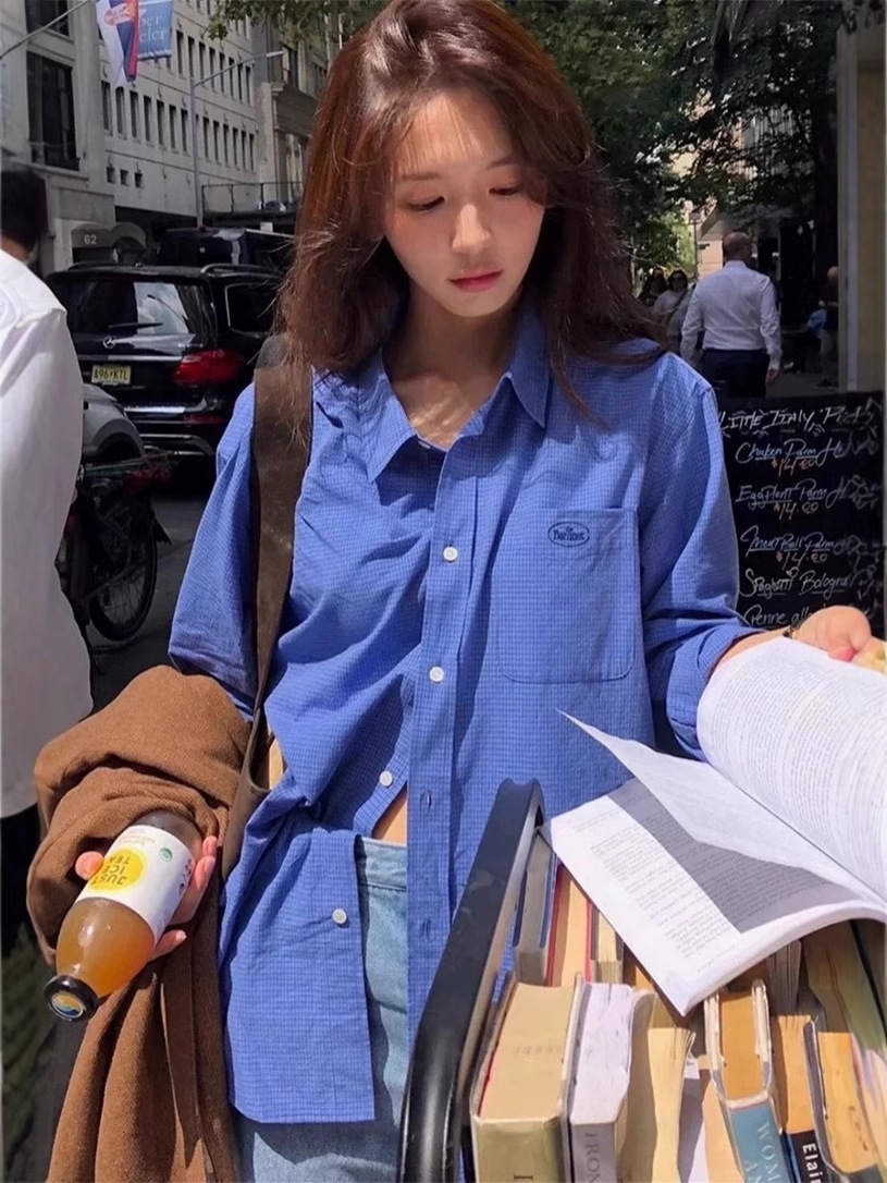 한국의 틈새 트렌드 브랜드 25 가을 컬렉션 팔니아지아 셔츠 여성 레트로 레이지 스타일 캐주얼 체크 긴팔 상의스토어 가기