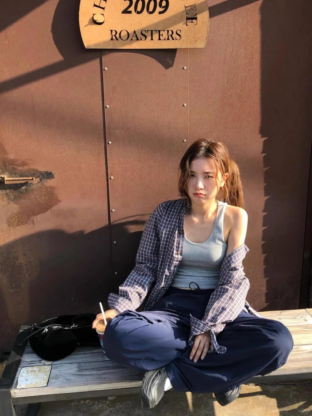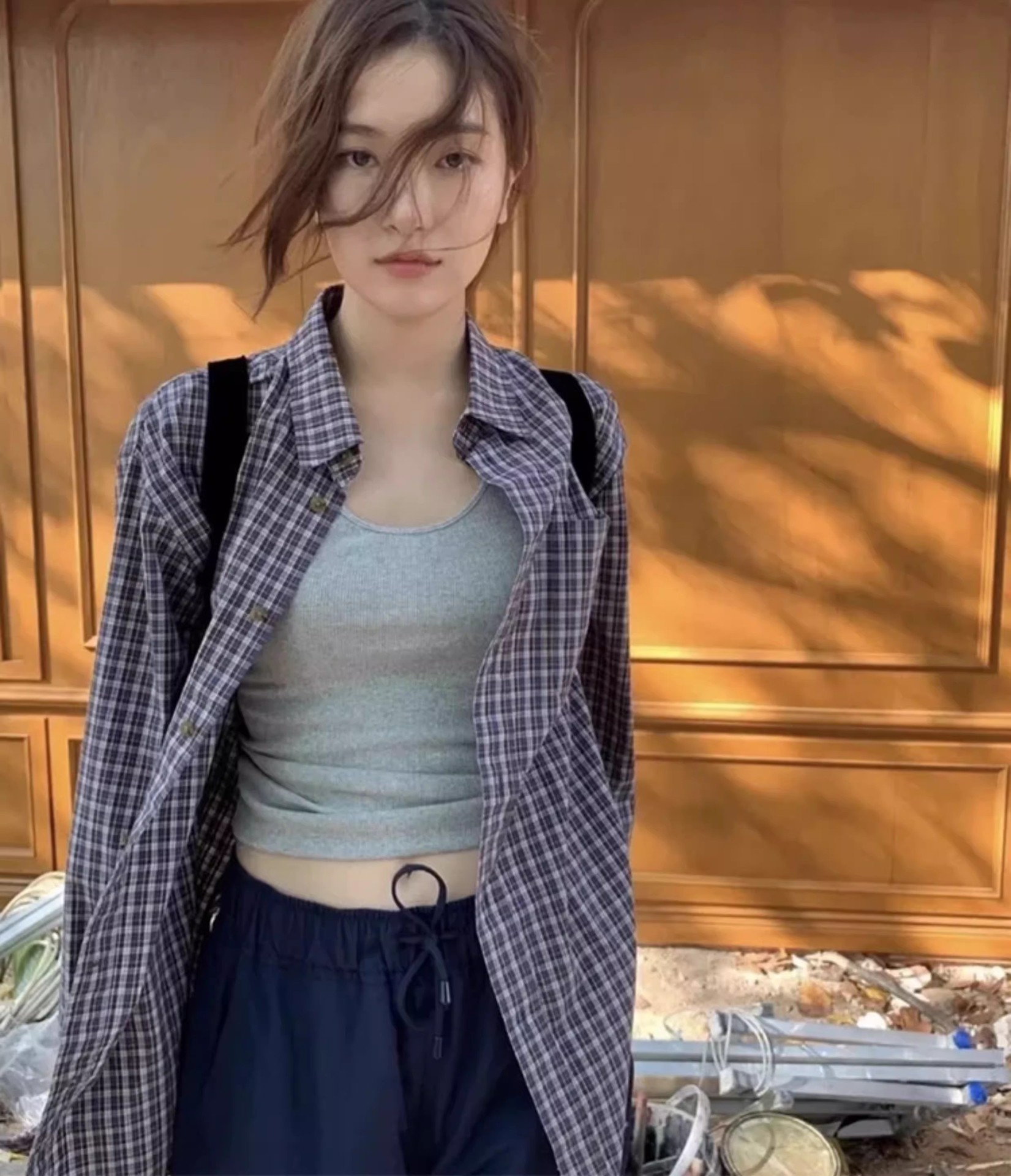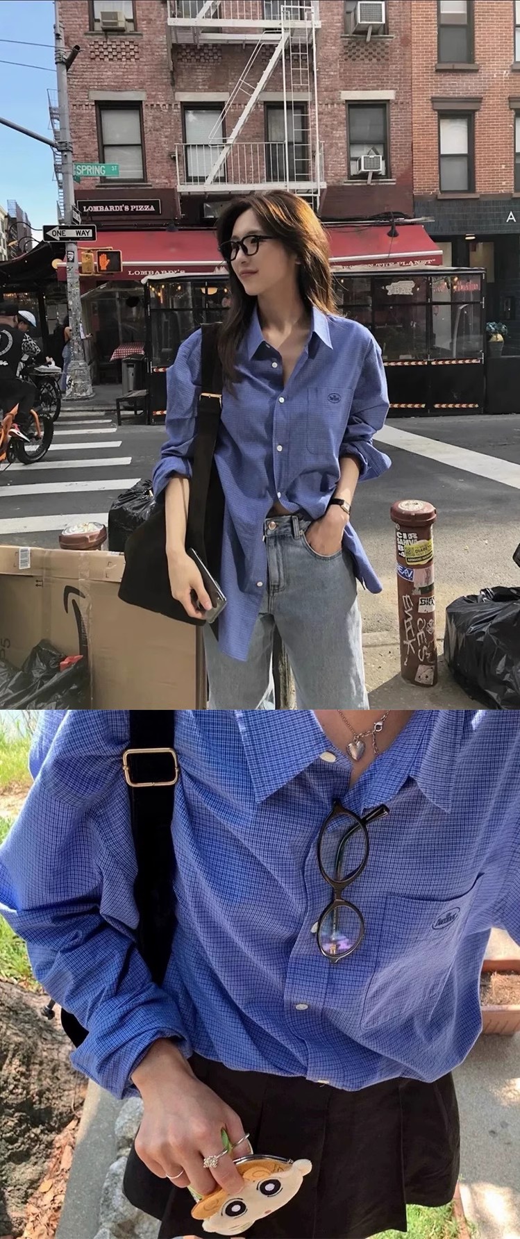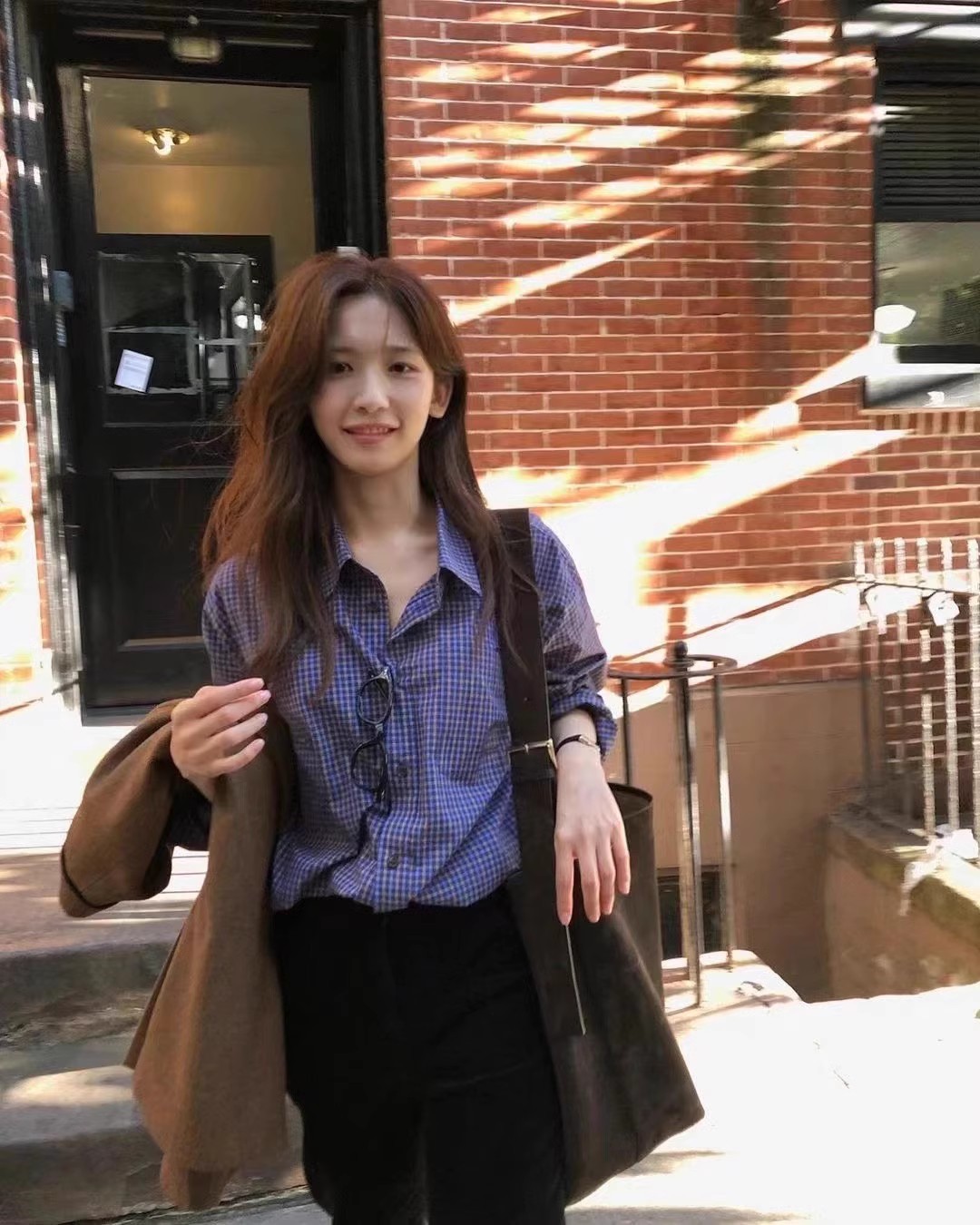 한국의 틈새 트렌드 브랜드 25 가을 컬렉션 팔니아지아 셔츠 여성 레트로 레이지 스타일 캐주얼 체크 긴팔 상의스토어 가기