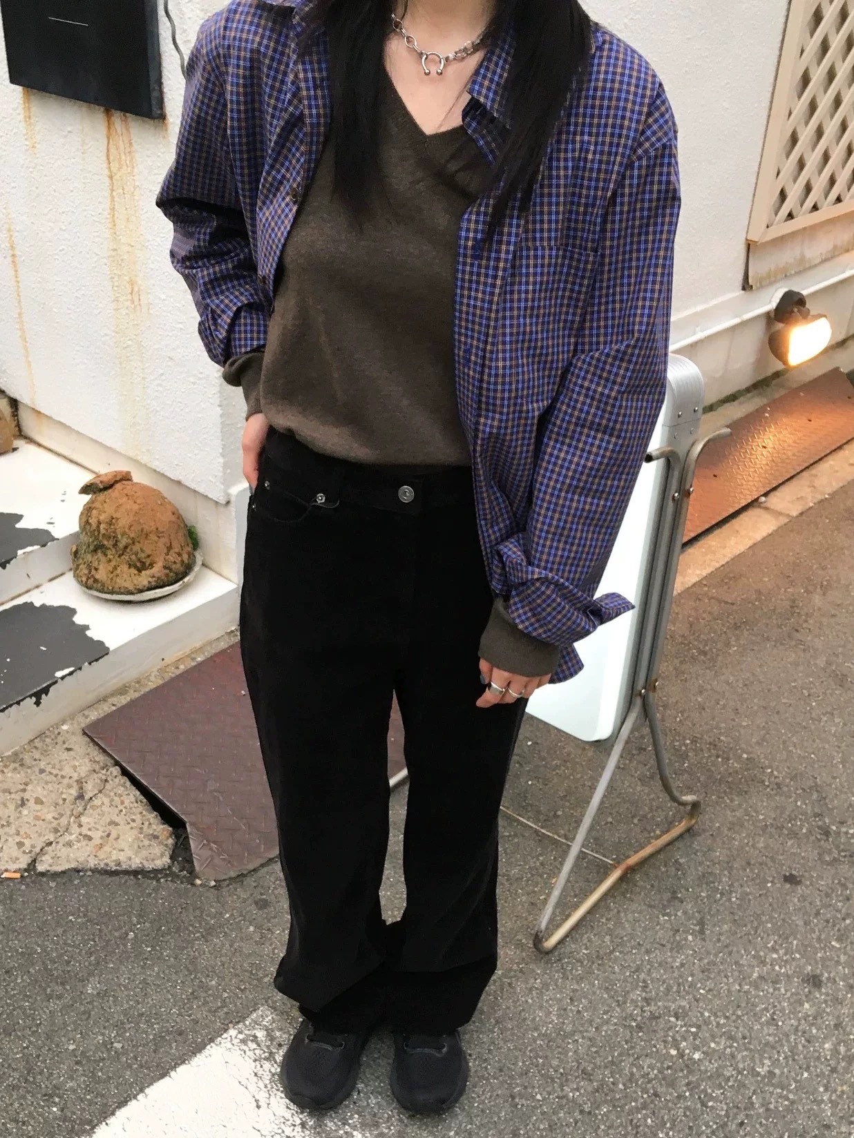 한국의 틈새 트렌드 브랜드 25 가을 컬렉션 팔니아지아 셔츠 여성 레트로 레이지 스타일 캐주얼 체크 긴팔 상의