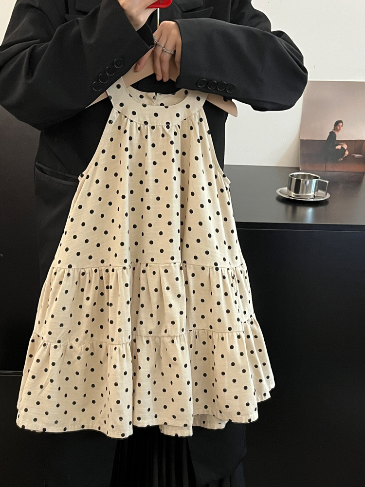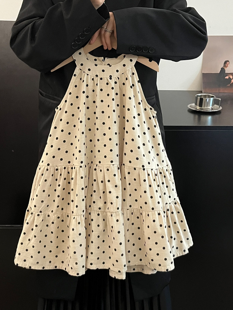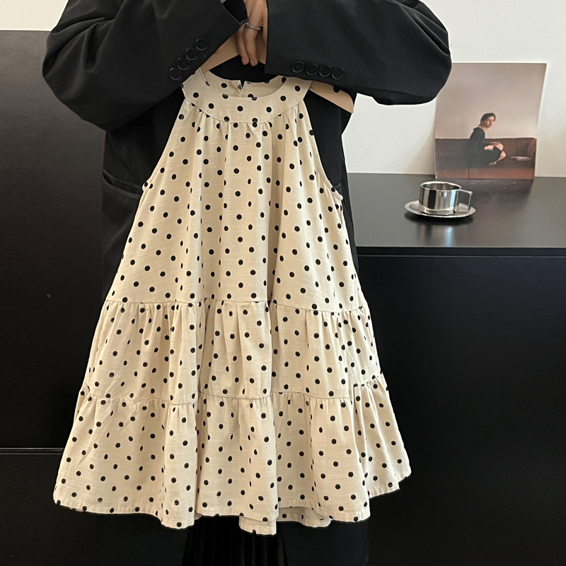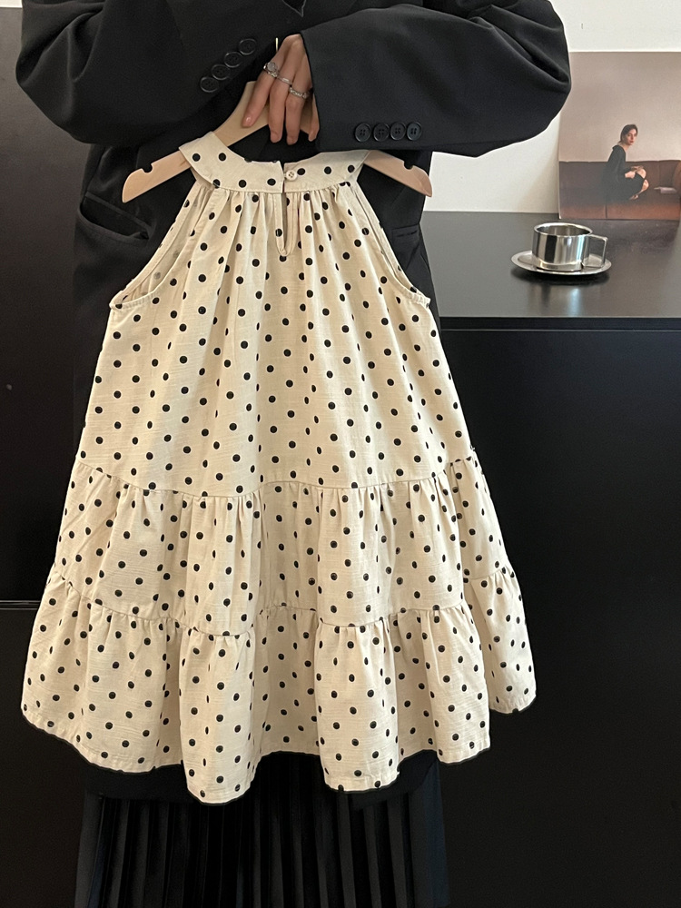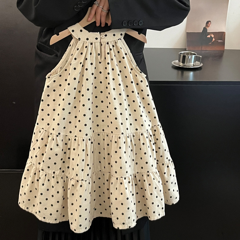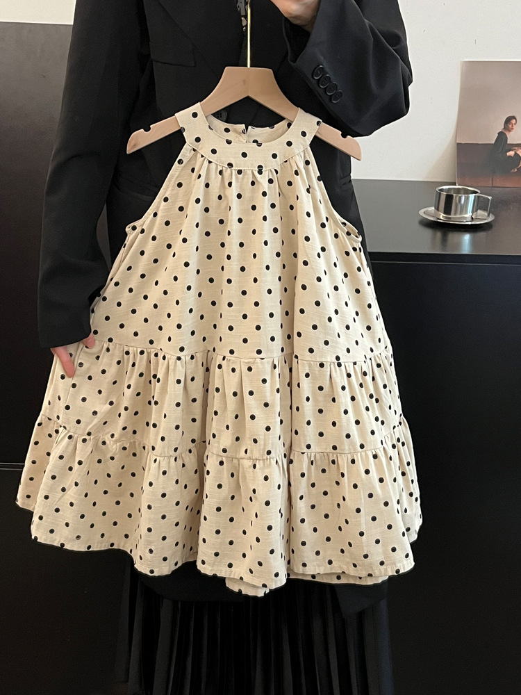 한국 스타일 유행 여름 어린이 의류 새 스타일 소녀 서양식 둥근 목 슬립 스커트 아기 소녀 용 도트 프린트 원피스스토어 가기