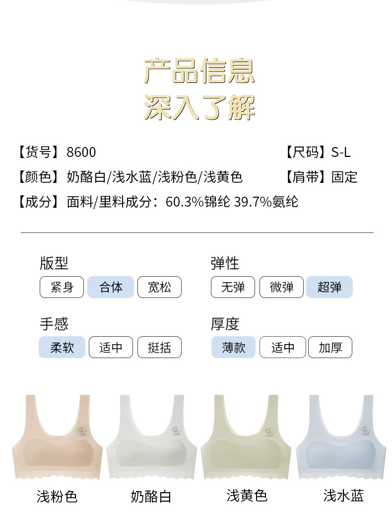 여아 1 단계 추적없는 속옷 편안한 통기성 경량 조끼 초등학생을위한 안티 범프 브라