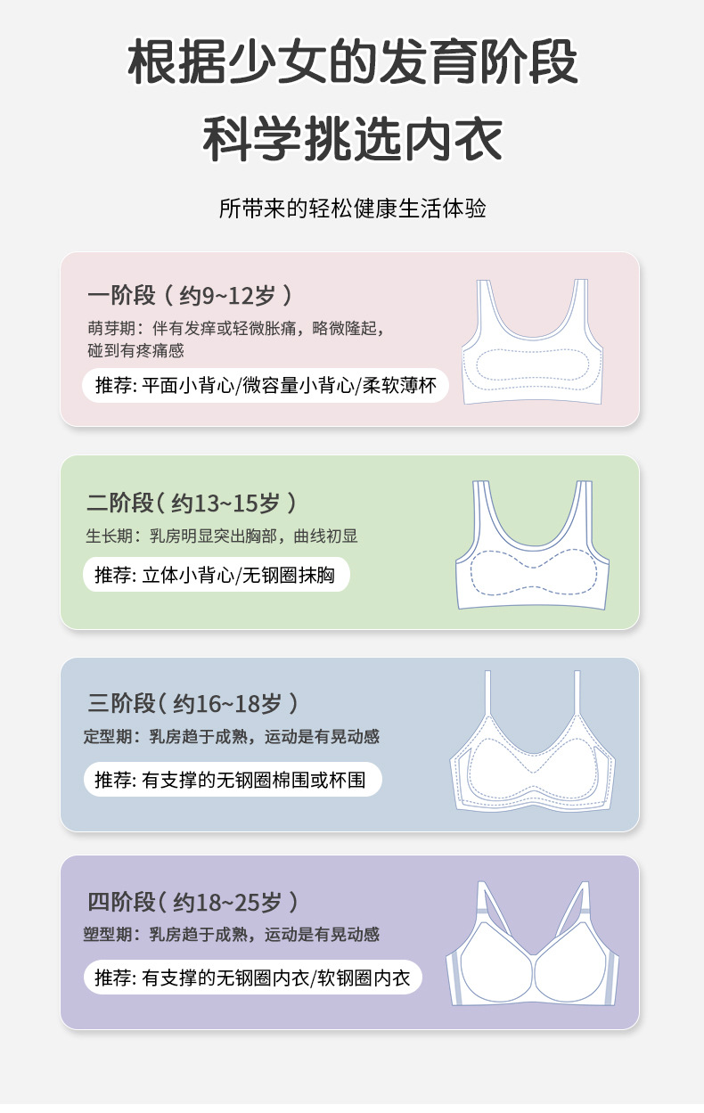 여아 1 단계 추적없는 속옷 편안한 통기성 경량 조끼 초등학생을위한 안티 범프 브라스토어 가기