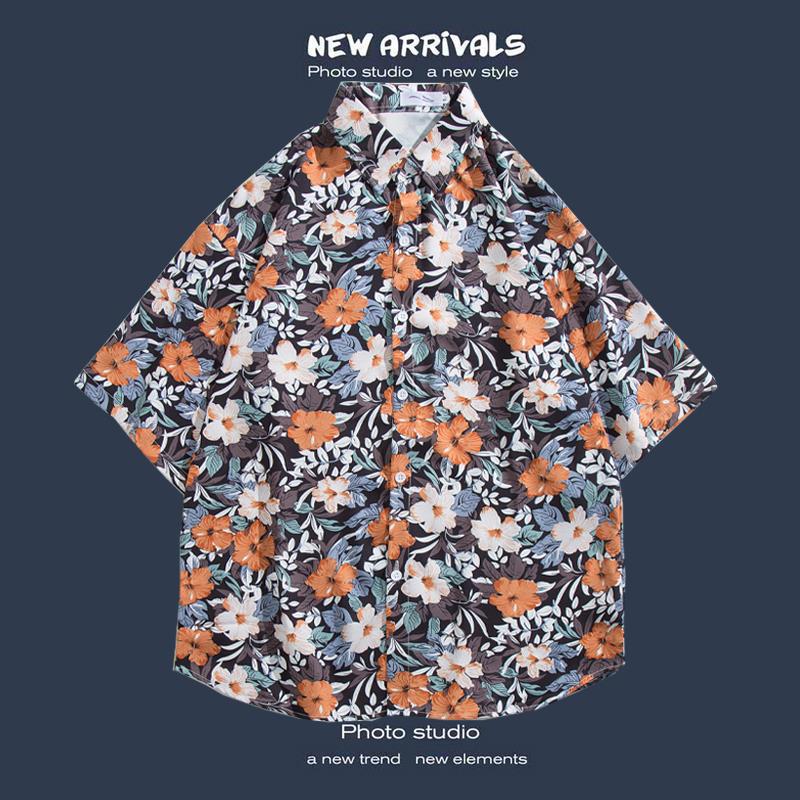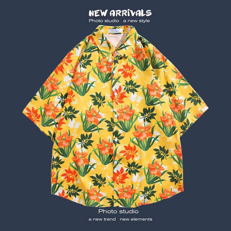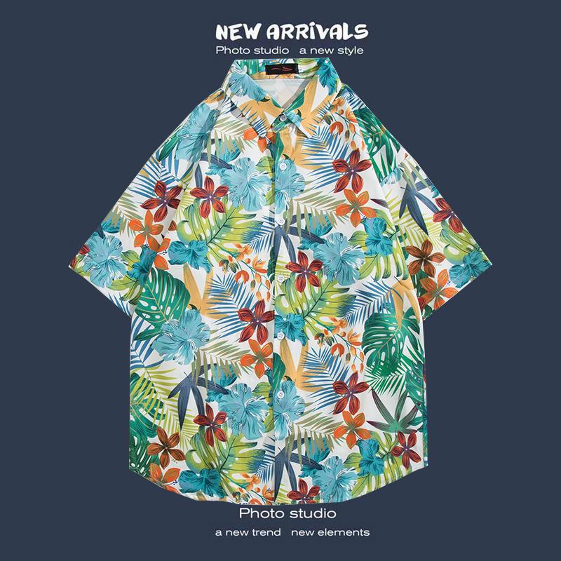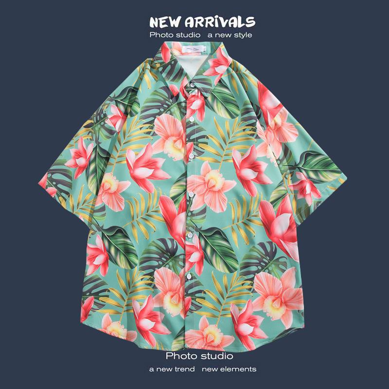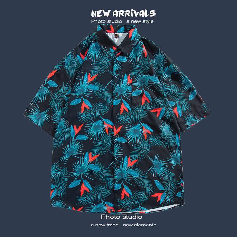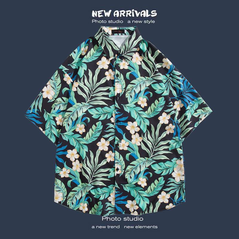 반팔 꽃 무늬 셔츠 하이난 섬 해변 항구 스타일 Sanya Xia Wei 스타일 태국 여행 남성 커플 캐주얼 느슨한 코트스토어 가기