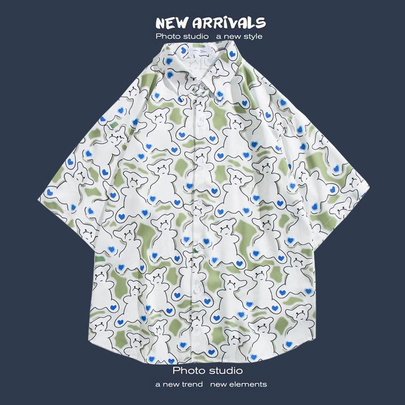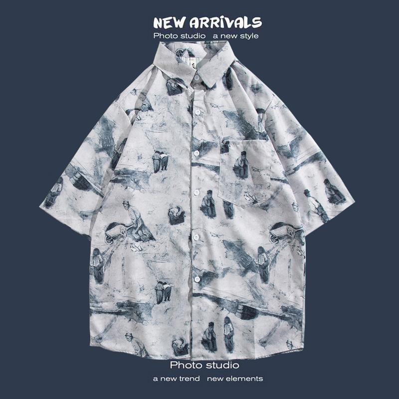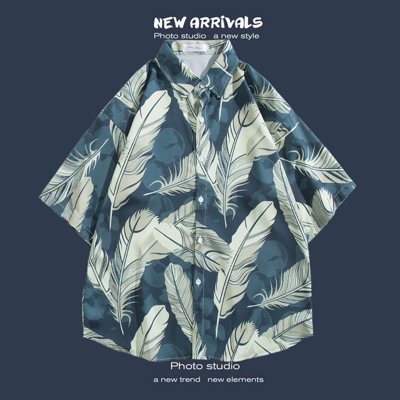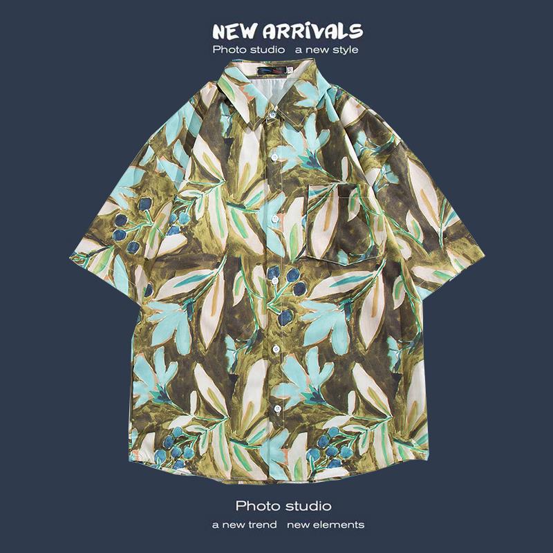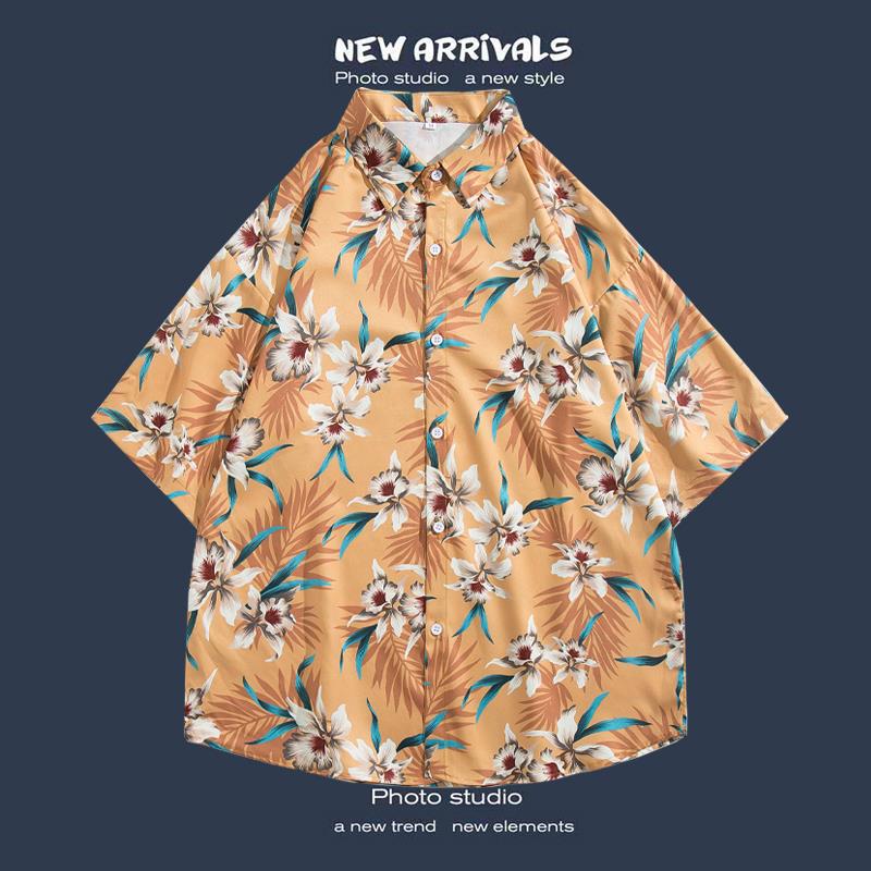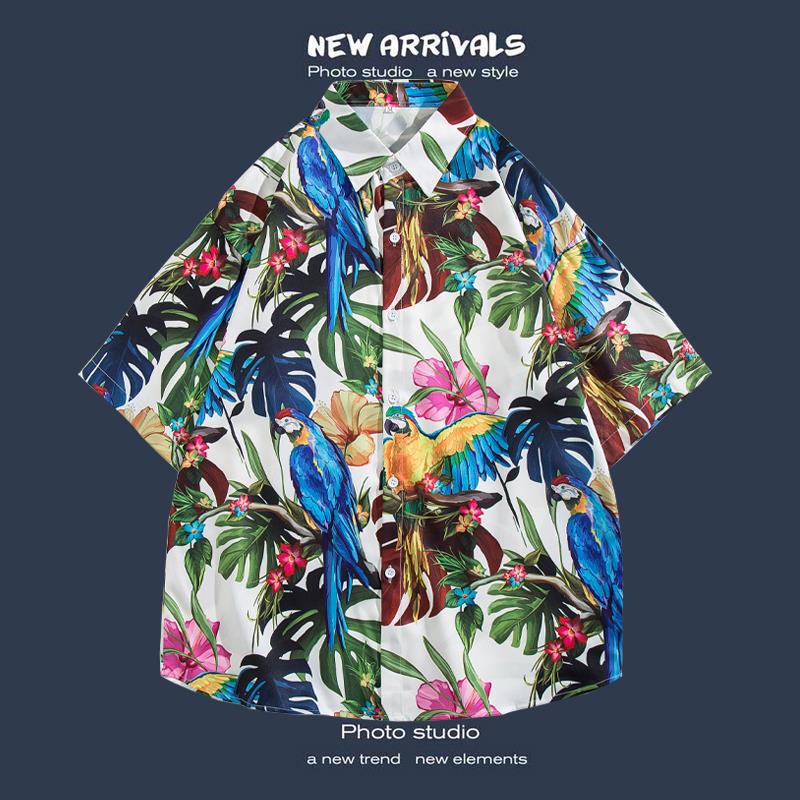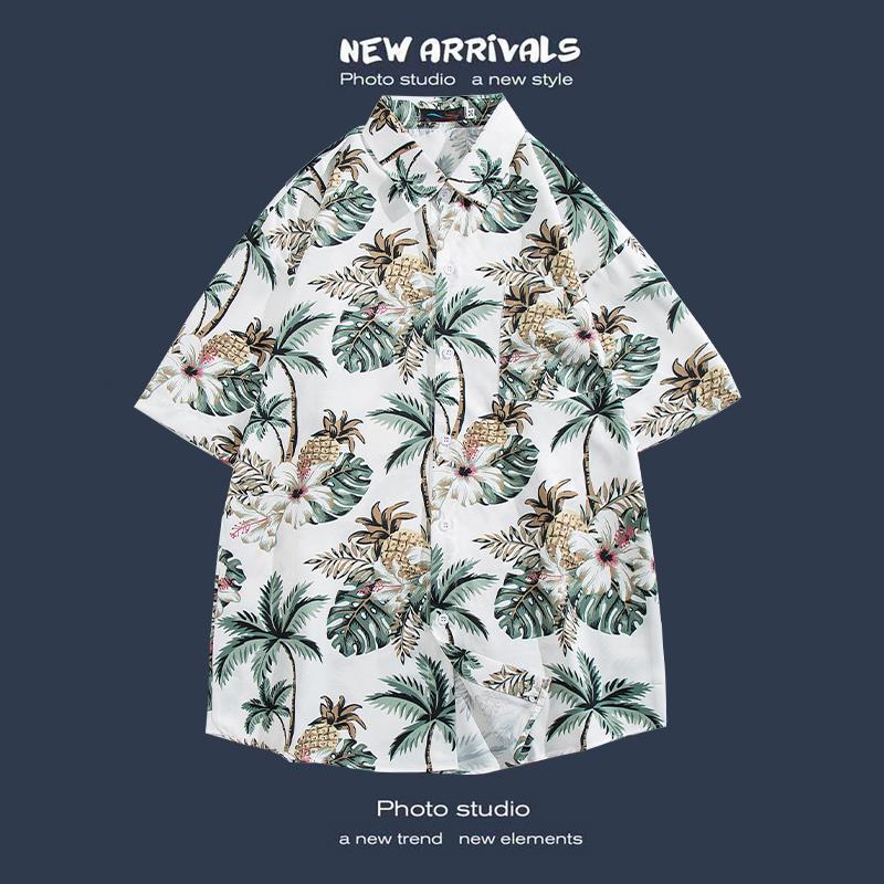 반팔 꽃 무늬 셔츠 하이난 섬 해변 항구 스타일 Sanya Xia Wei 스타일 태국 여행 남성 커플 캐주얼 느슨한 코트스토어 가기