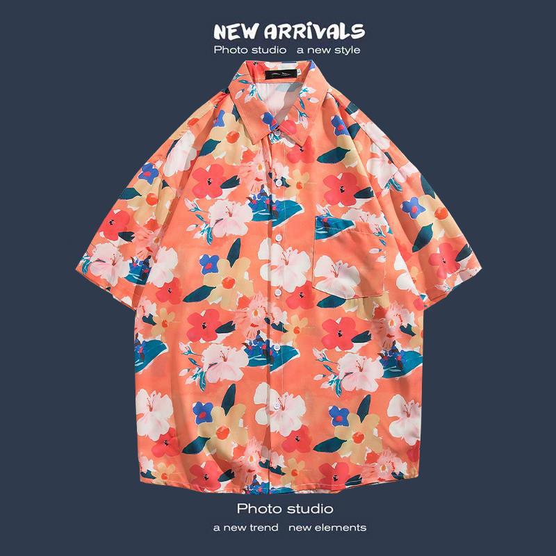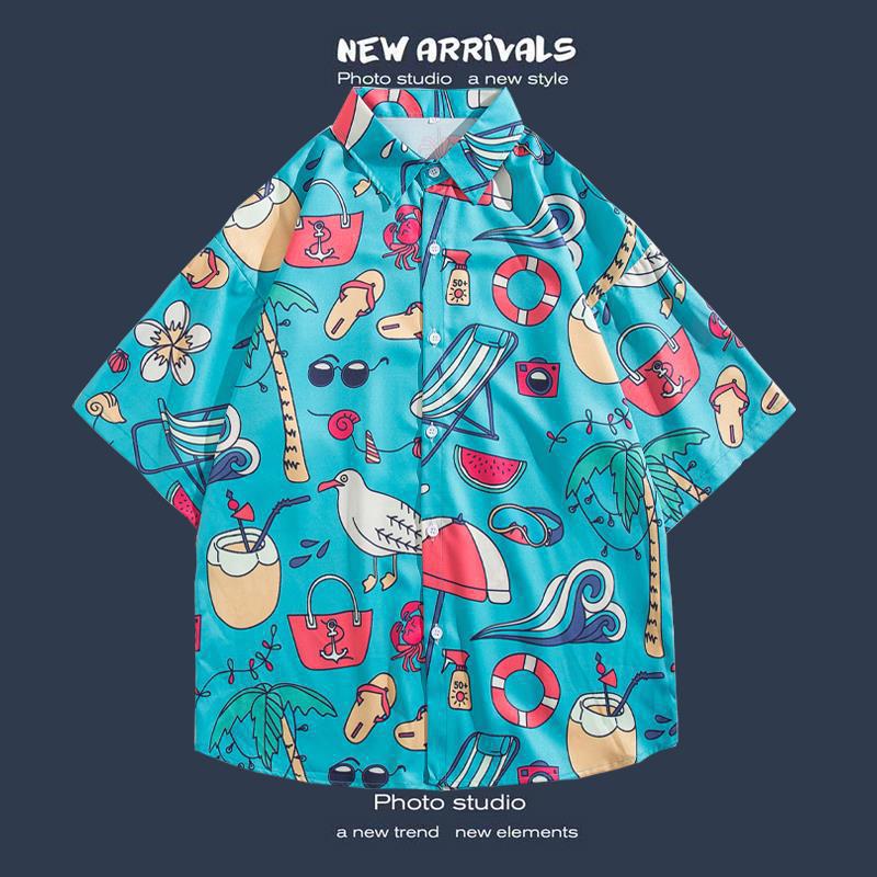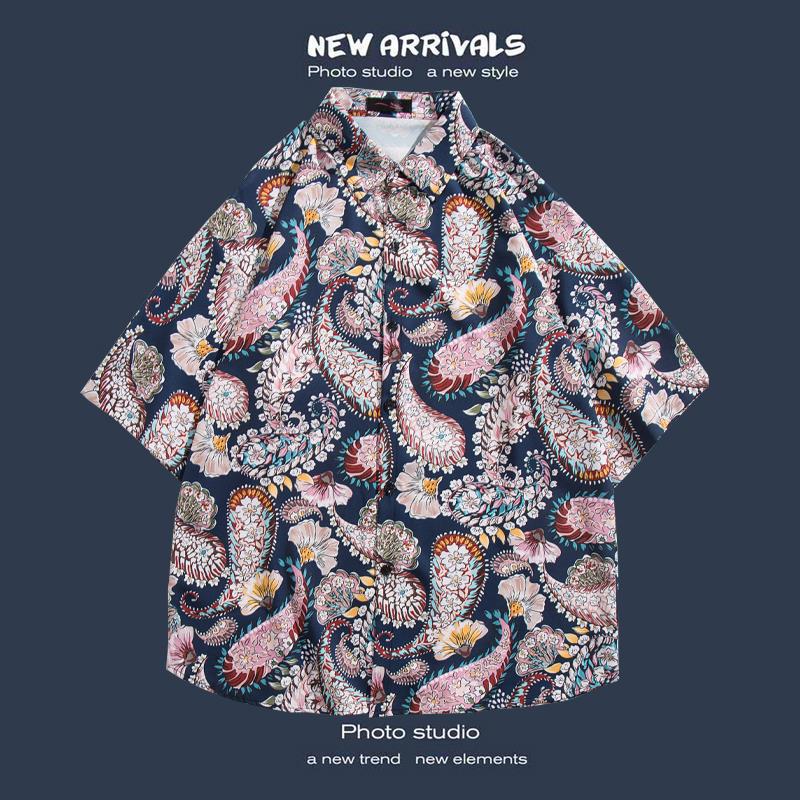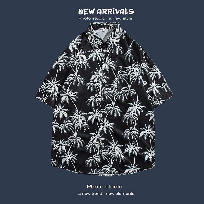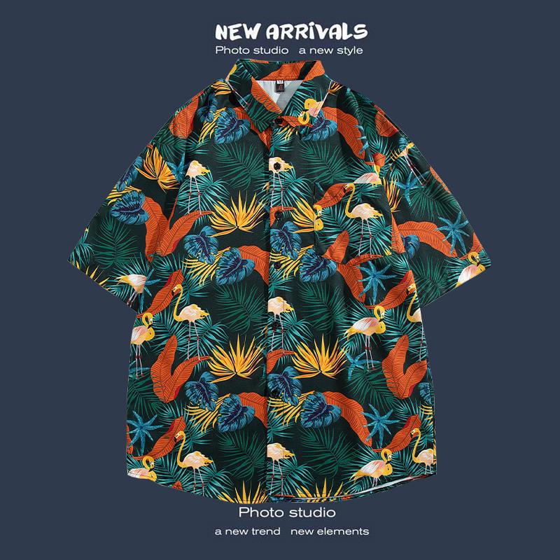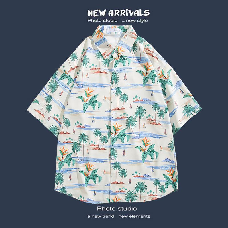 반팔 꽃 무늬 셔츠 하이난 섬 해변 항구 스타일 Sanya Xia Wei 스타일 태국 여행 남성 커플 캐주얼 느슨한 코트