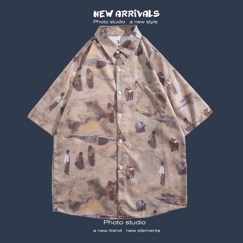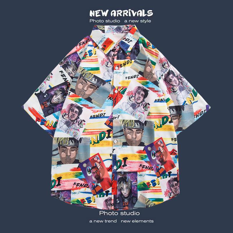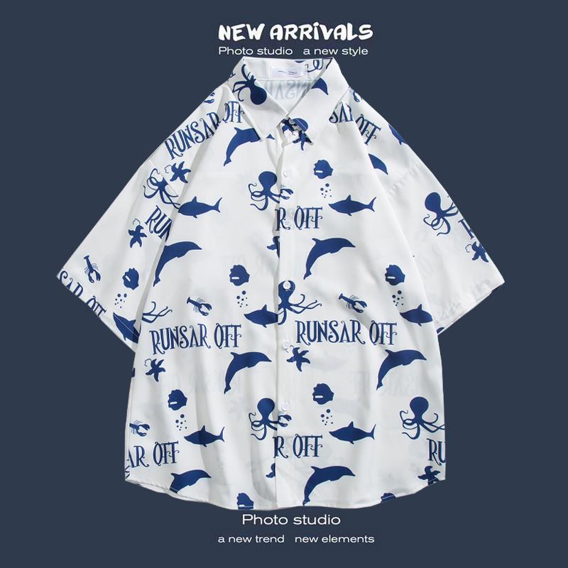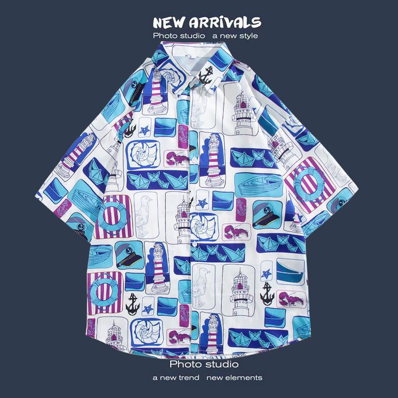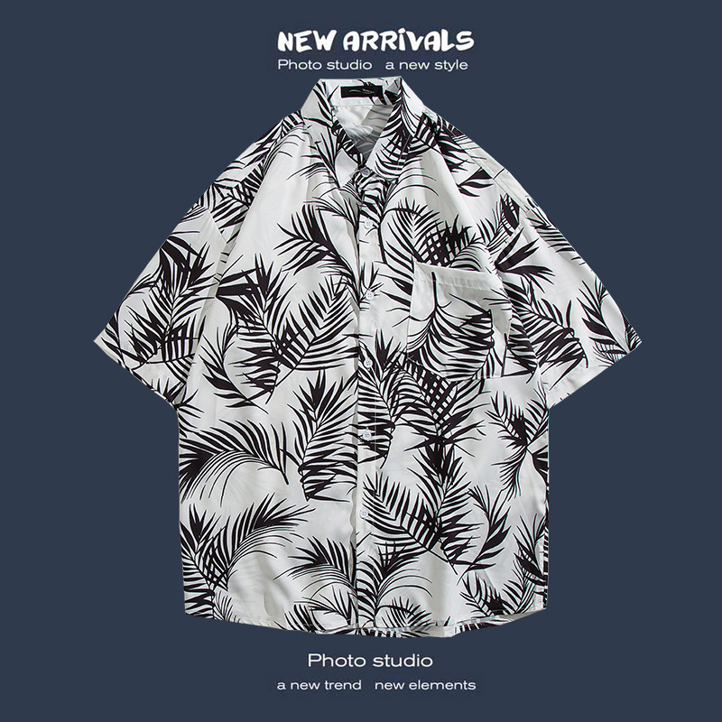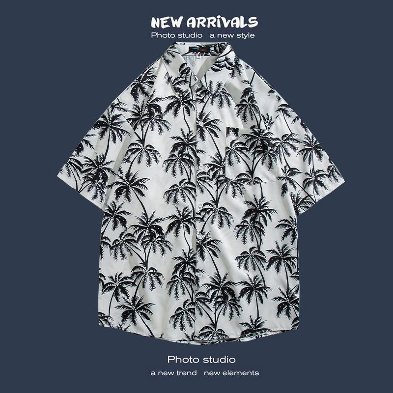 반팔 꽃 무늬 셔츠 하이난 섬 해변 항구 스타일 Sanya Xia Wei 스타일 태국 여행 남성 커플 캐주얼 느슨한 코트
