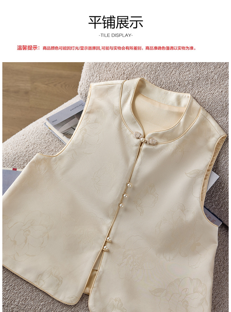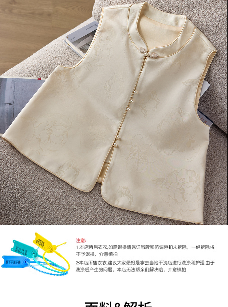 국가 스타일 Acetic Acid Jacquard 조끼 새로운 탑 여성의 우아한 칼라 허리 코트 하이 엔드 새로운 중국 조끼 봄