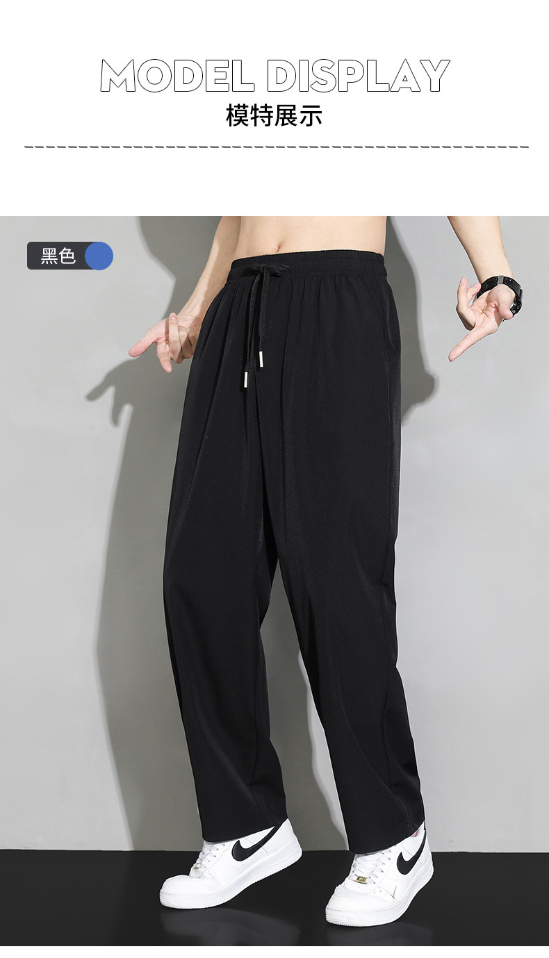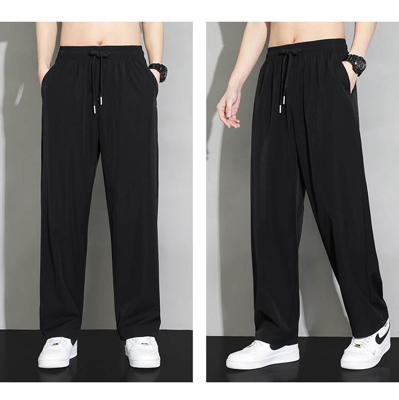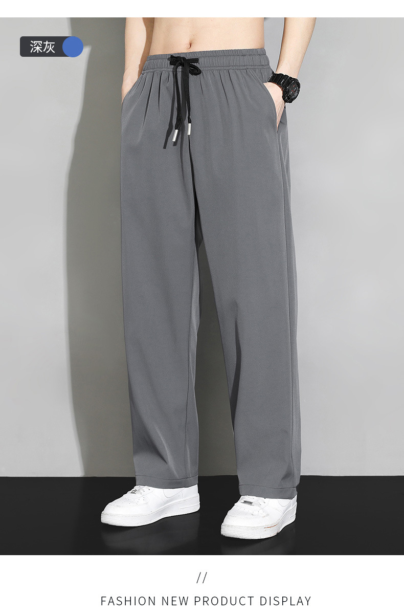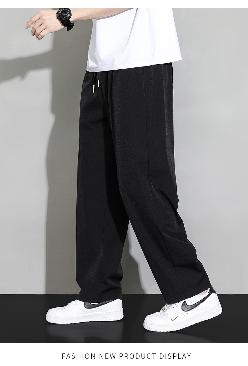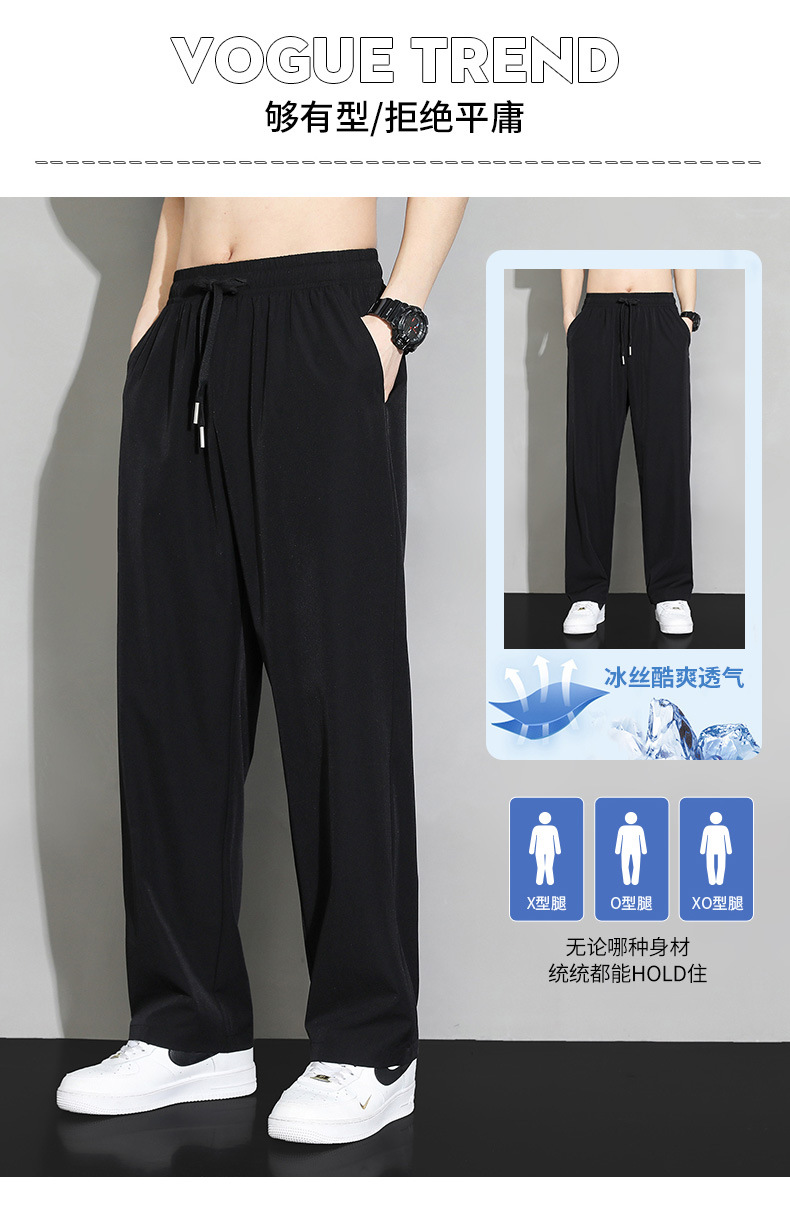 바지 남자 여름 바지 스트레이트 튜브 루즈 스포츠 바지 남자 2025 새로운 아이스 실크 캐주얼 바지 남자 바지