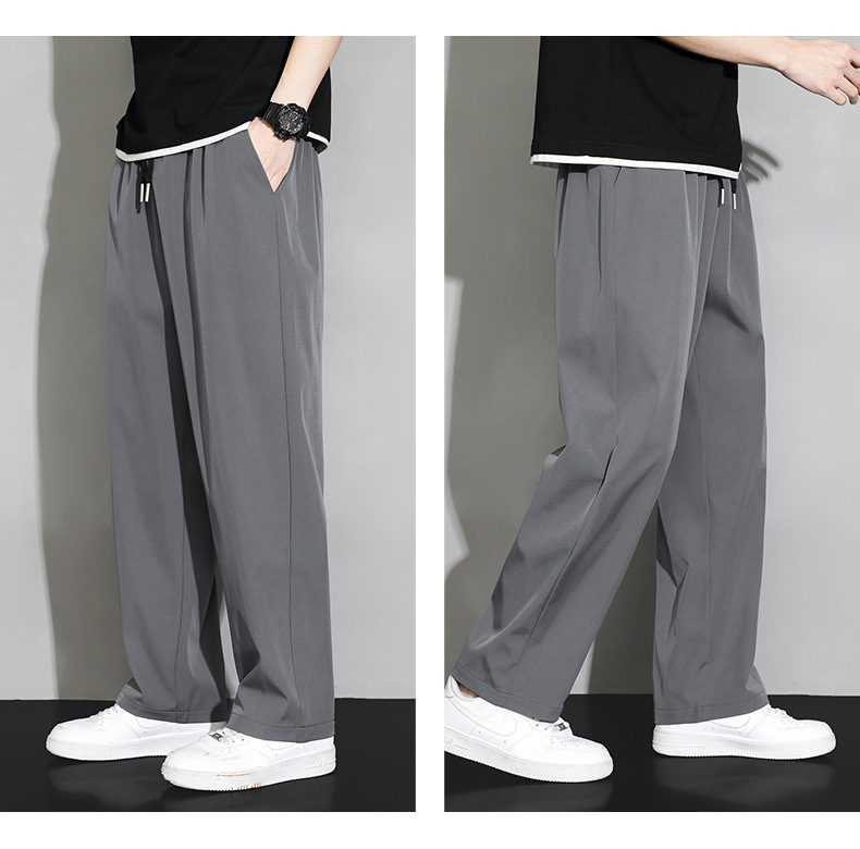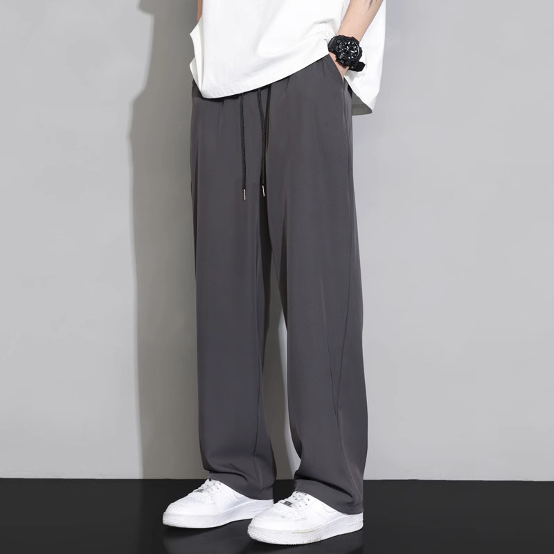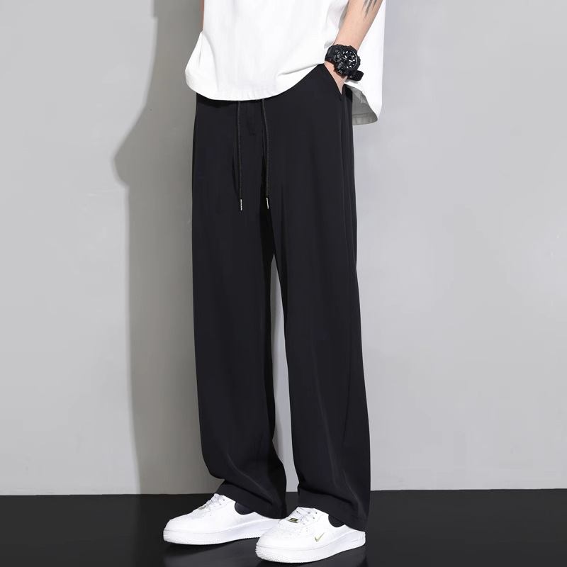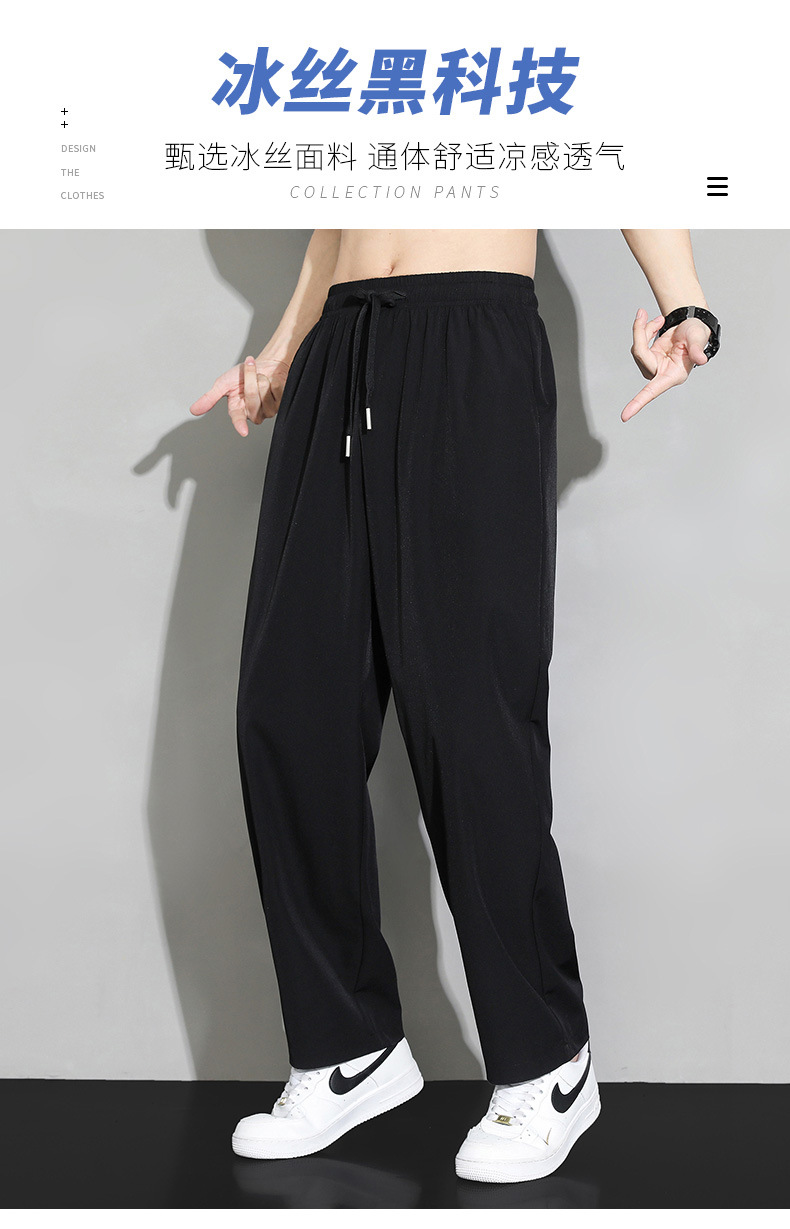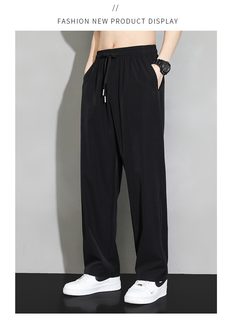 바지 남자 여름 바지 스트레이트 튜브 루즈 스포츠 바지 남자 2025 새로운 아이스 실크 캐주얼 바지 남자 바지