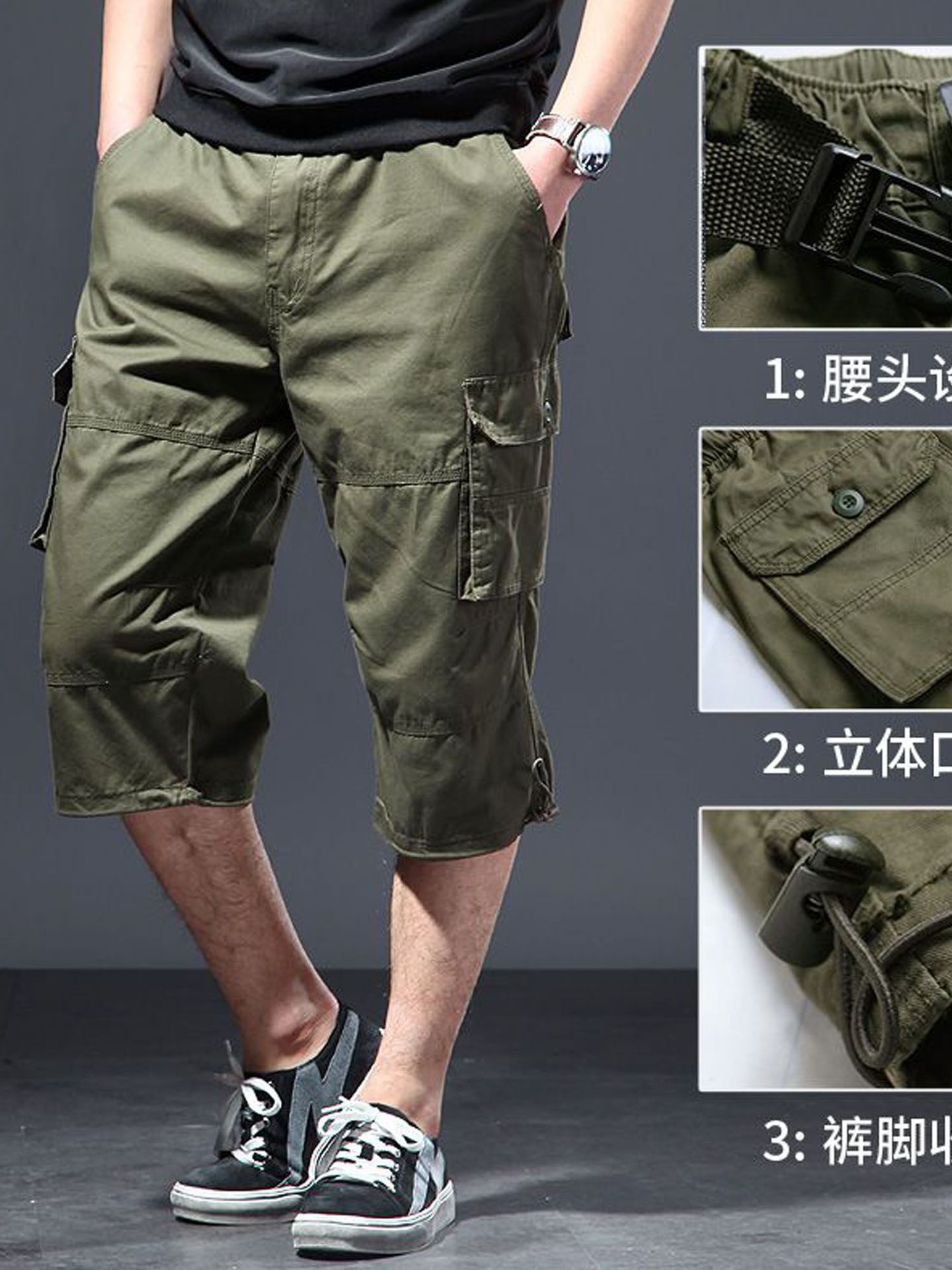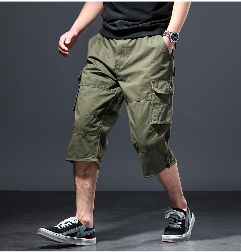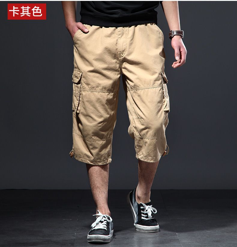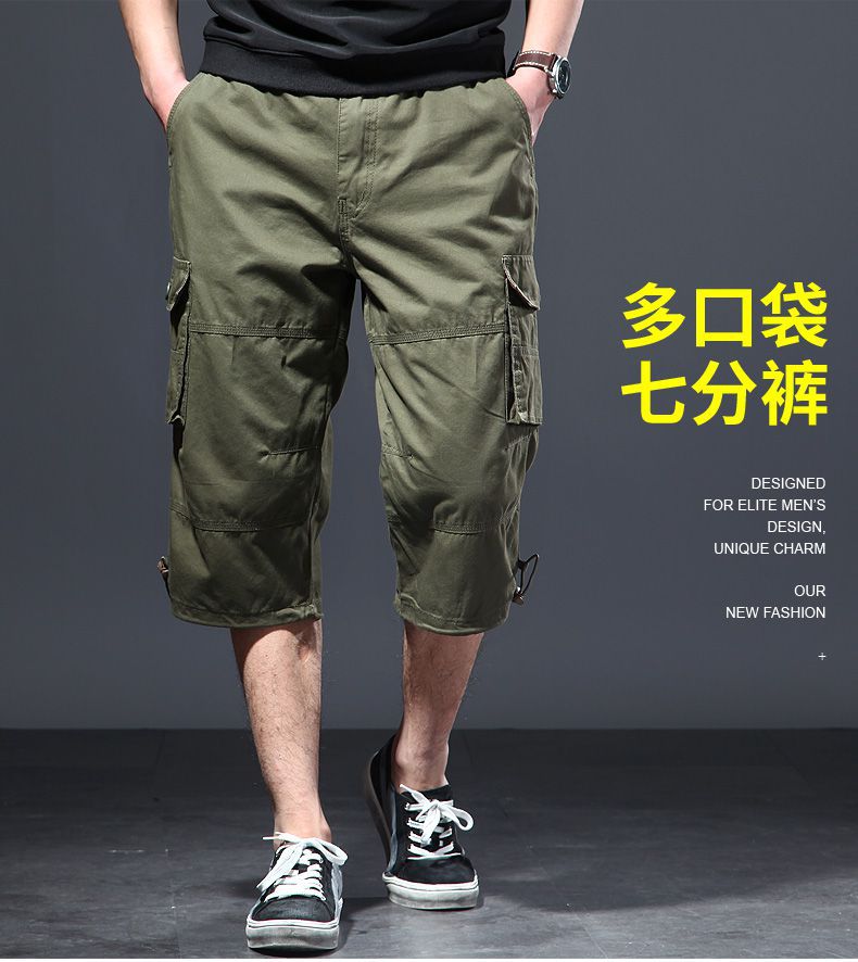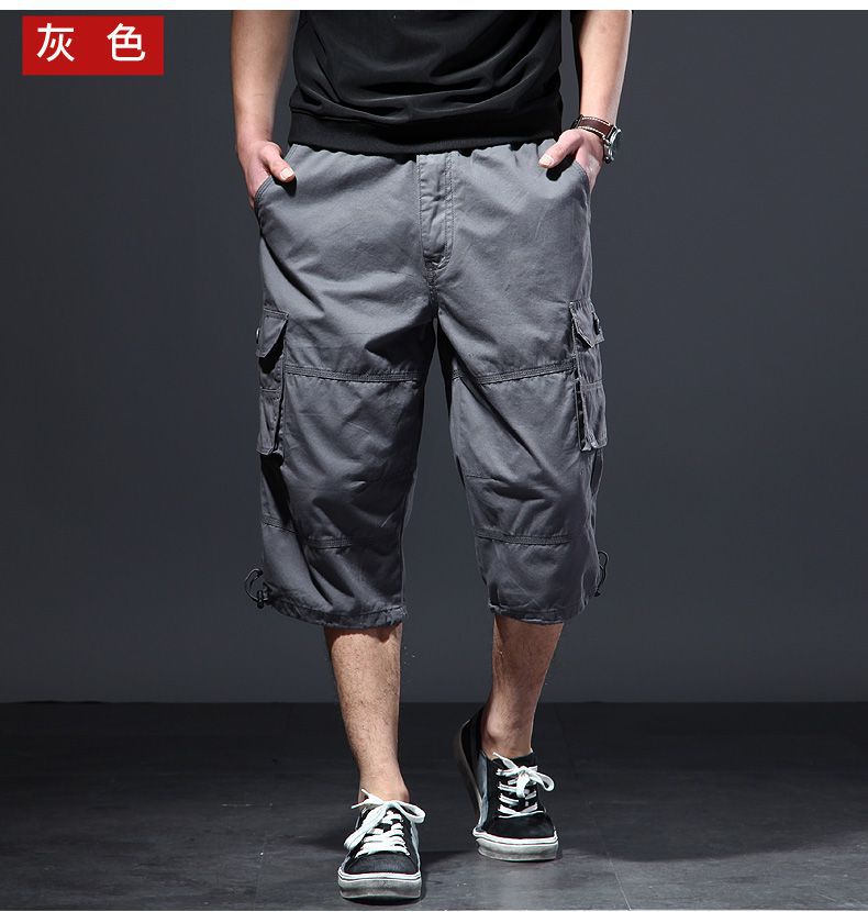 여름 느슨한 작업복 카프리 바지 남성용 스포츠 반바지 플러스 지방지방 남성용 대형 캐주얼 7 바지