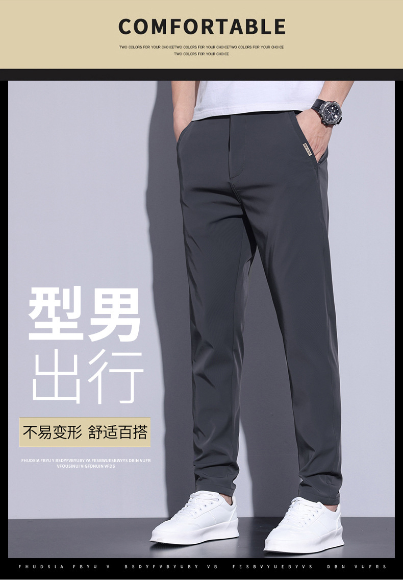 2026 남성용 4방향 신축성 속건 아이스 실크 팬츠 여름용 얇은 스트레이트 스포츠 팬츠 비즈니스 캐주얼 팬츠 신축성 있는 큰 사이즈