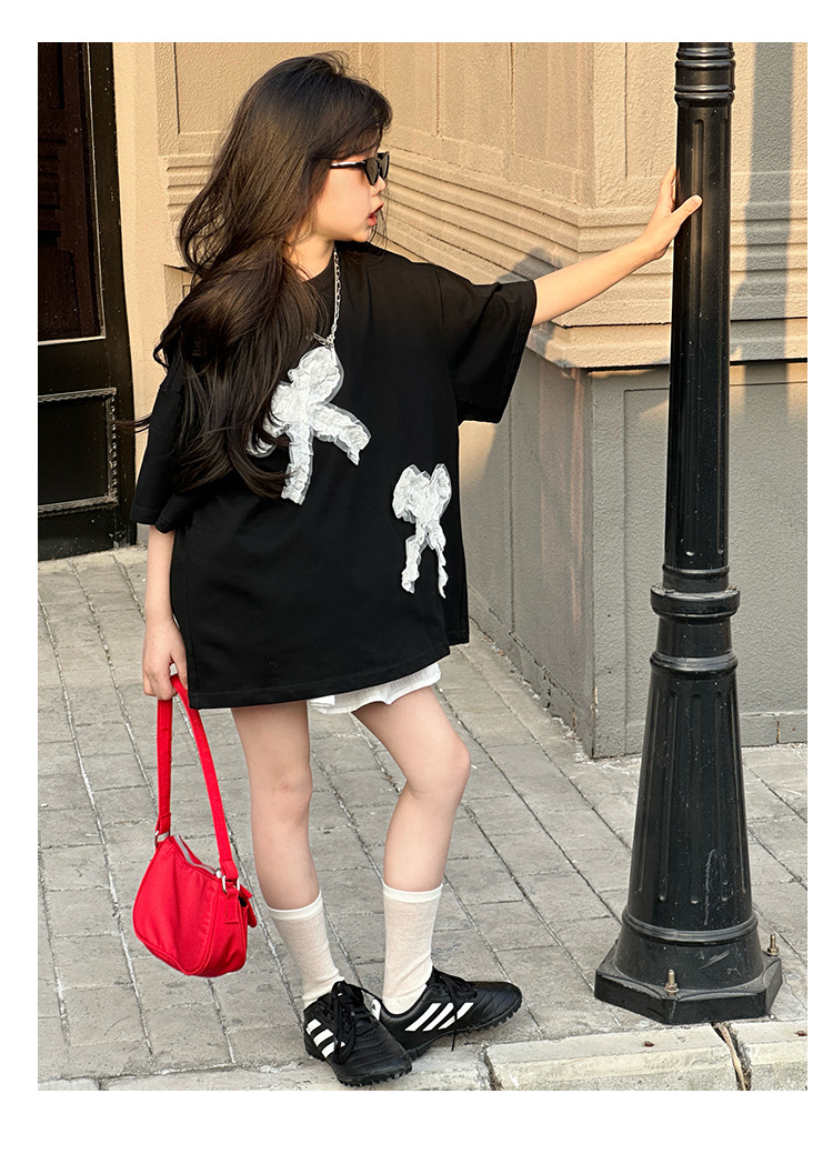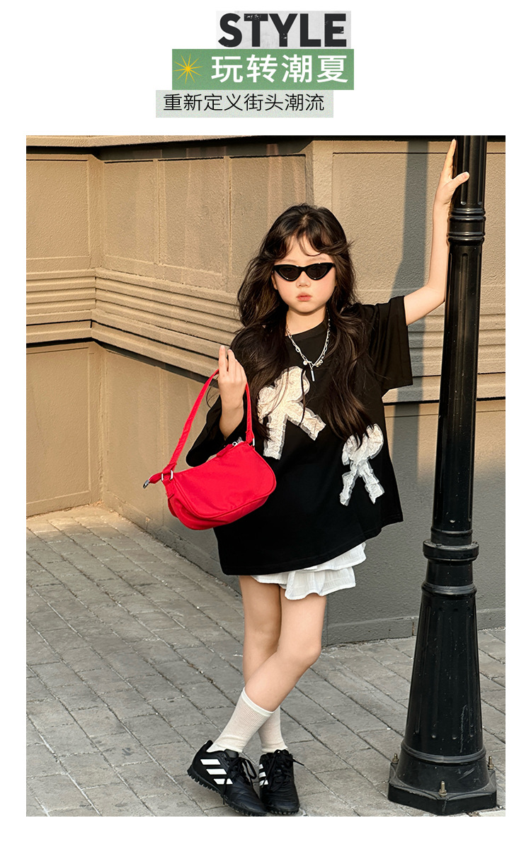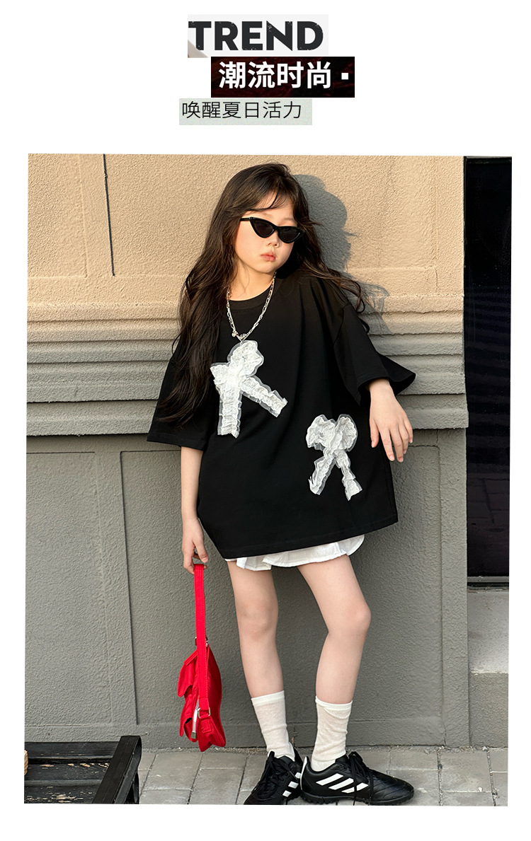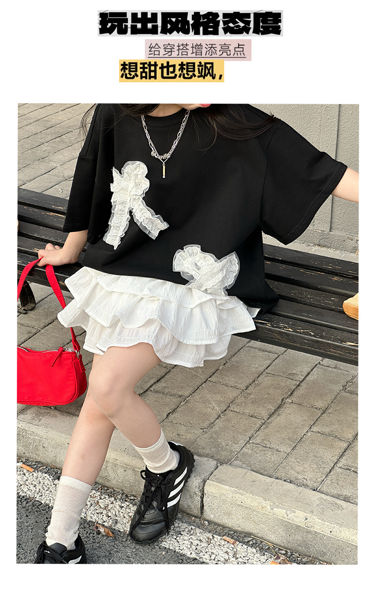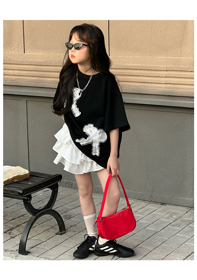 소녀 세트 어린이 패션 레이스 활 반팔 티셔츠 2025 봄 원피스 어린 소녀의 귀여운 꽃 버드 스커트