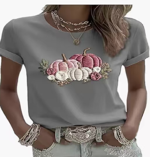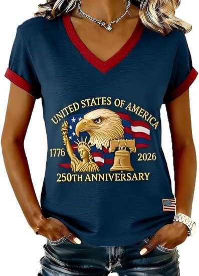 2025 유럽과 미국 국경 3D 디지털 인쇄 라운드 넥 티셔츠 봄과 여름 짧은 소매 라운드 넥 재킷 짧은 소매 여성 티셔츠 편지스토어 가기