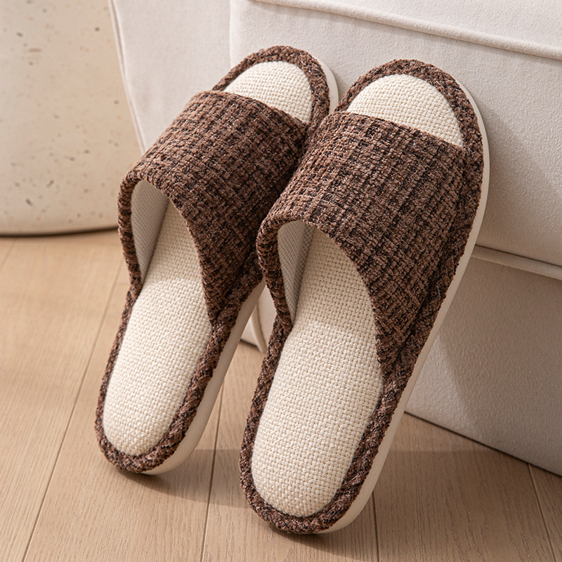 남성용 린넨 슬리퍼, 통기성 실내 홈, 미끄럼 방지, 부드러운 바닥, 저소음, 땀 흡수성, 봄, 가을, 여성용 면 및 린넨 신발