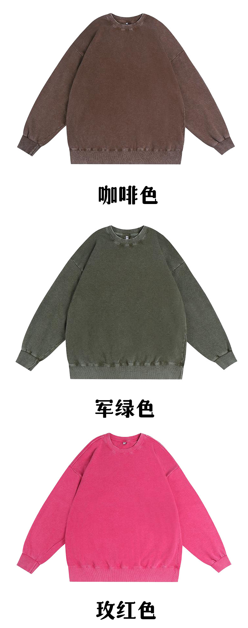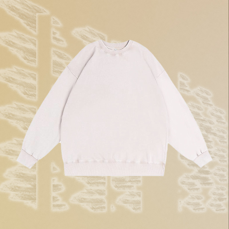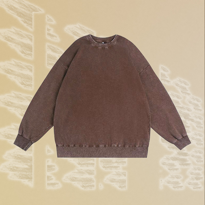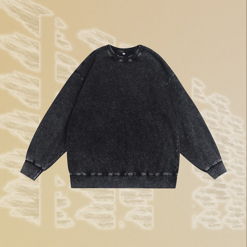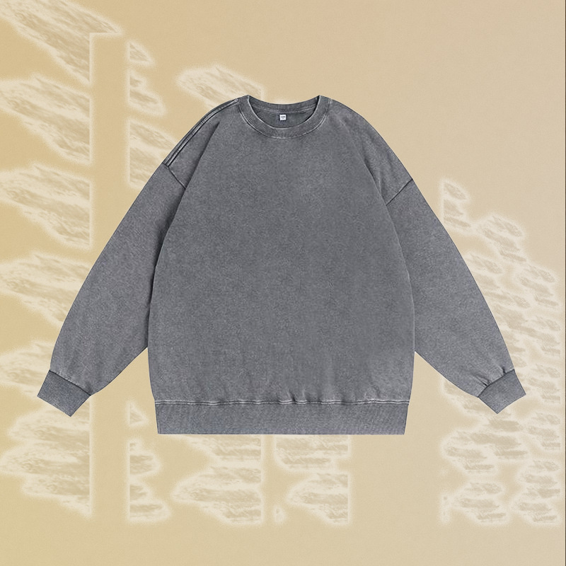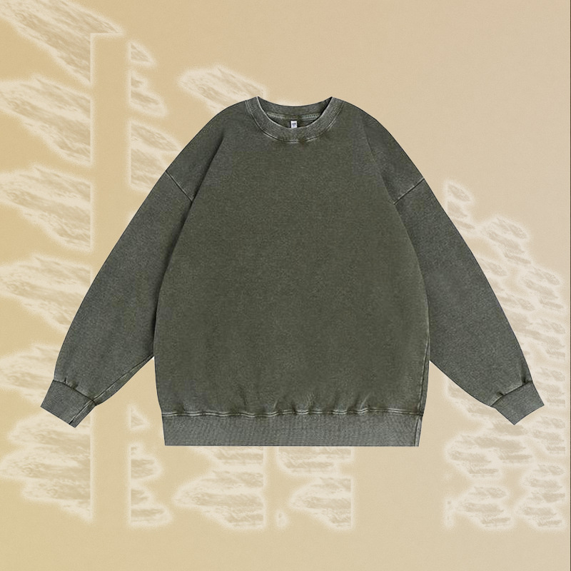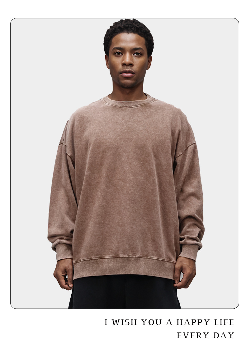 남성용 350g 왁스 염색 빈티지 라운드넥 스웨트셔츠, 아메리칸 스타일 드롭숄더 레트로 워싱 가을 겨울 긴팔 순면 이너웨어
