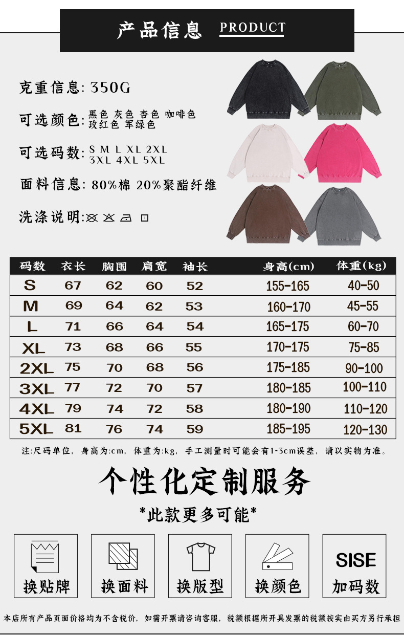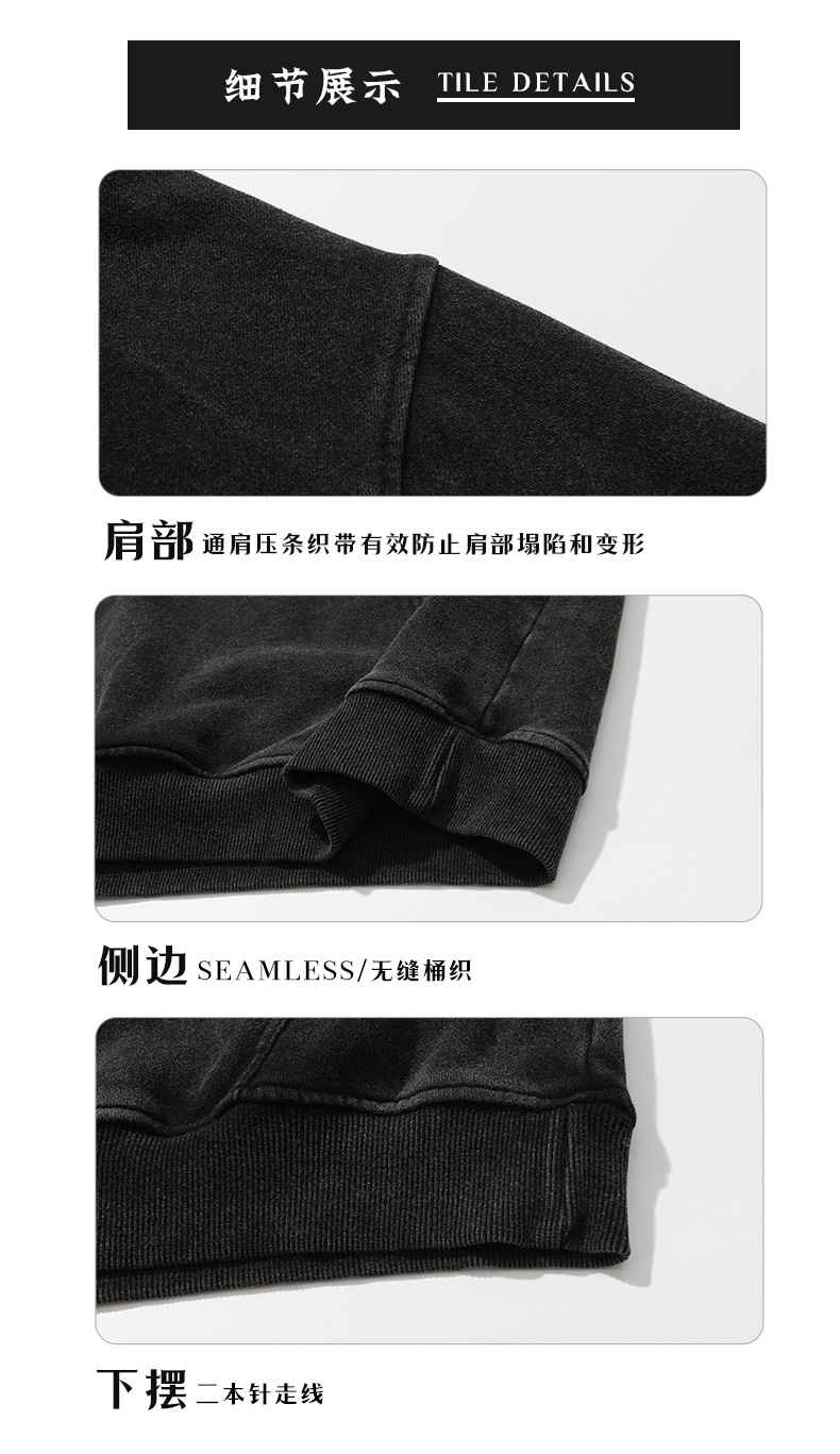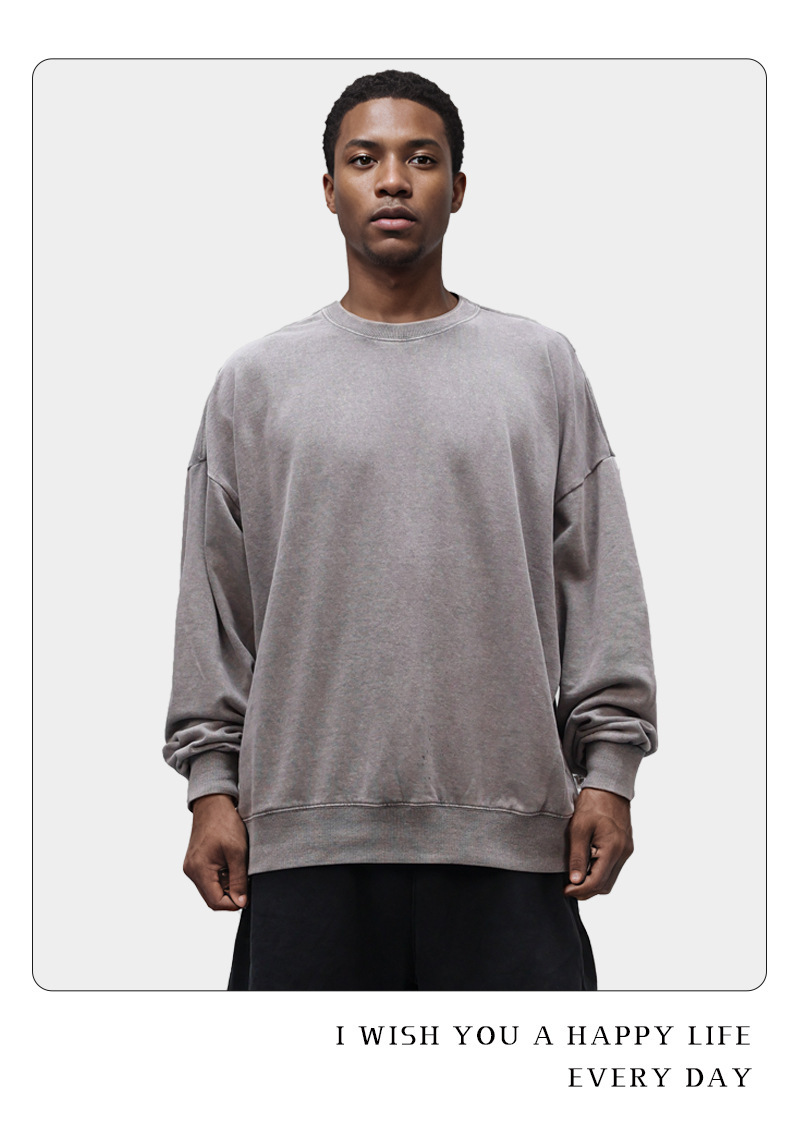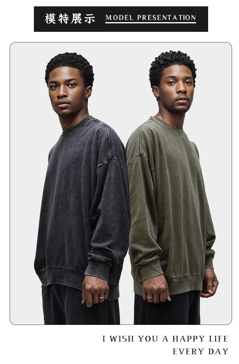 남성용 350g 왁스 염색 빈티지 라운드넥 스웨트셔츠, 아메리칸 스타일 드롭숄더 레트로 워싱 가을 겨울 긴팔 순면 이너웨어스토어 가기