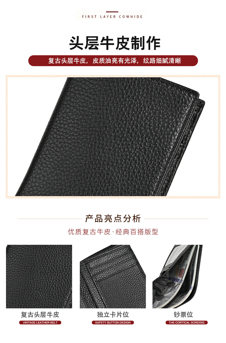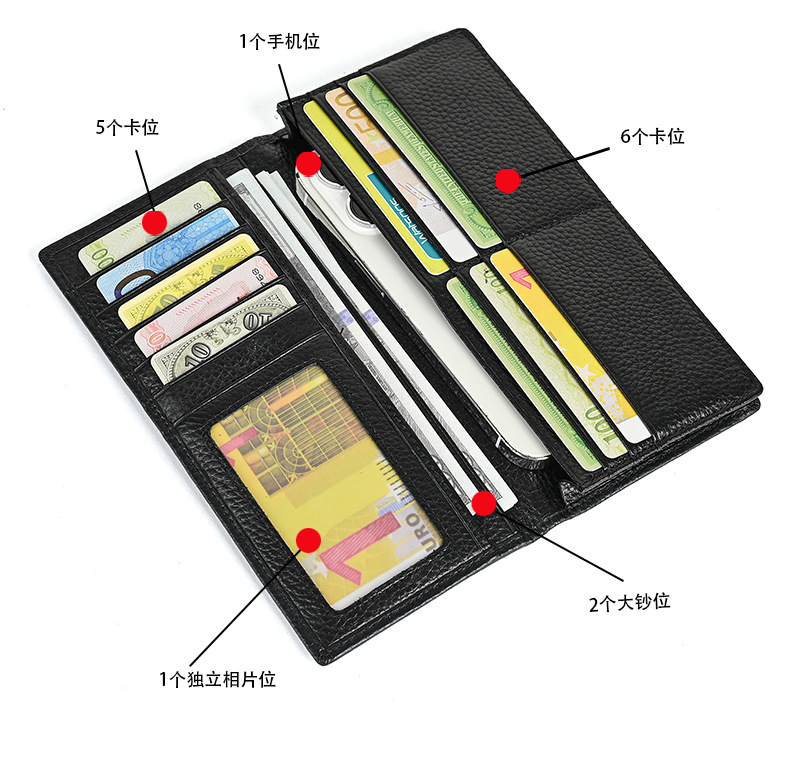 남성용 롱 스타일 천연 소가죽 지갑, 신상 남성용 내구성 멀티 카드 슬롯 지갑스토어 가기