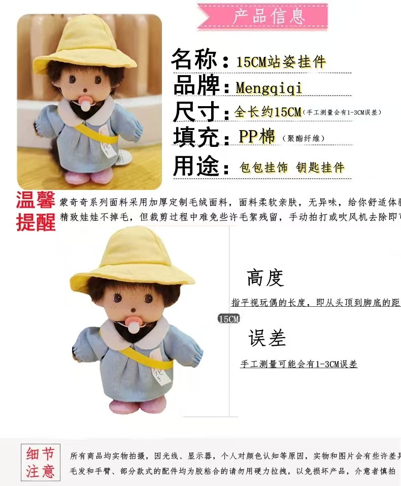 공장 직판 정품 몽키치 봉제 인형 펜던트 액세서리 15cm 인형 완구 해외 도매