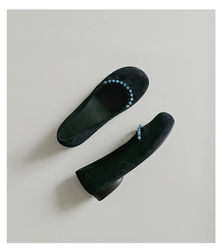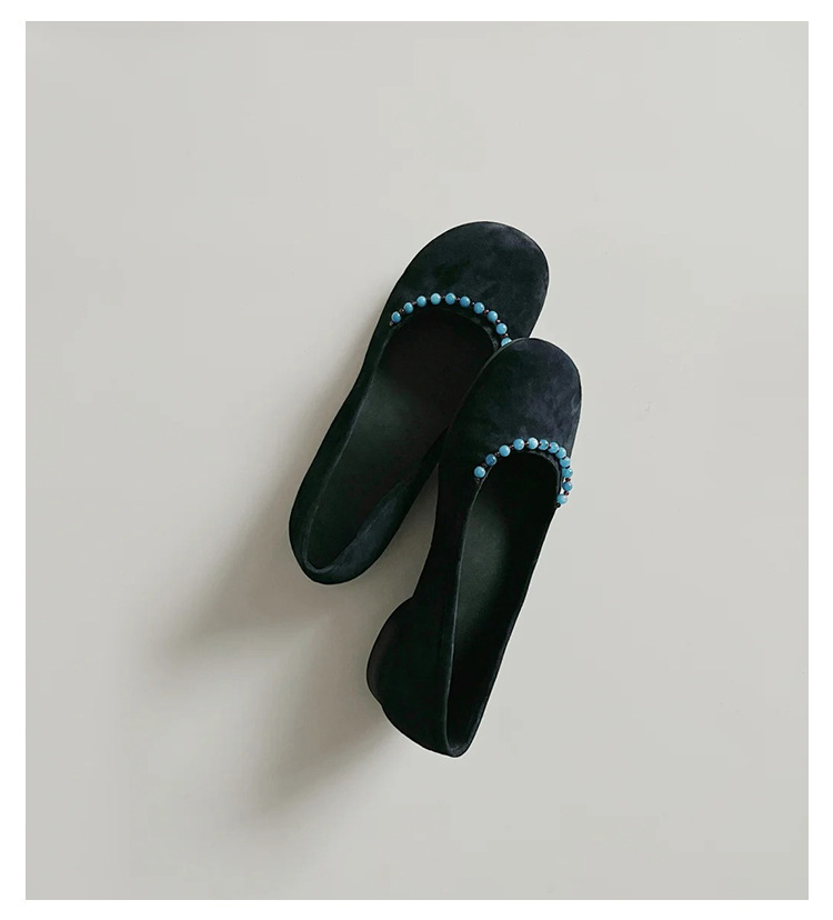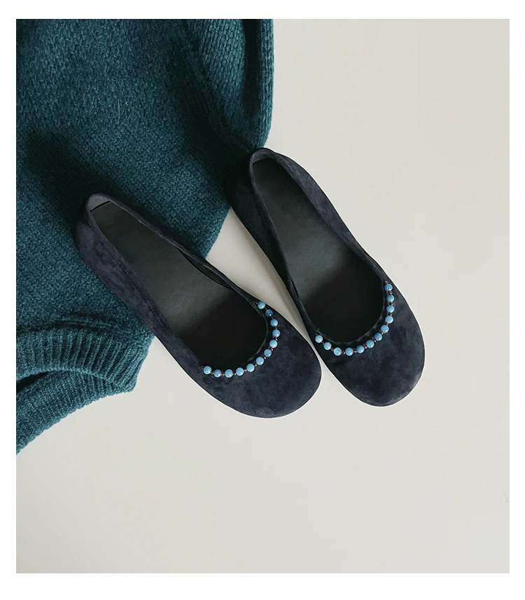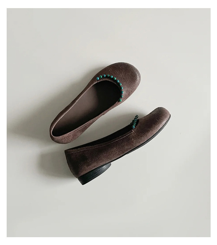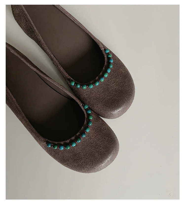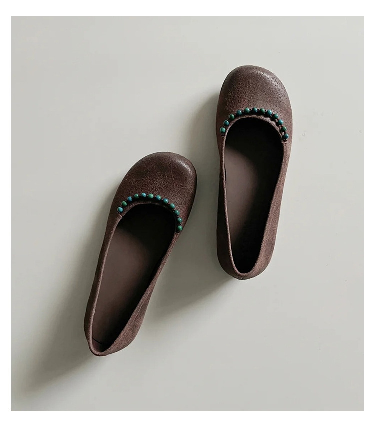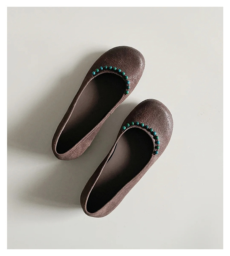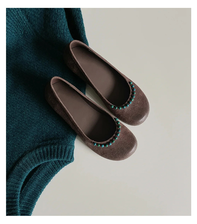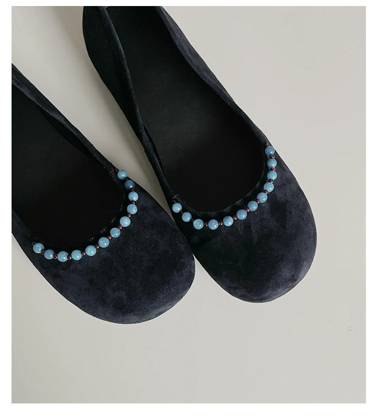 양가죽 버전 ~ 새로운 중국 스타일 구슬 둥근 머리 작은 단일 신발 얕은 입 1 페달 레트로 메리 제인 플랫 슈즈 여성