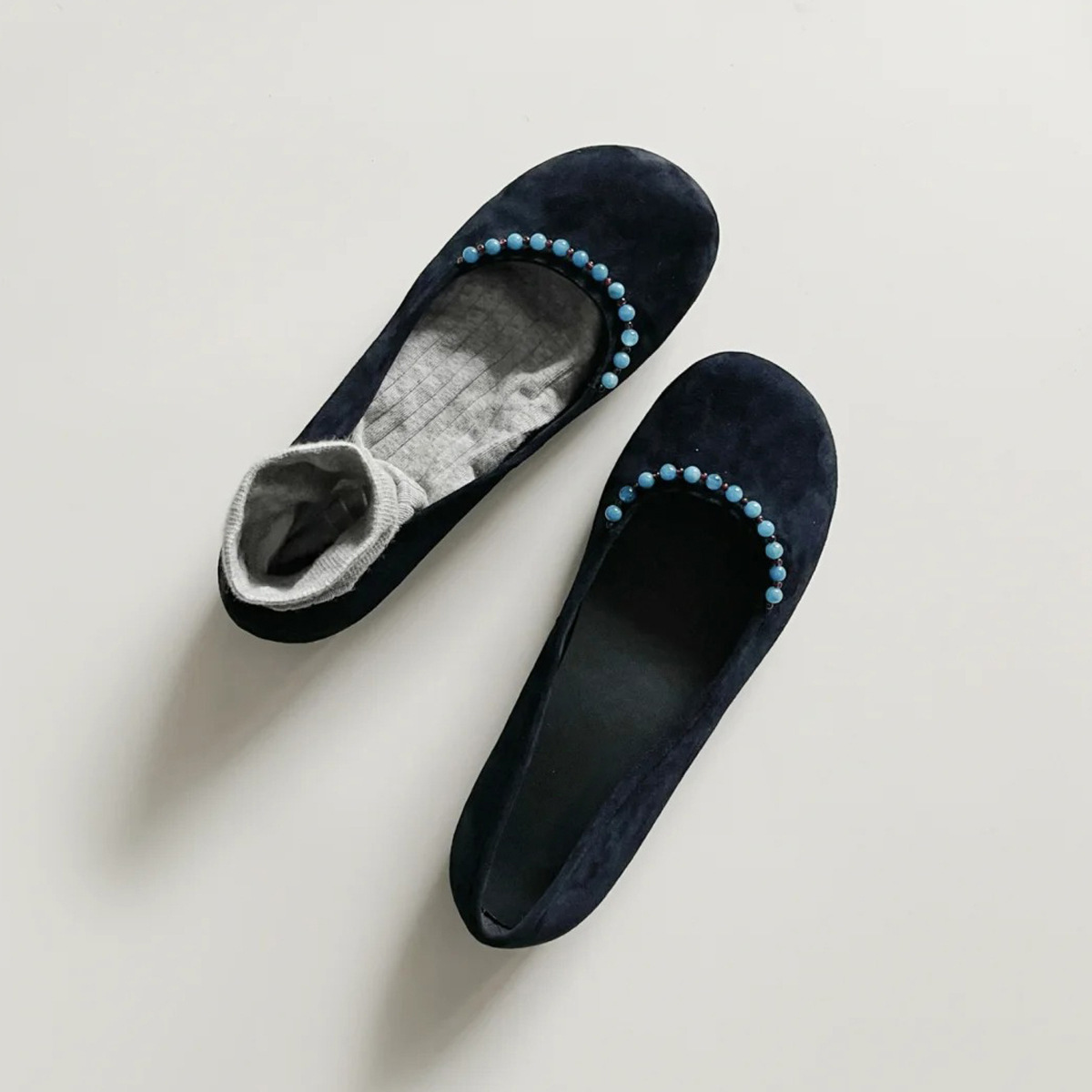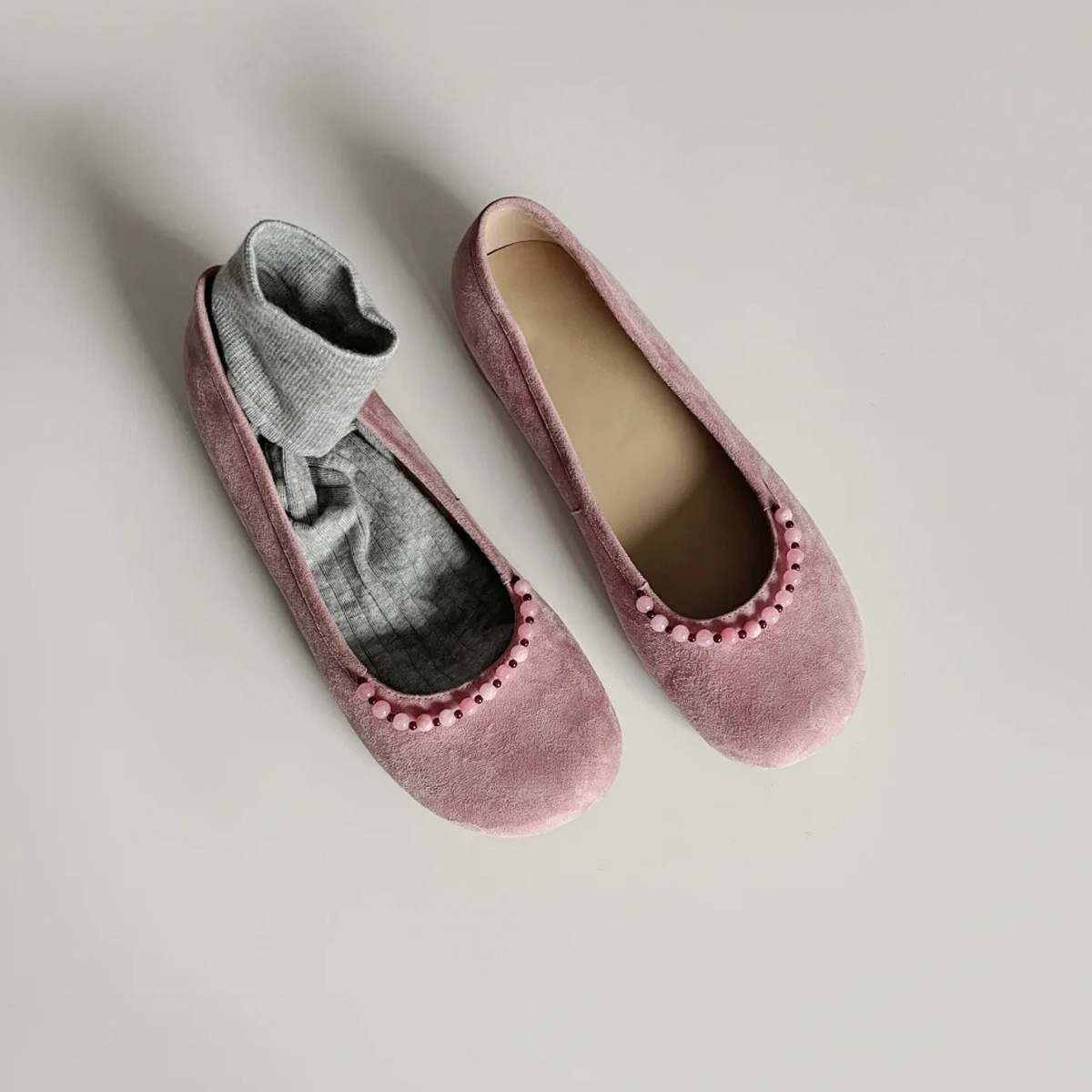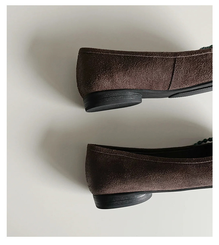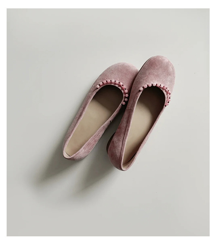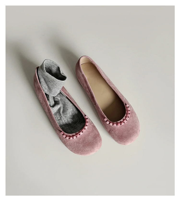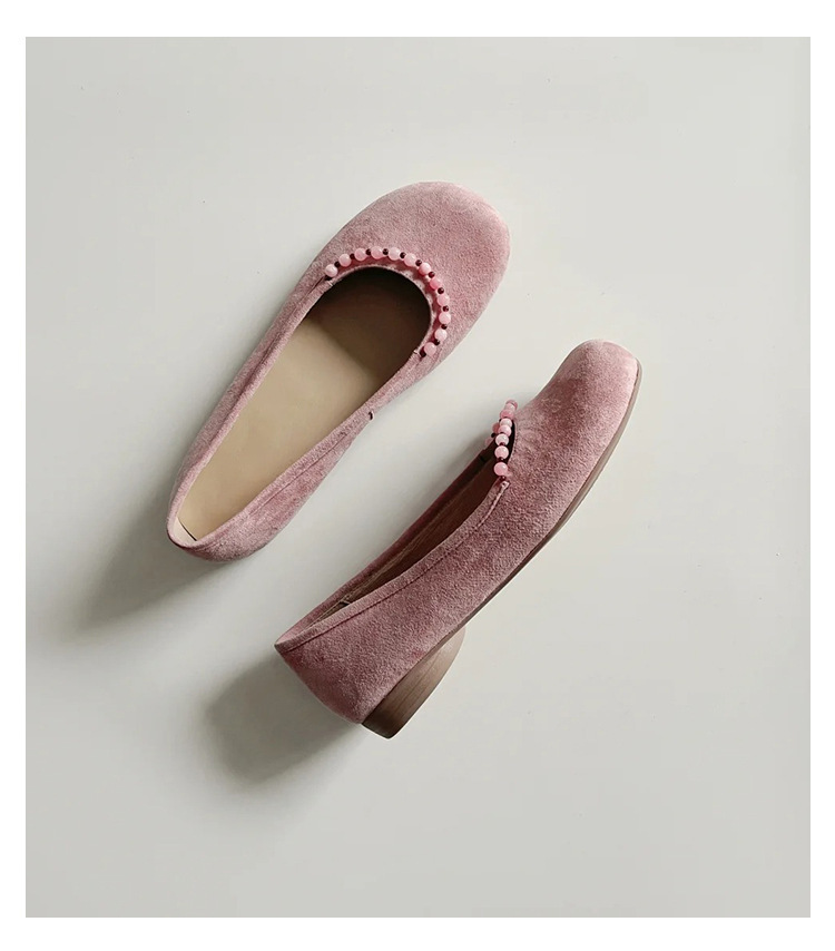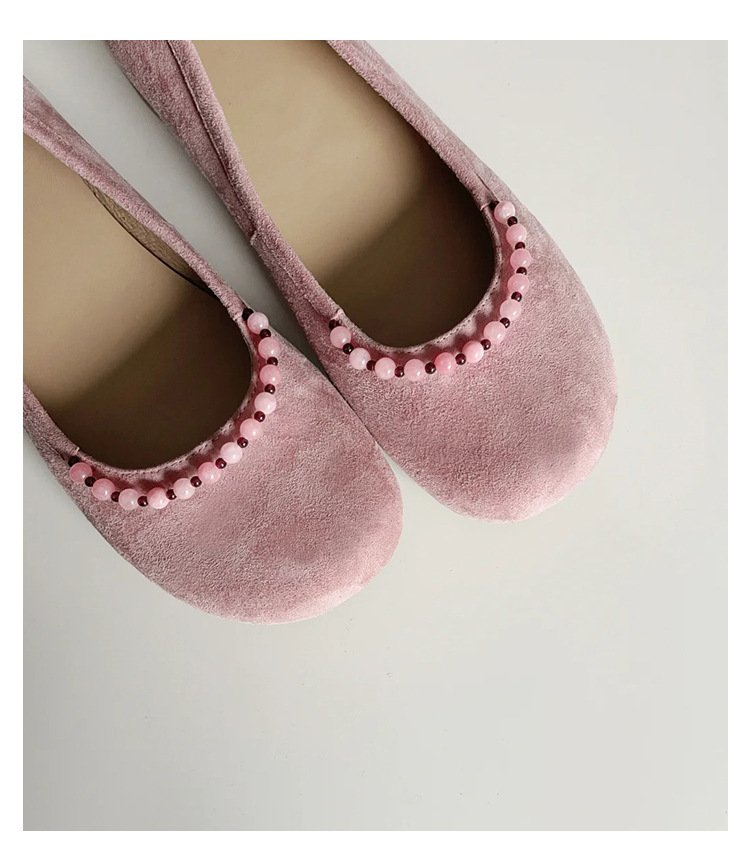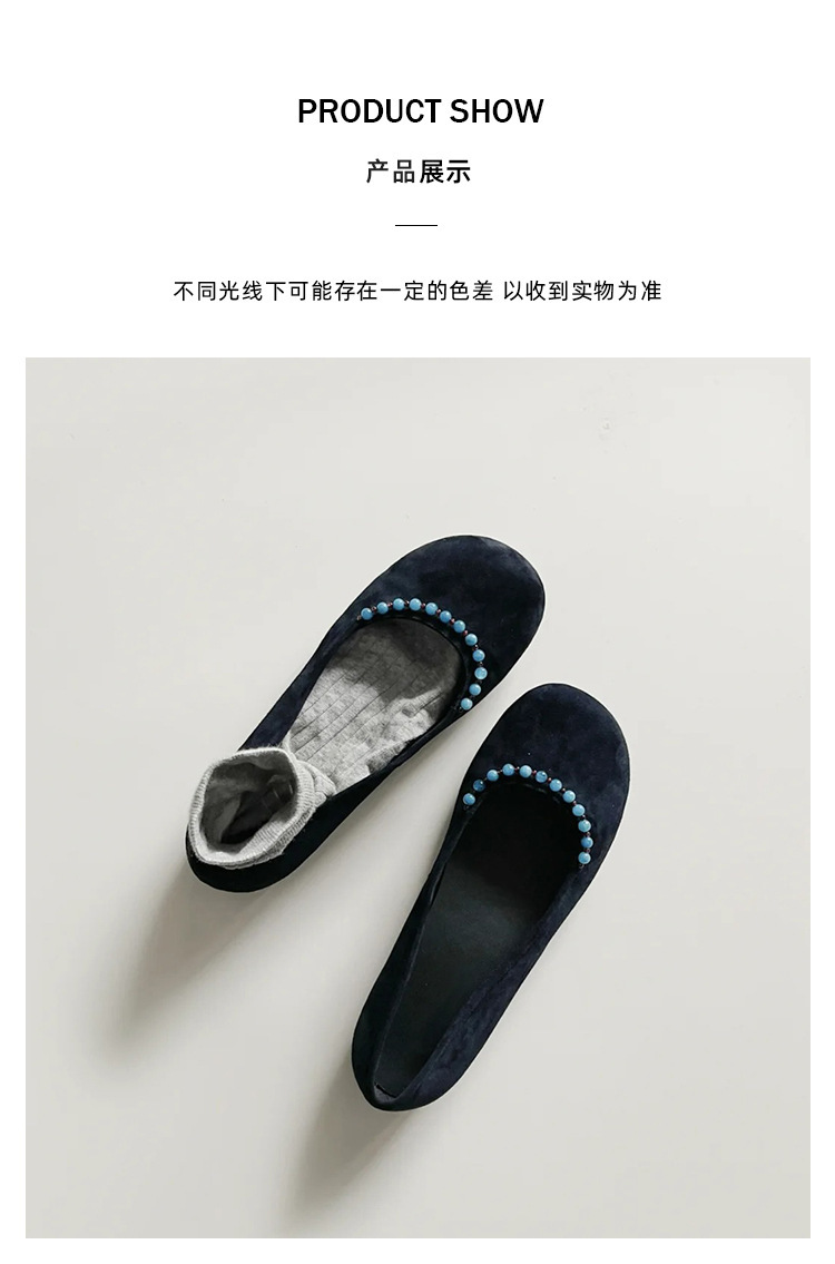 양가죽 버전 ~ 새로운 중국 스타일 구슬 둥근 머리 작은 단일 신발 얕은 입 1 페달 레트로 메리 제인 플랫 슈즈 여성