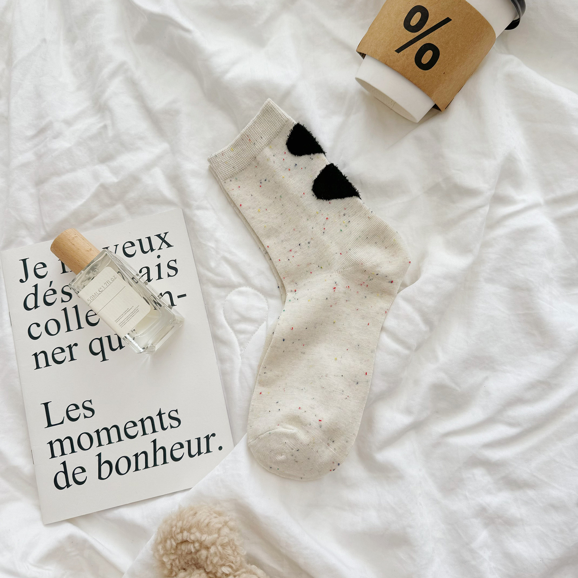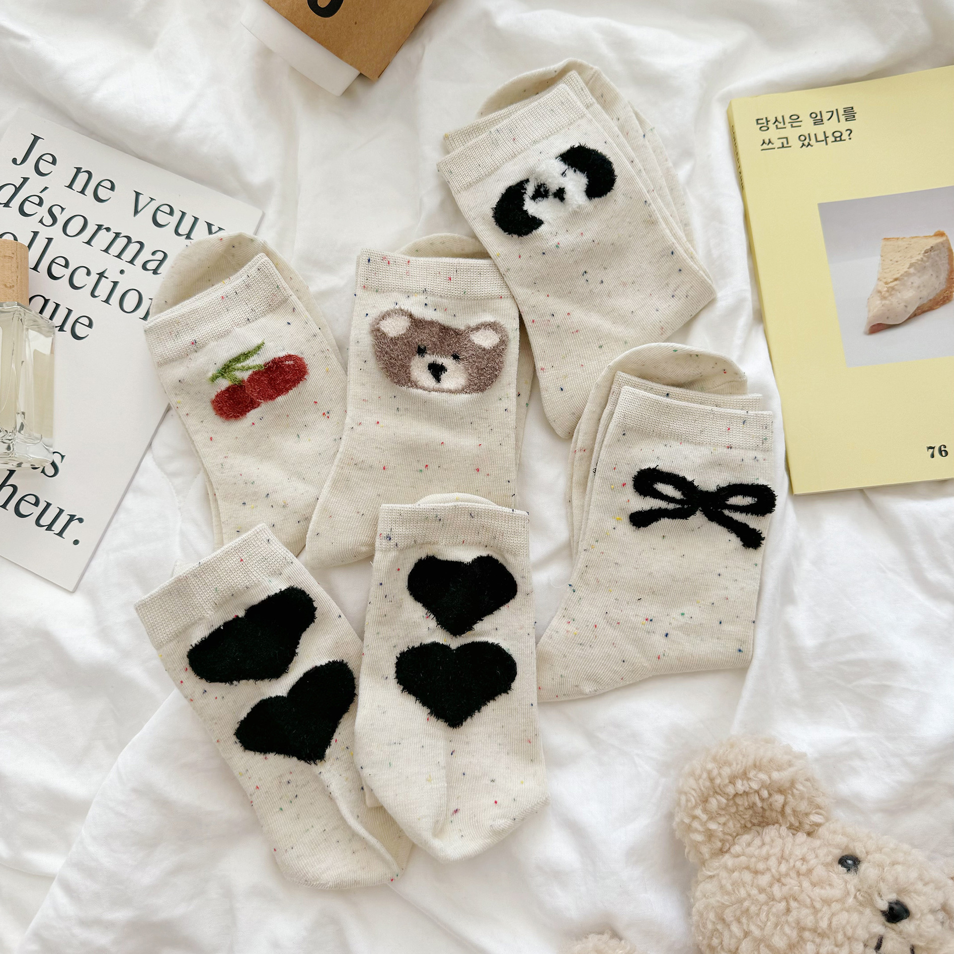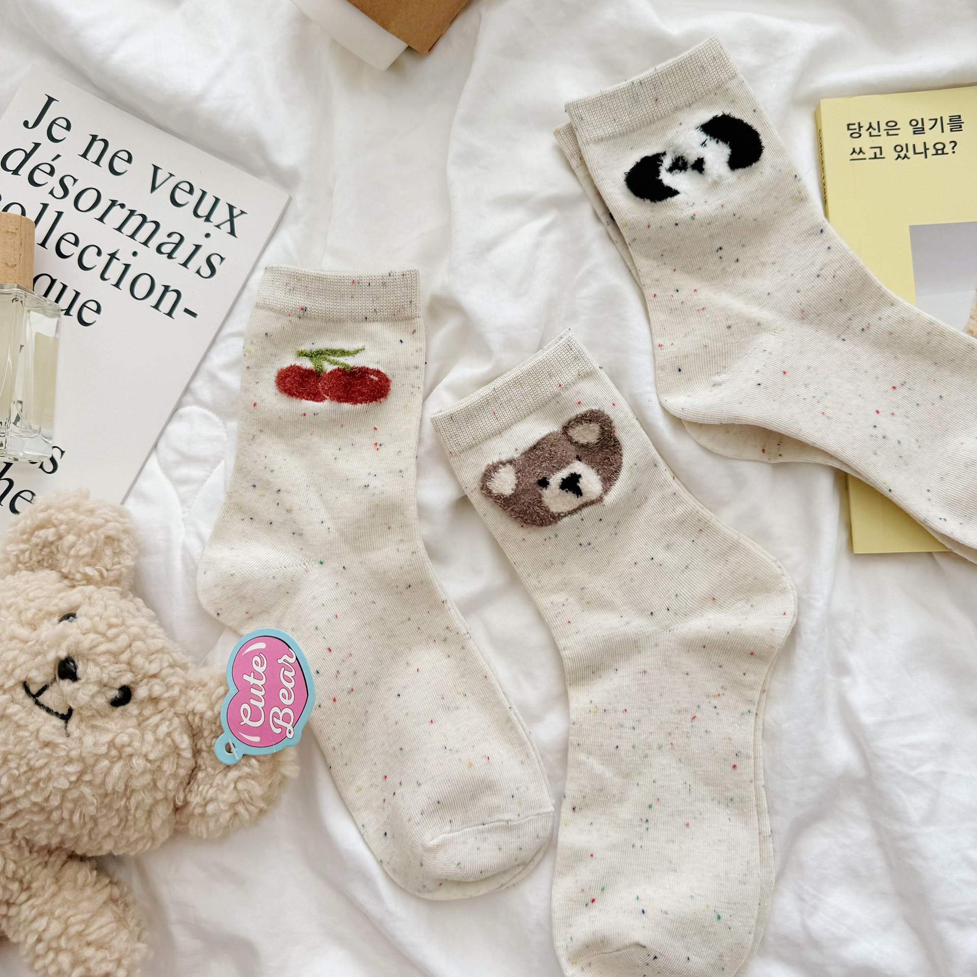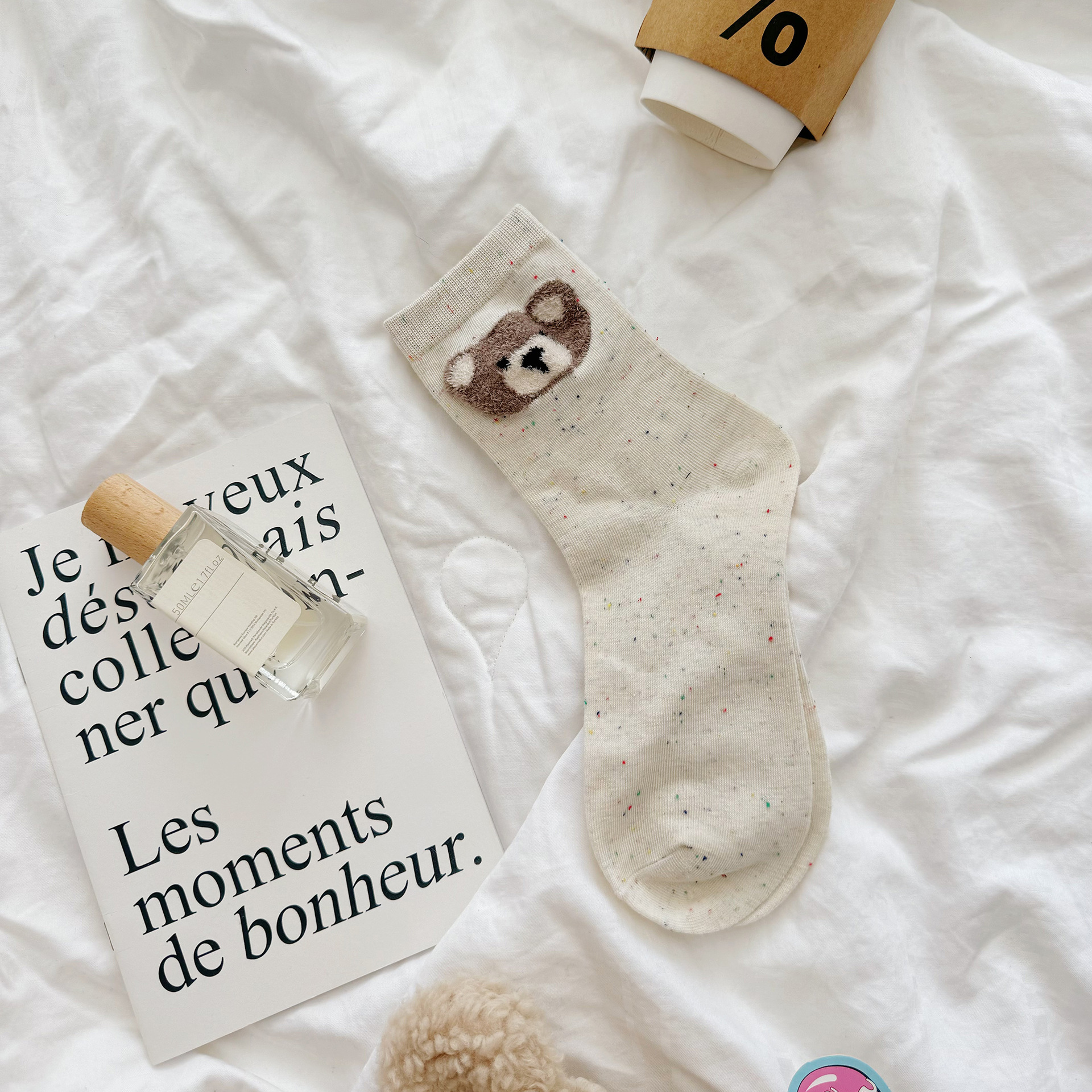 여성을위한 깃털 원사 만화 곰 양말 봄과 가을 새로운 중간 튜브 양말 아이디어 원사 만화 귀여운 강아지 곰 긴 양말