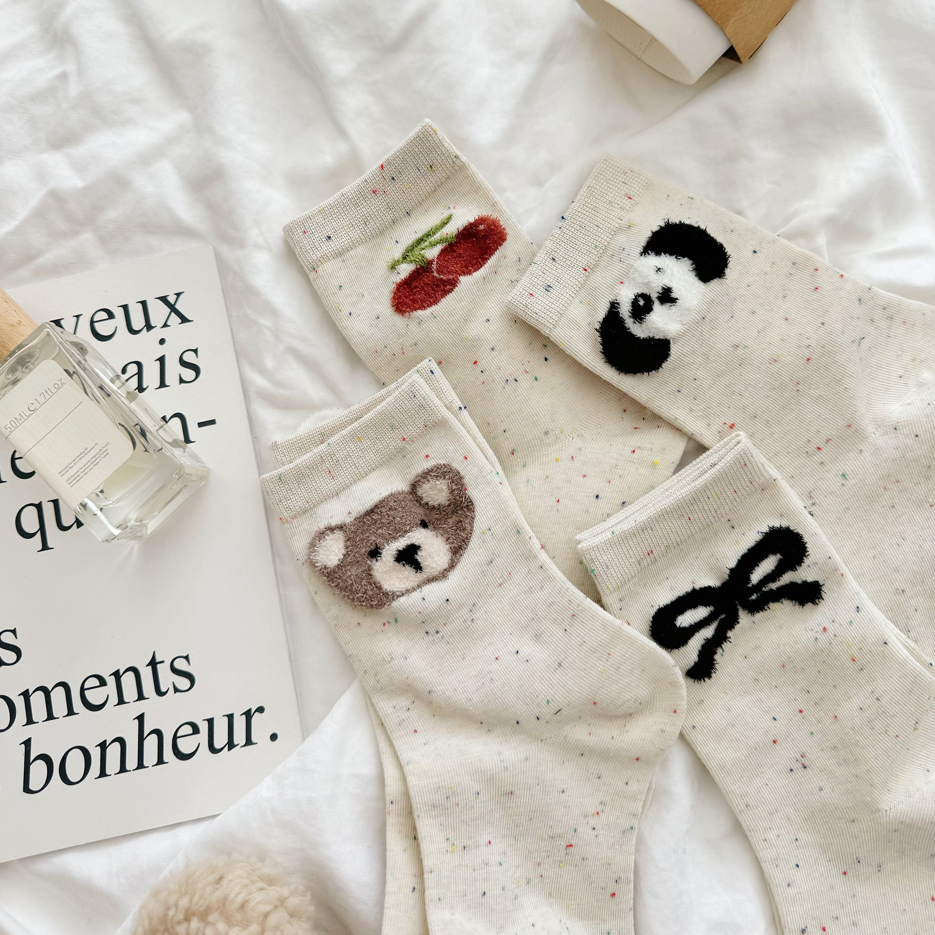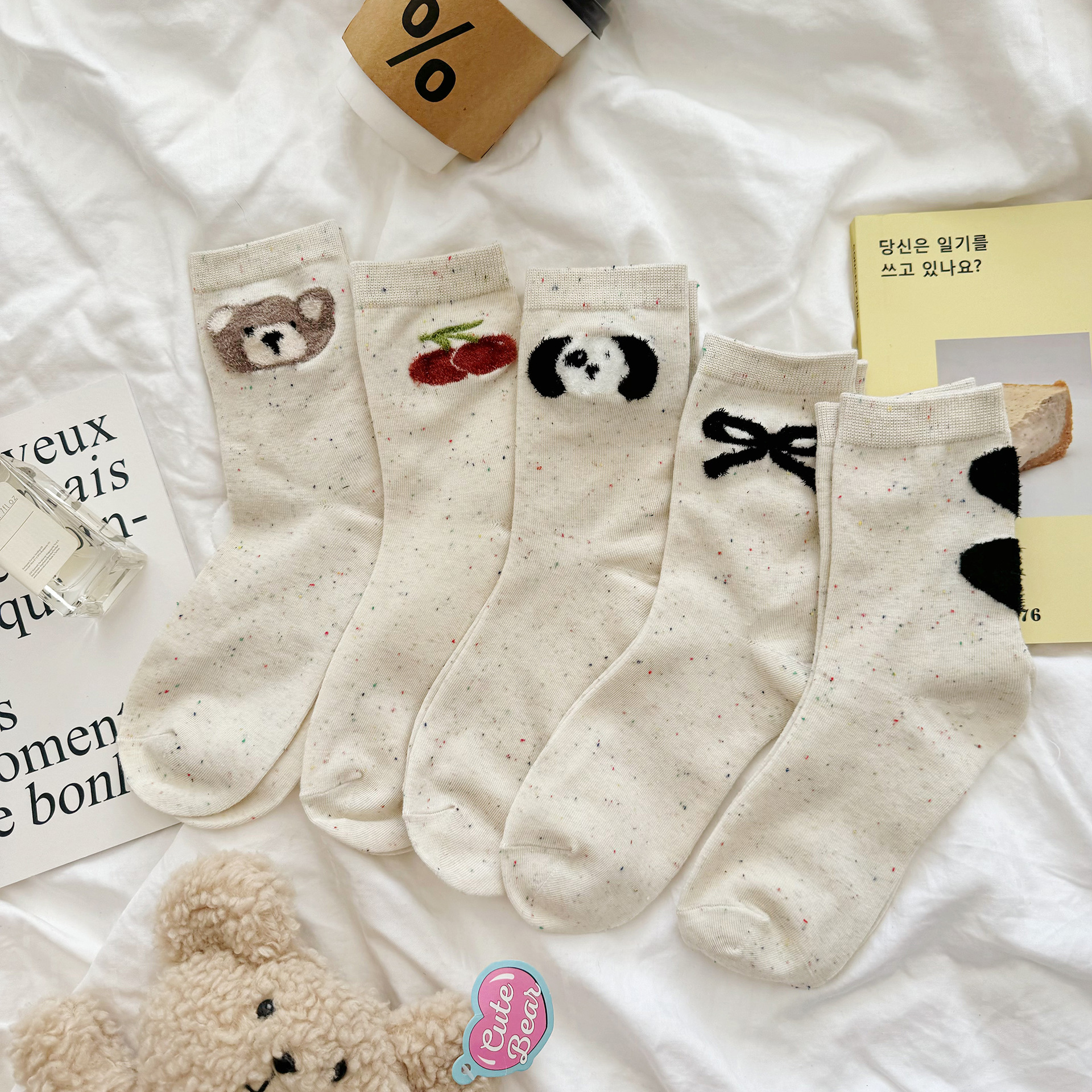여성을위한 깃털 원사 만화 곰 양말 봄과 가을 새로운 중간 튜브 양말 아이디어 원사 만화 귀여운 강아지 곰 긴 양말스토어 가기