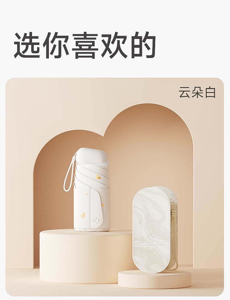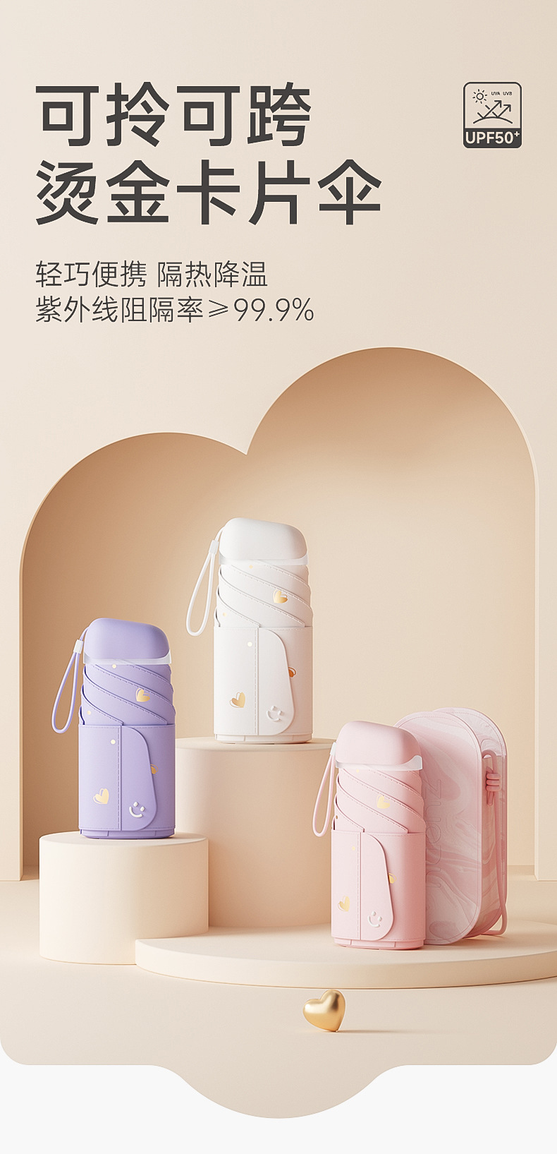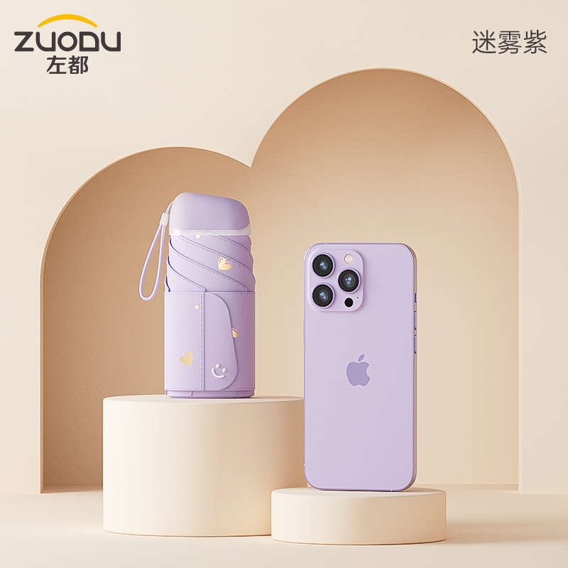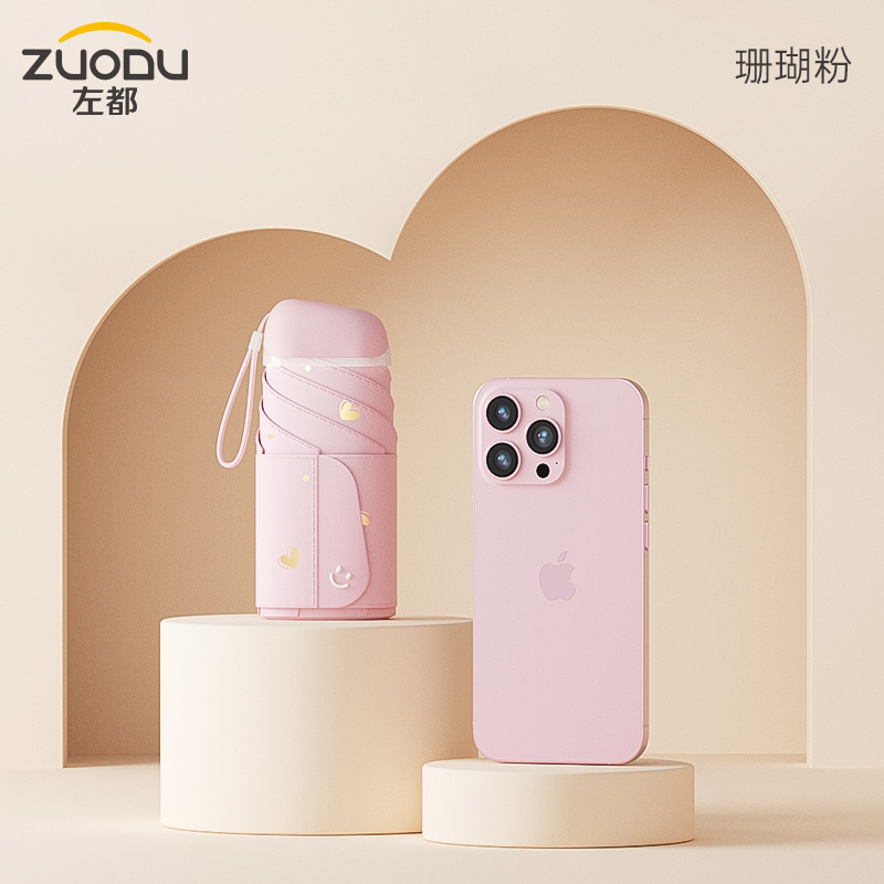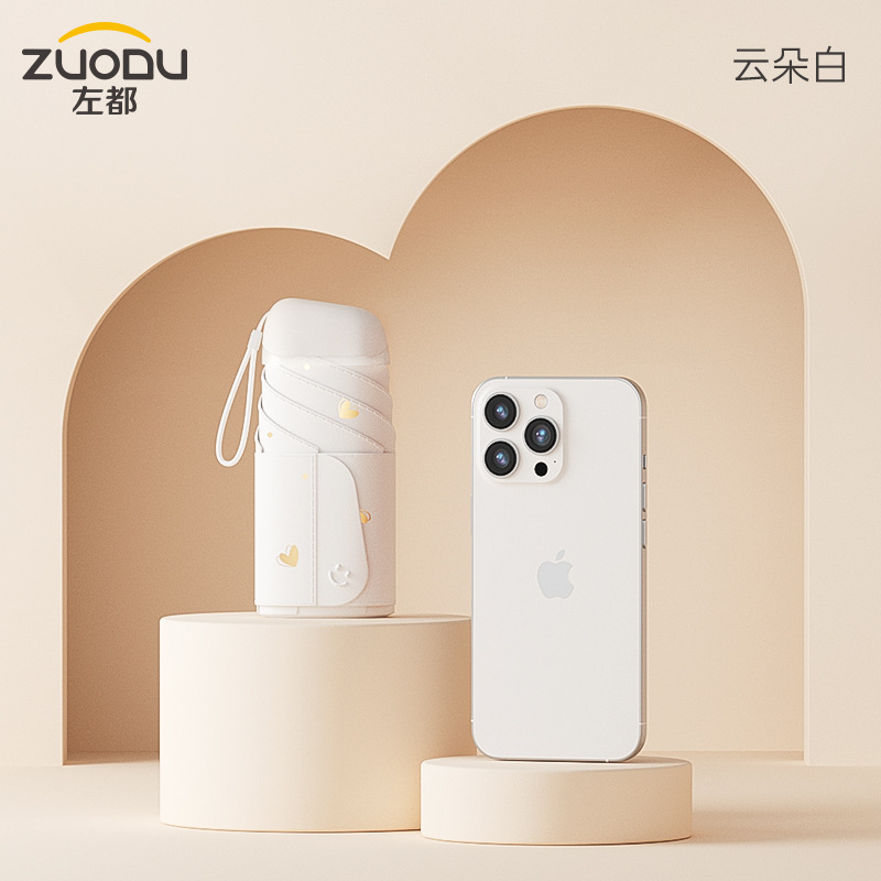 Zuodu 미니 파라솔, 자외선 차단, 여성용, 비가 오나 눈이 오나 사용 가능, 초경량, 소형, 휴대용, 접이식 카드형