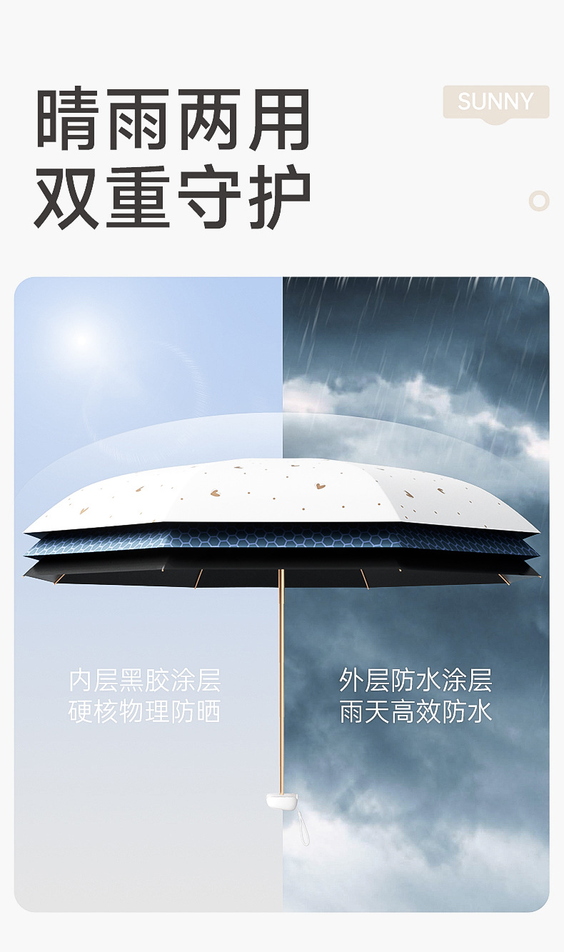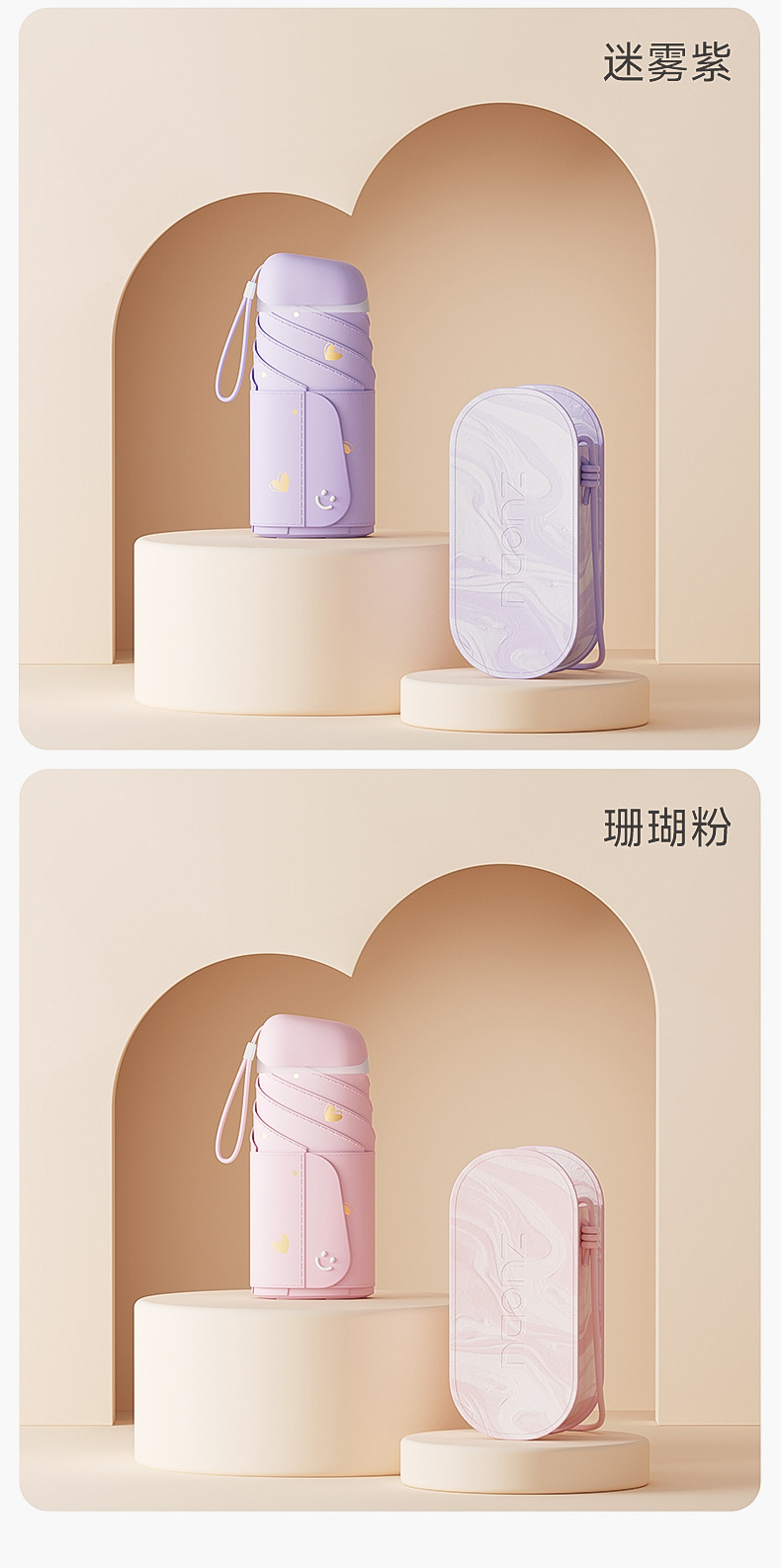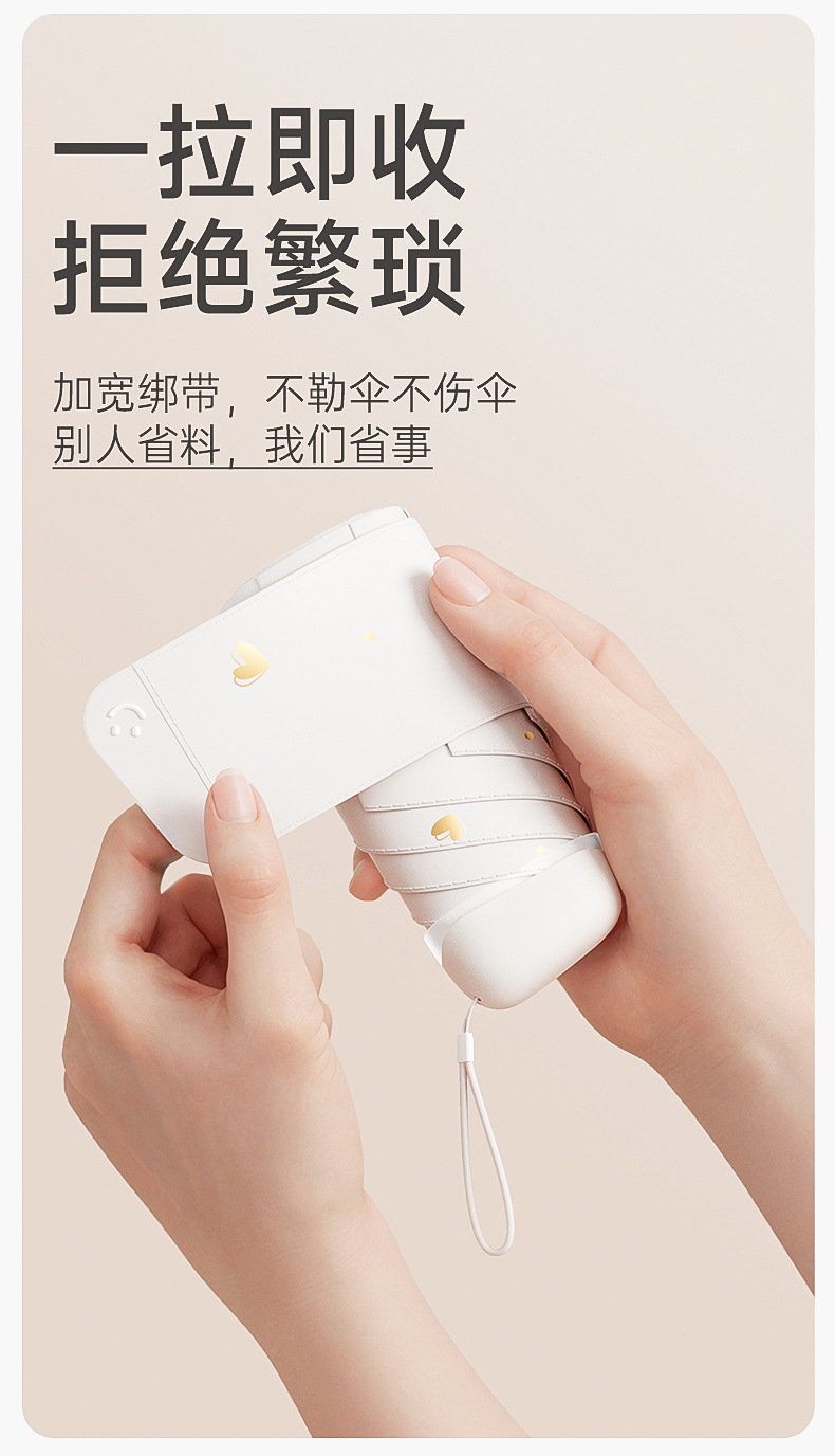 Zuodu 미니 파라솔, 자외선 차단, 여성용, 비가 오나 눈이 오나 사용 가능, 초경량, 소형, 휴대용, 접이식 카드형