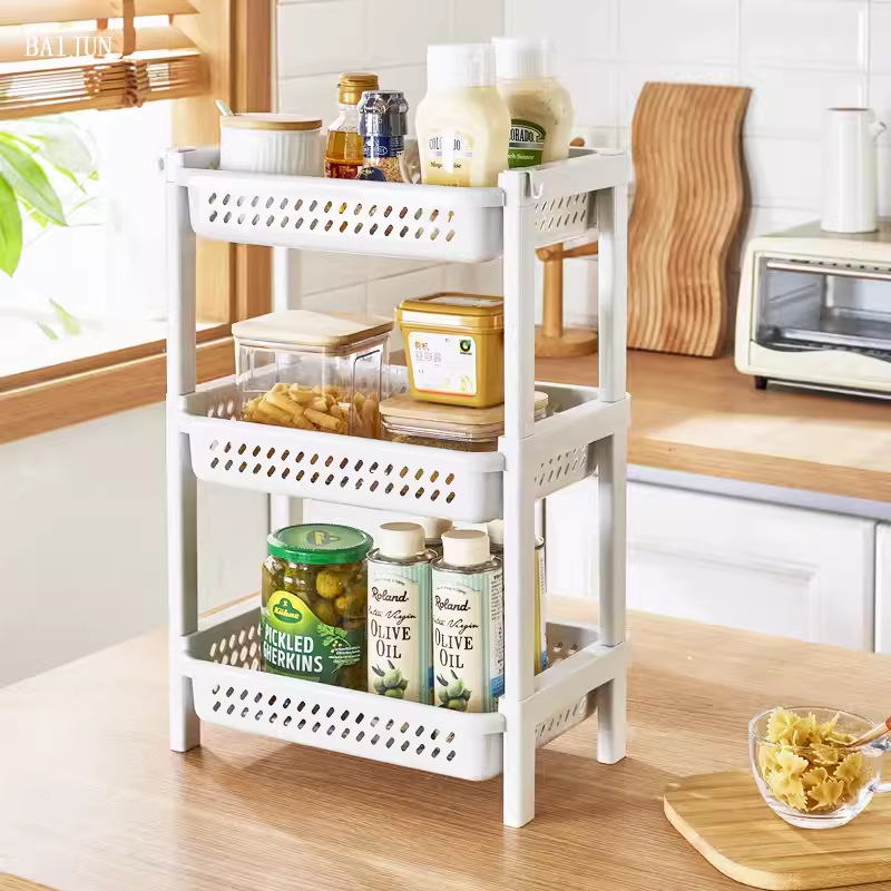 주방 카운터 탑 스토리지 랙 바닥 스토리지 랙 다층 데스크톱 플랫 랙 화장실 욕실 갭 소형 스토리지 랙
