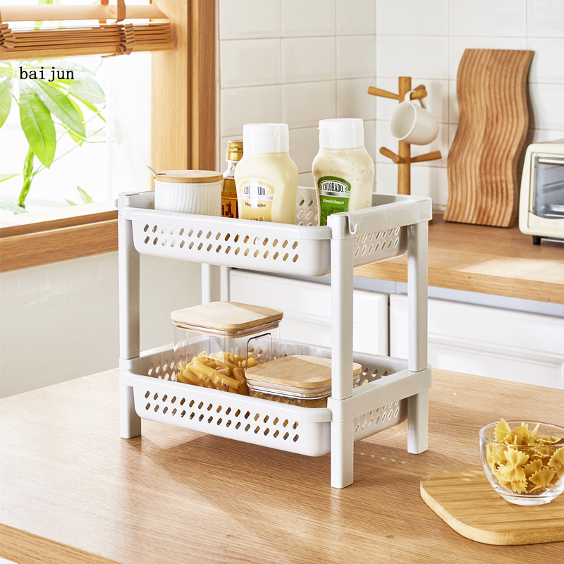 주방 카운터 탑 스토리지 랙 바닥 스토리지 랙 다층 데스크톱 플랫 랙 화장실 욕실 갭 소형 스토리지 랙스토어 가기