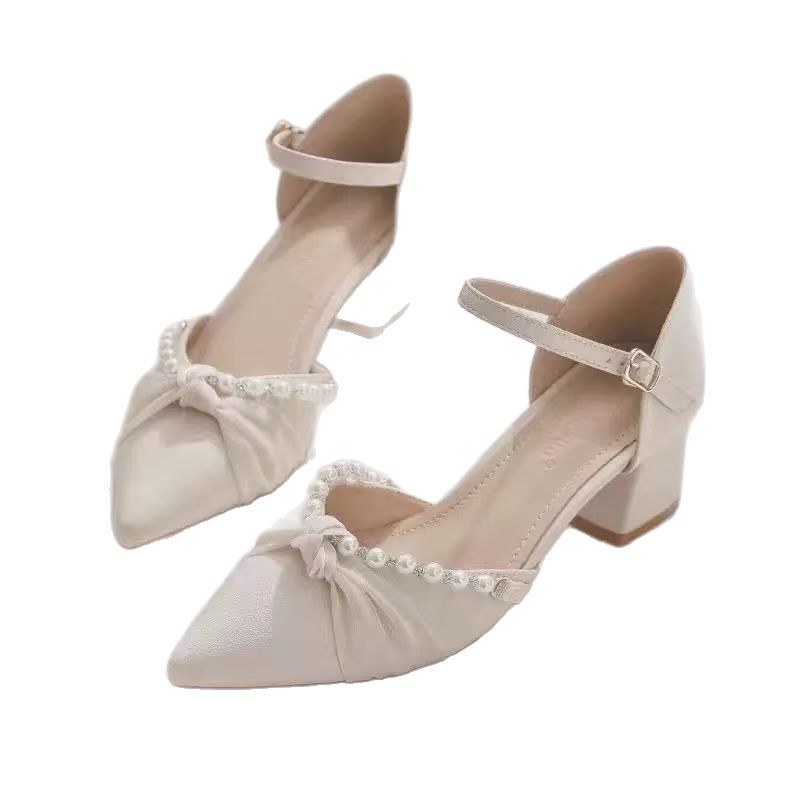 메리 제인 신발 브랜드 2025 봄 새 얕은 입 뾰족한 하이힐 두꺼운 요정 스타일 바오터우 샌들스토어 가기