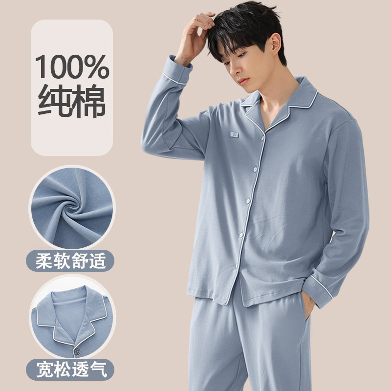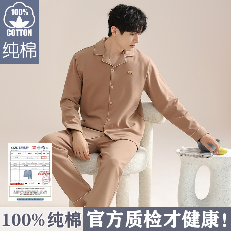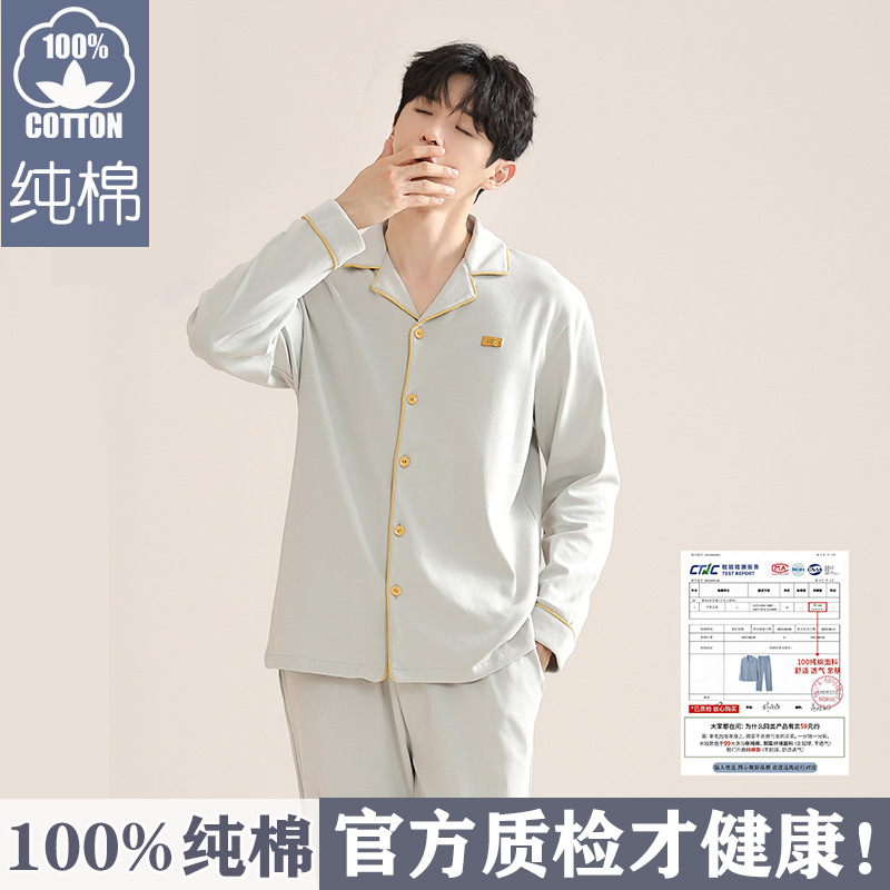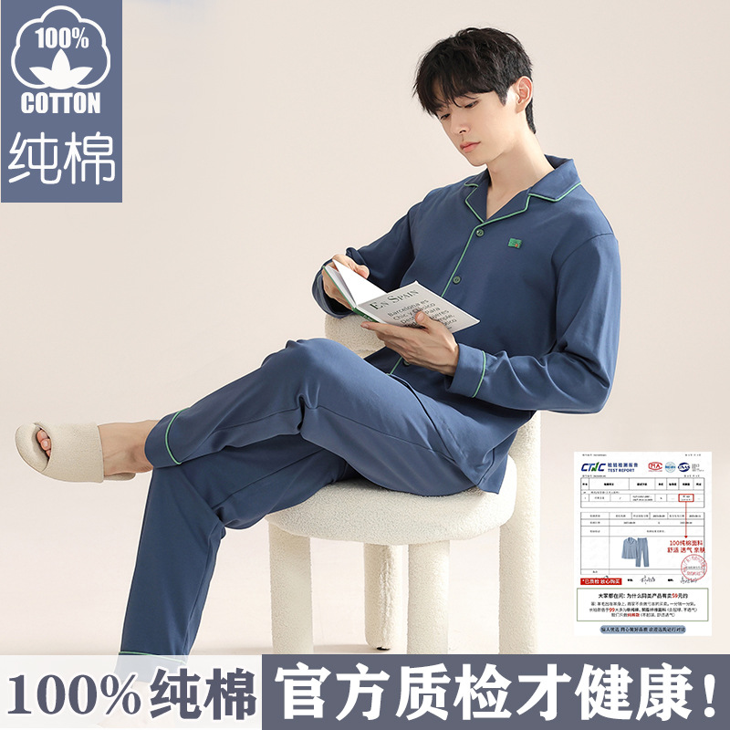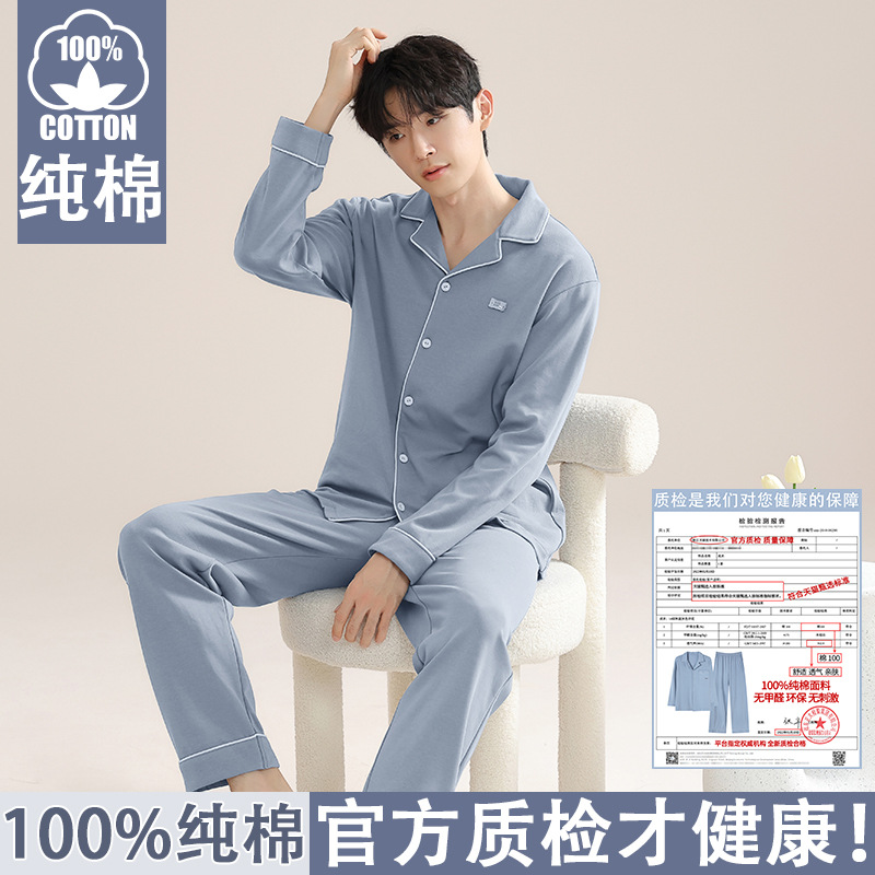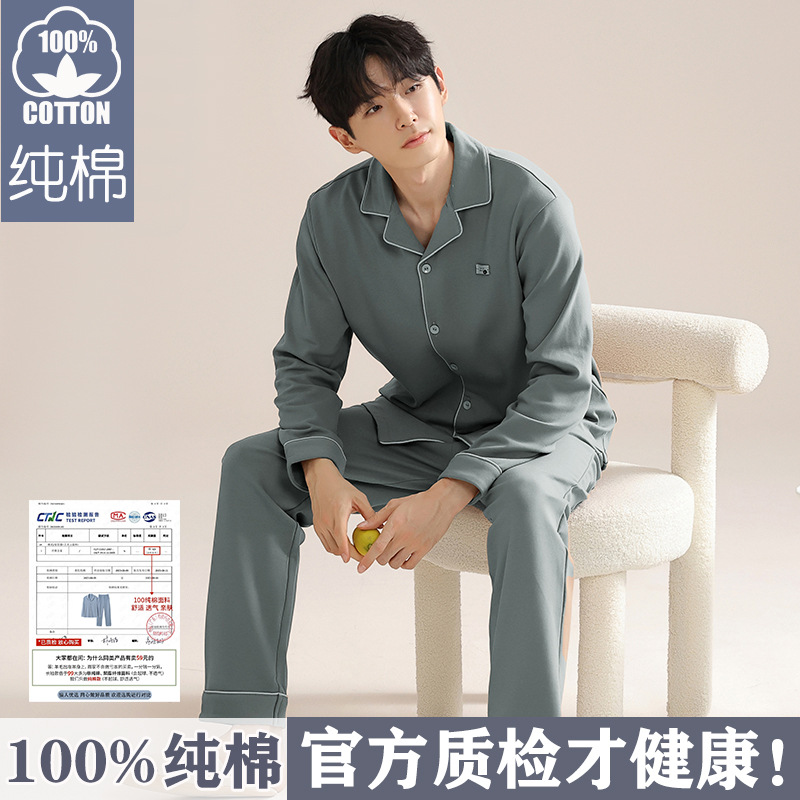 순면 잠옷 남자의 봄과 가을 긴 소매 카디건 2025 새로운 가을 의상 홈 의류 세트 면스토어 가기