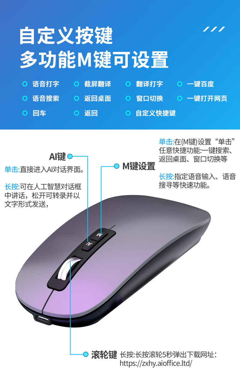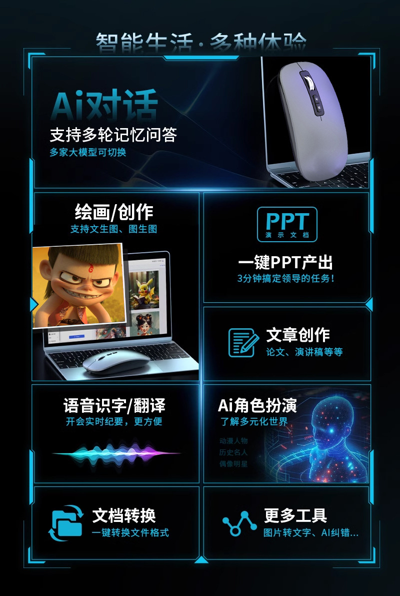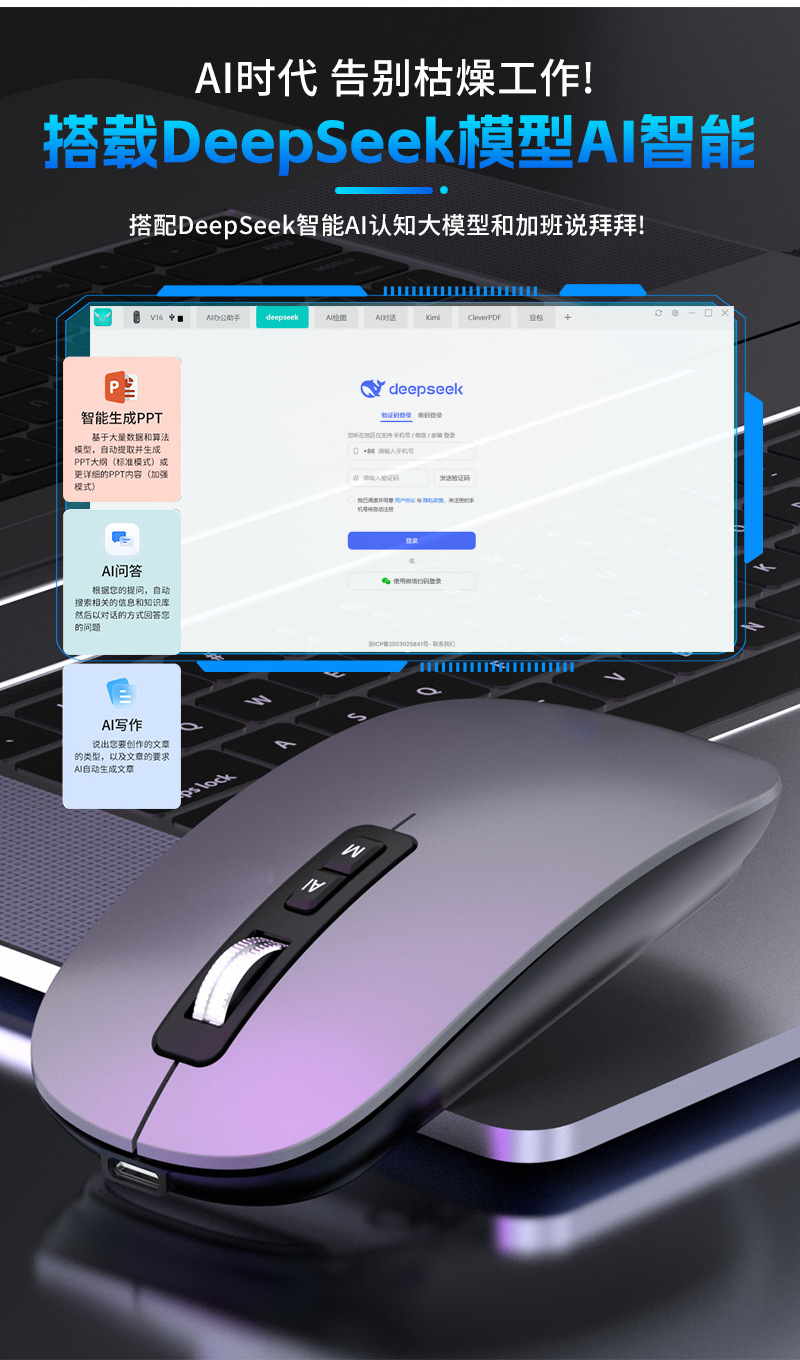 AI 스마트 음성 마우스 무선 블루투스 음성 제어 입력 번역 PPT 그림 음소거 PPTDeepseek 쓰기스토어 가기