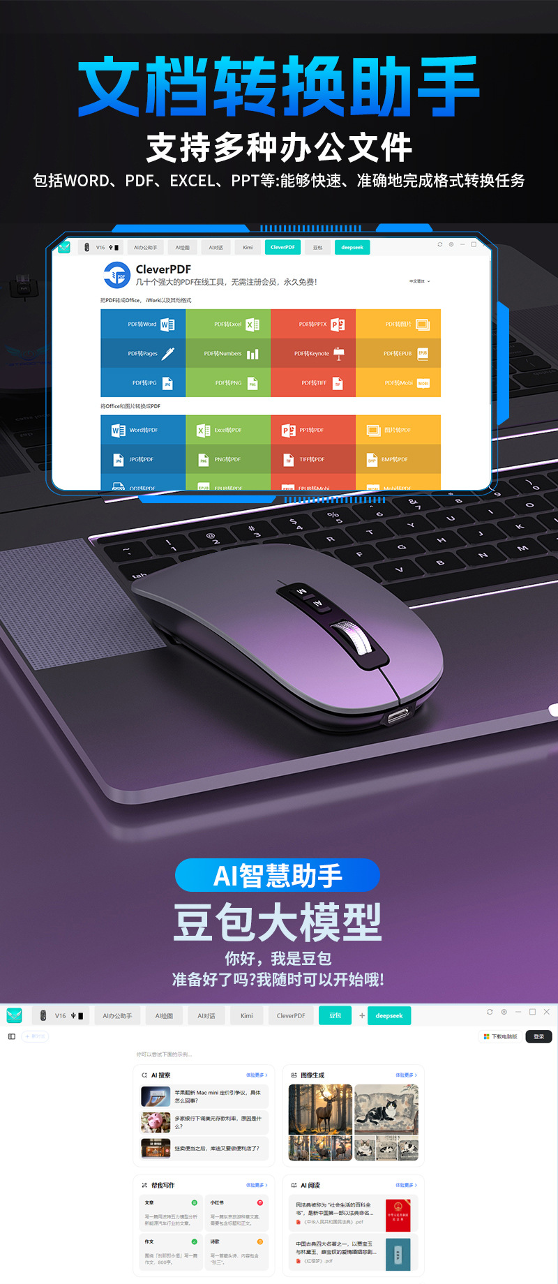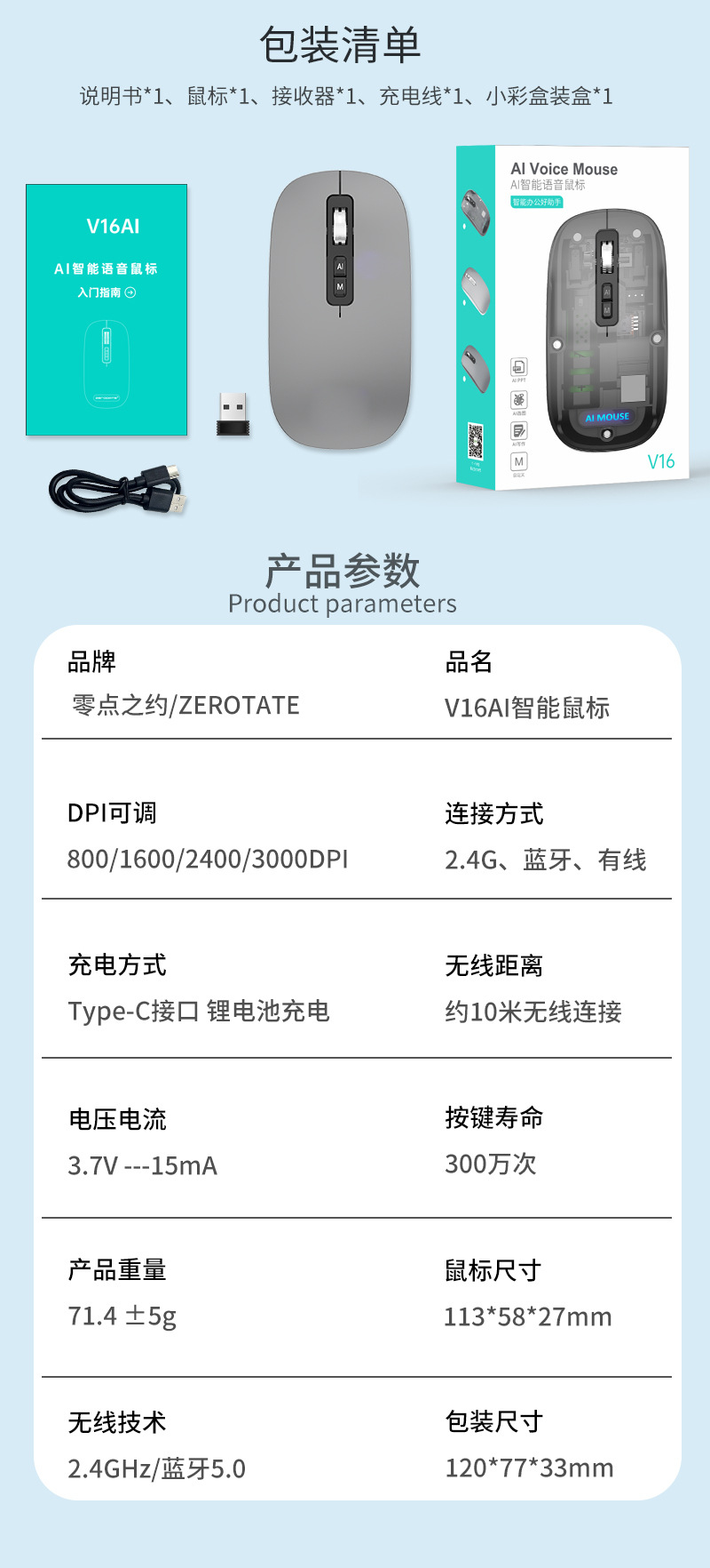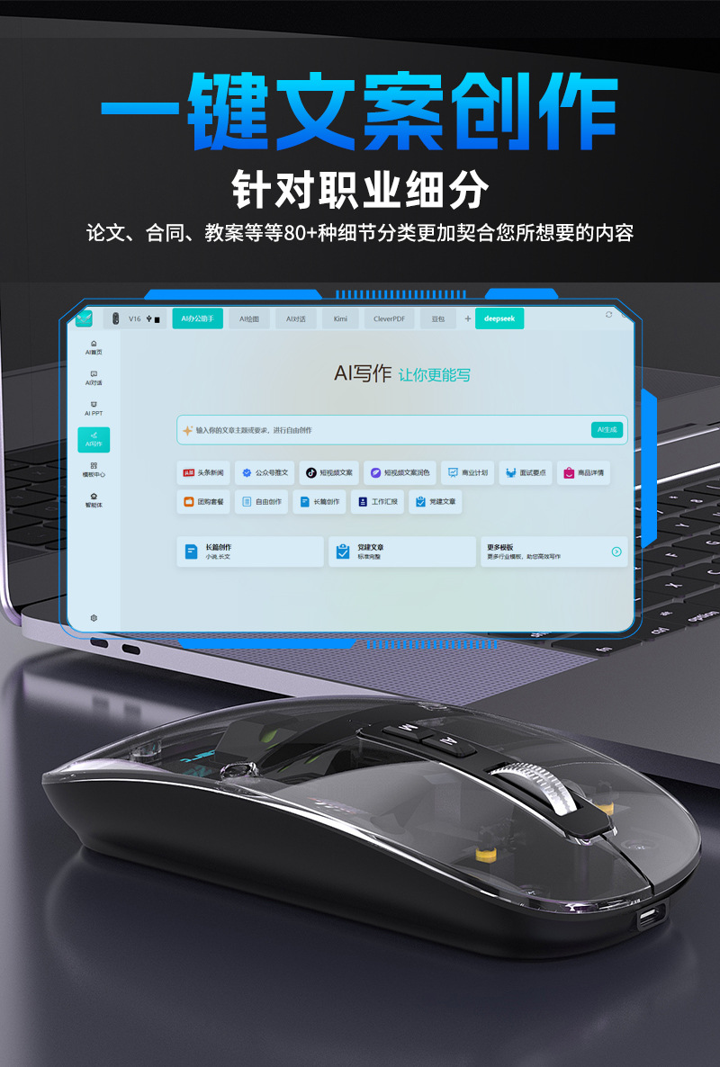 AI 스마트 음성 마우스 무선 블루투스 음성 제어 입력 번역 PPT 그림 음소거 PPTDeepseek 쓰기스토어 가기