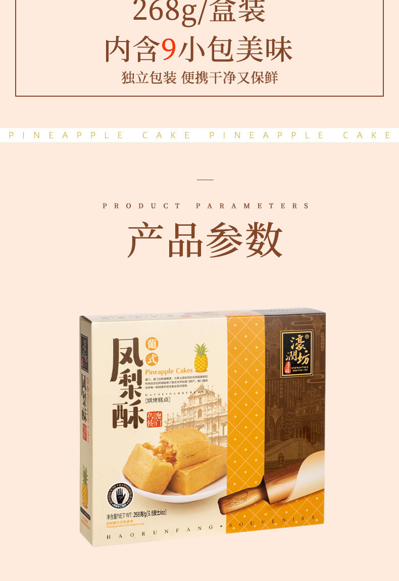 하오룬팡 대만 파인애플 케이크 중국어 번체 페이스트리 마카오 기념품 독립 포장 스낵 공장 직접 판매스토어 가기