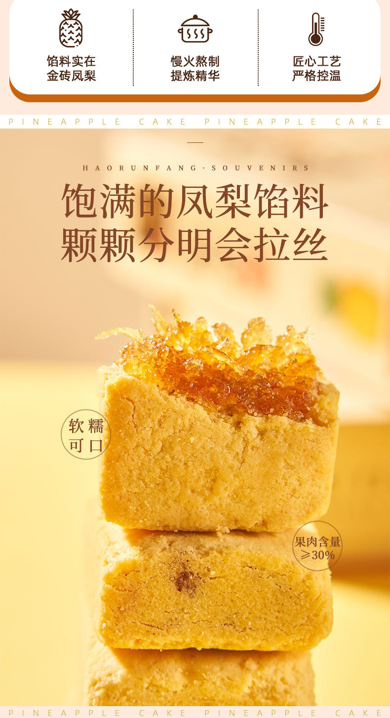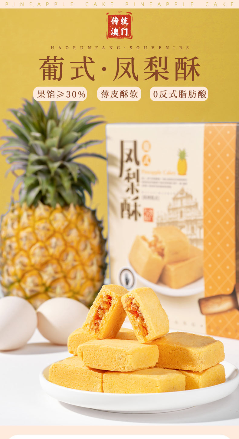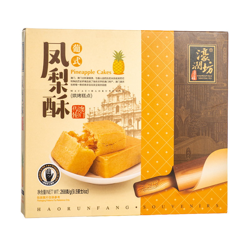 하오룬팡 대만 파인애플 케이크 중국어 번체 페이스트리 마카오 기념품 독립 포장 스낵 공장 직접 판매