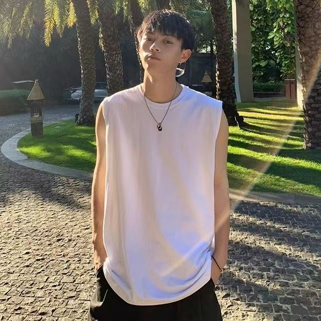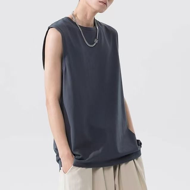 농구 스포츠 민소매 조끼 남성용 여름 루즈핏 대형 단색 외출용 조끼 라운드넥 다용도 티셔츠 통기성