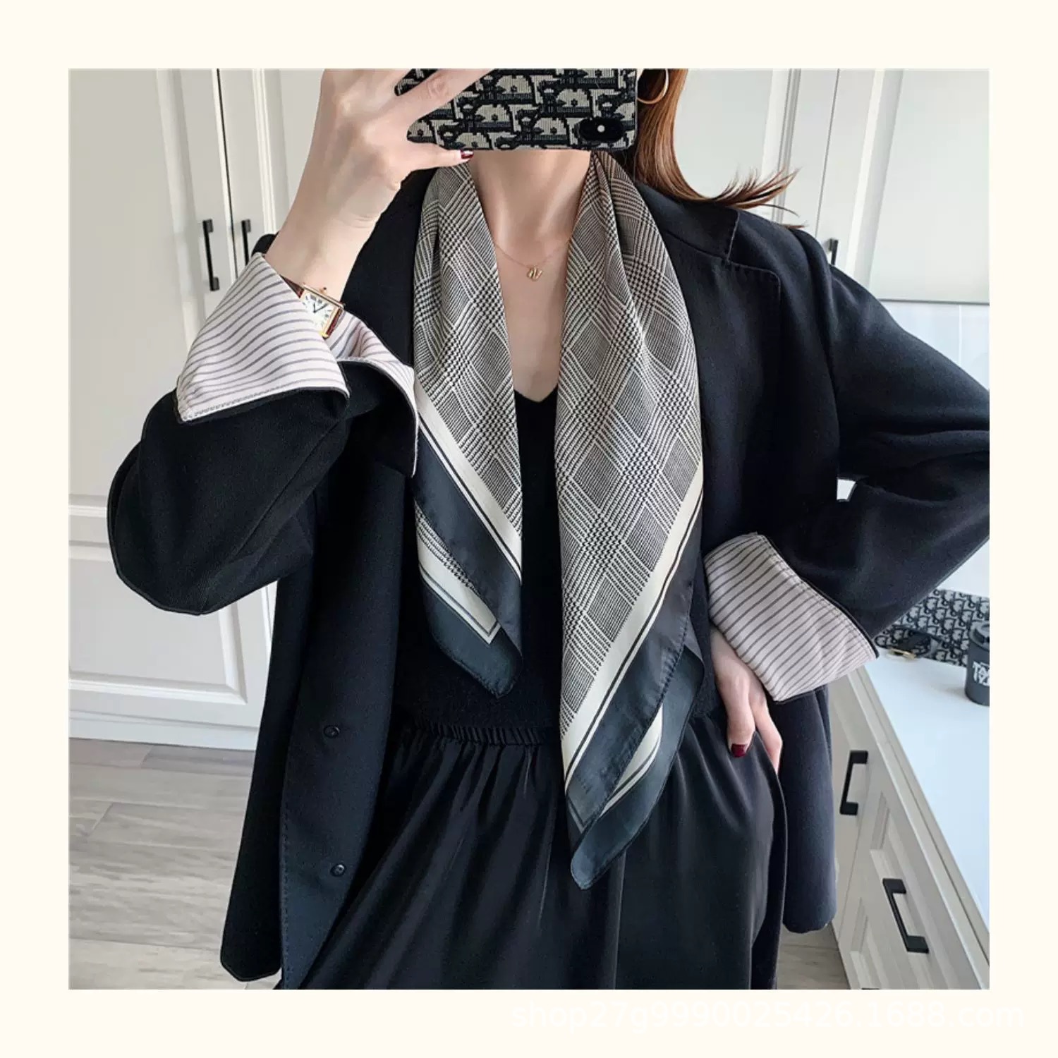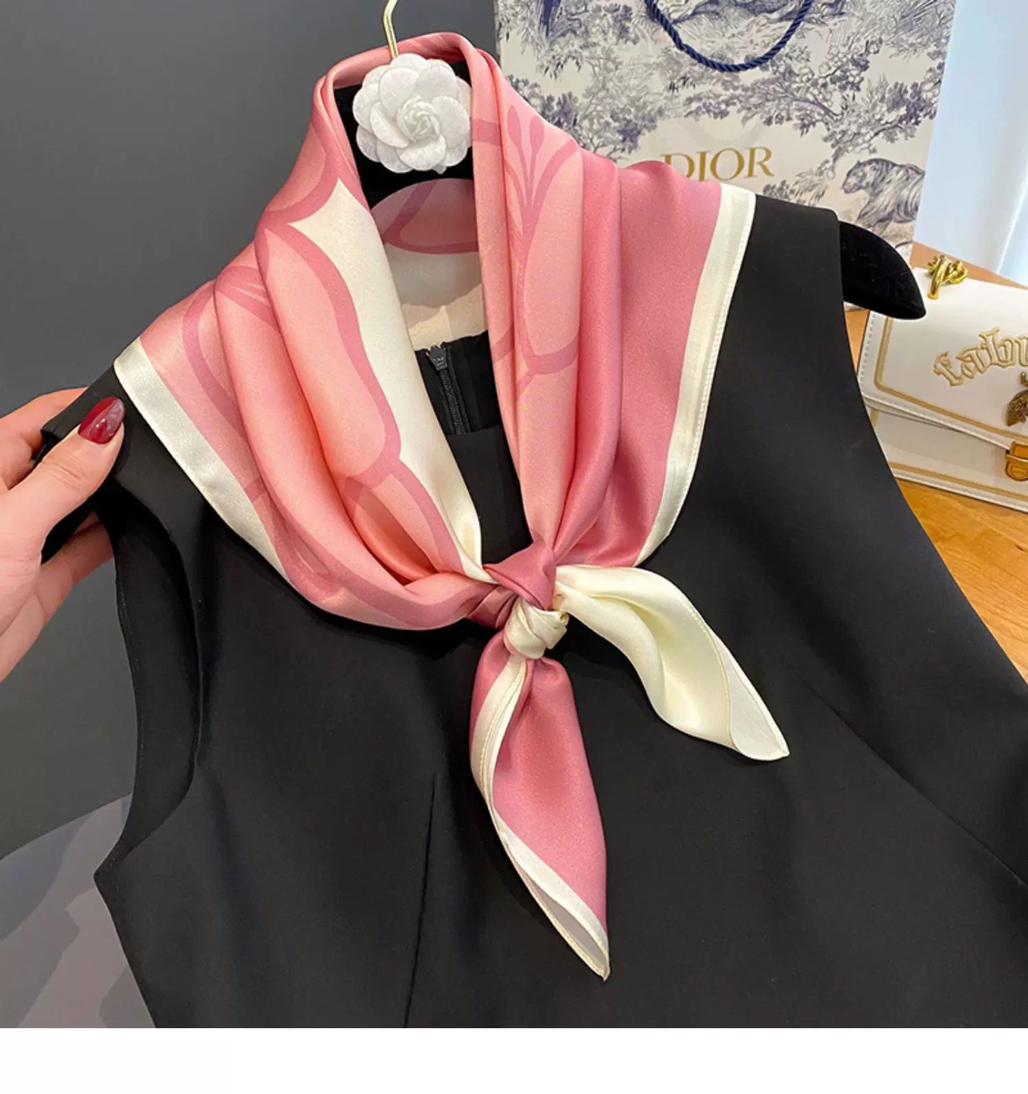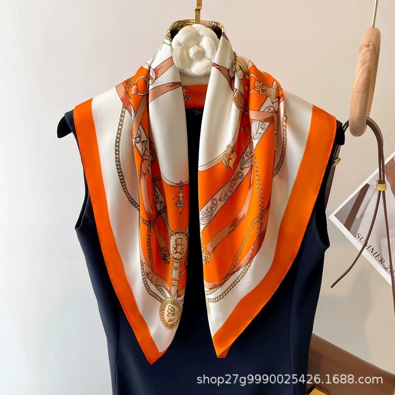 70 X70 한국 빈티지 체인 세련된 작은 스퀘어 스카프 여성의 얇은 실크 스카프 봄과 가을 모든 경기 장식 스튜어디스 스카프스토어 가기