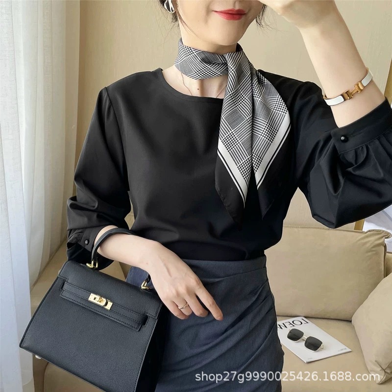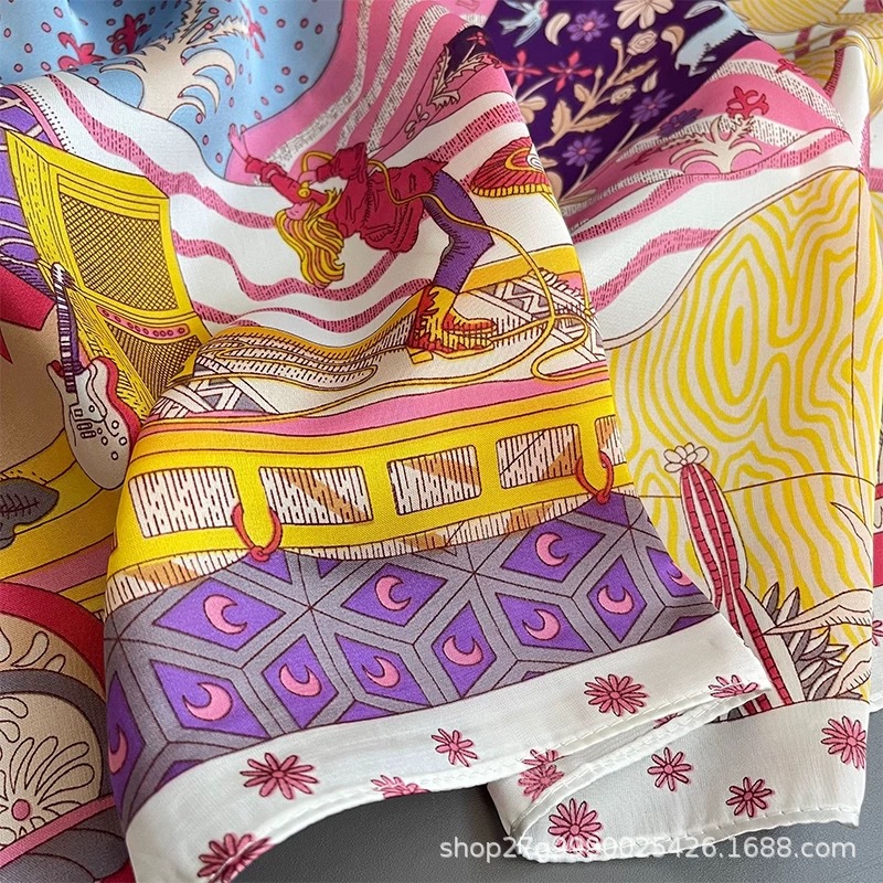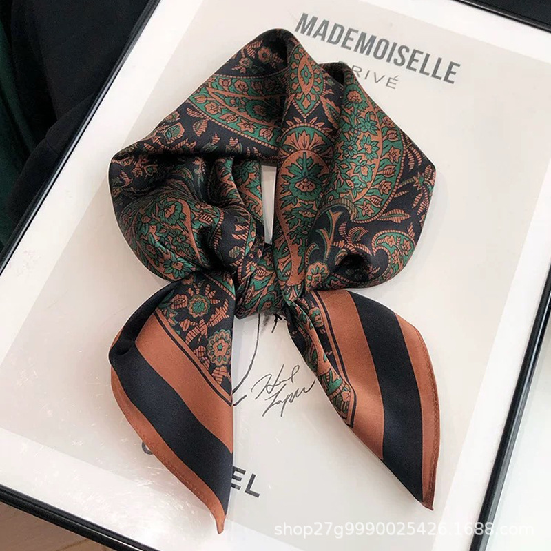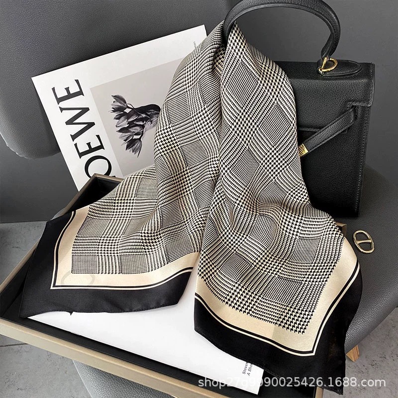 70 X70 한국 빈티지 체인 세련된 작은 스퀘어 스카프 여성의 얇은 실크 스카프 봄과 가을 모든 경기 장식 스튜어디스 스카프