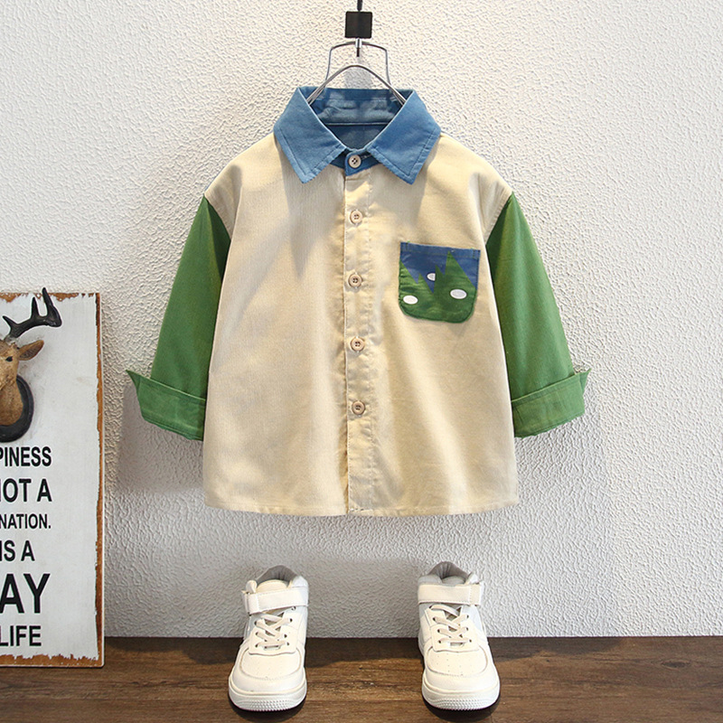 소년 셔츠 2025 새로운 도착 유행 아기의 이른 봄 Plutton 잘 생긴 최고의 어린이 봄과 가을 색상 매칭 긴팔 셔츠 트렌디 쿨
