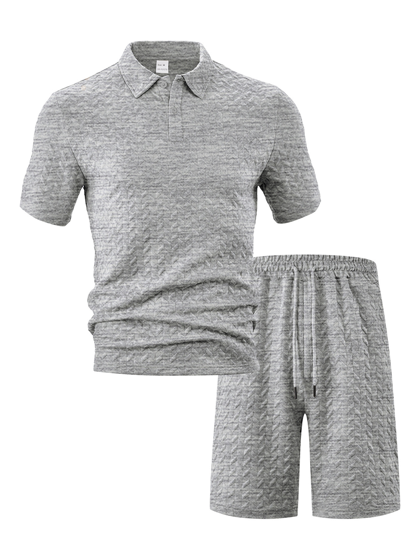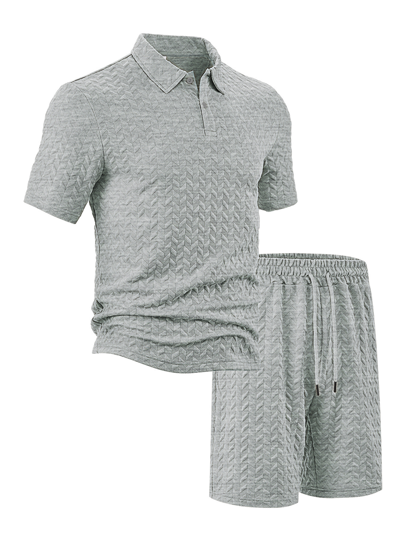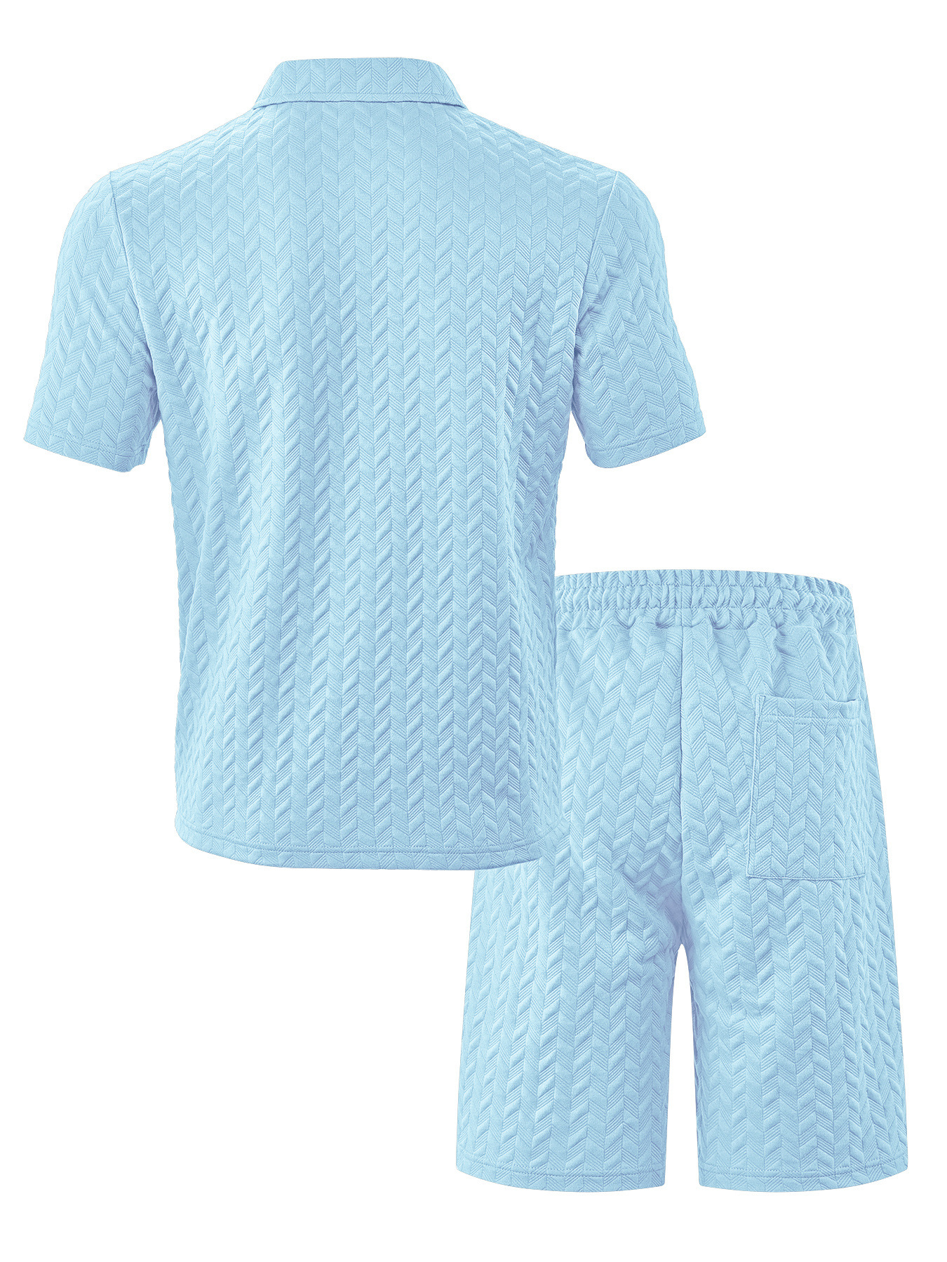 유럽과 미국의 국경 간 뜨거운 판매 여름 자카드 멀티 컬러 캐주얼 정장 티셔츠 반바지 남성 솔리드 컬러 패션 스포츠 피트니스 남성