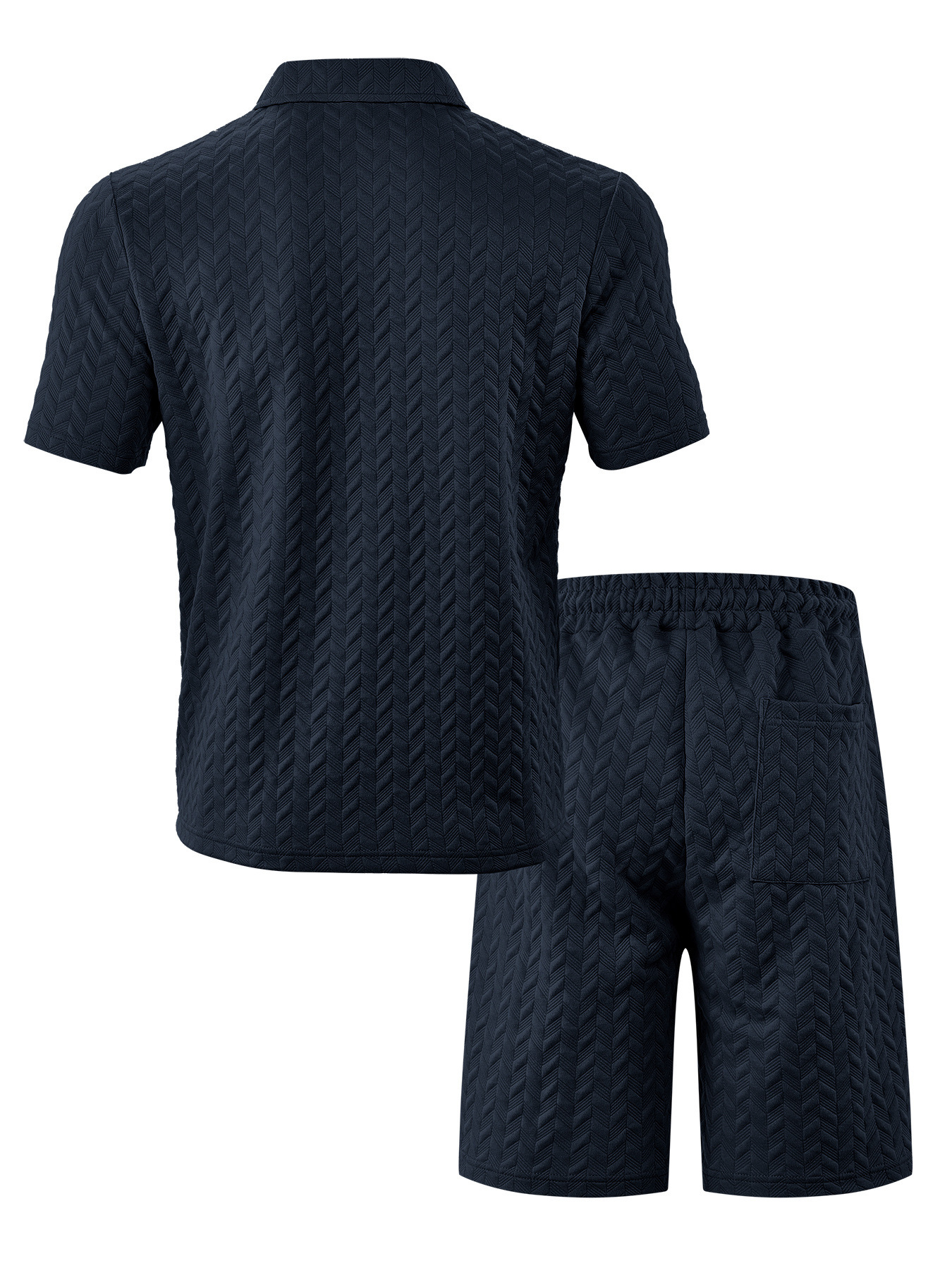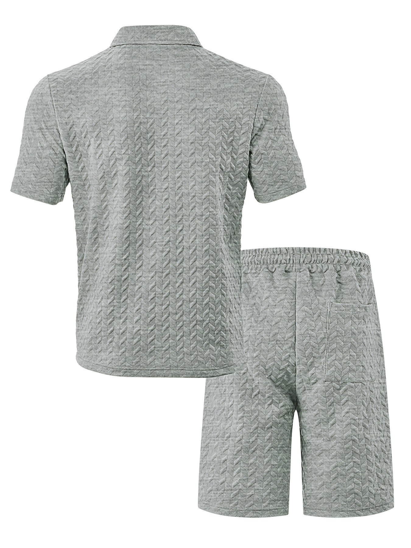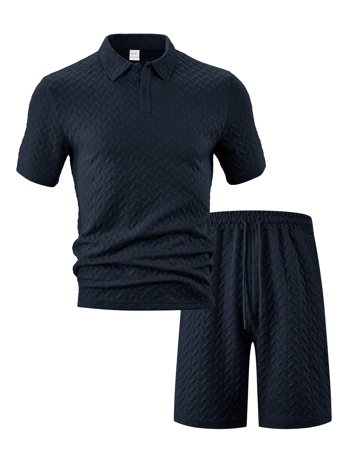 유럽과 미국의 국경 간 뜨거운 판매 여름 자카드 멀티 컬러 캐주얼 정장 티셔츠 반바지 남성 솔리드 컬러 패션 스포츠 피트니스 남성
