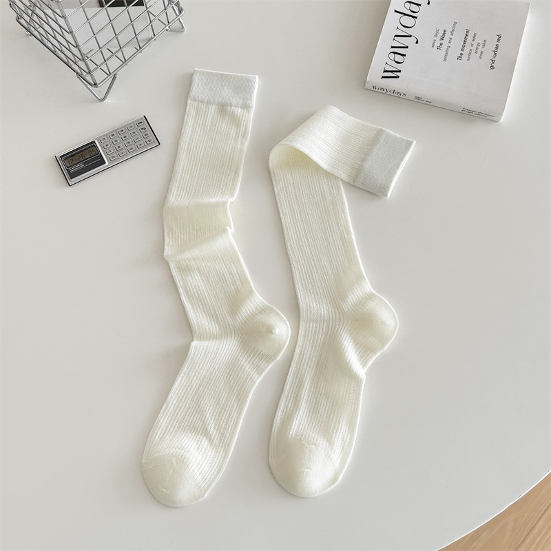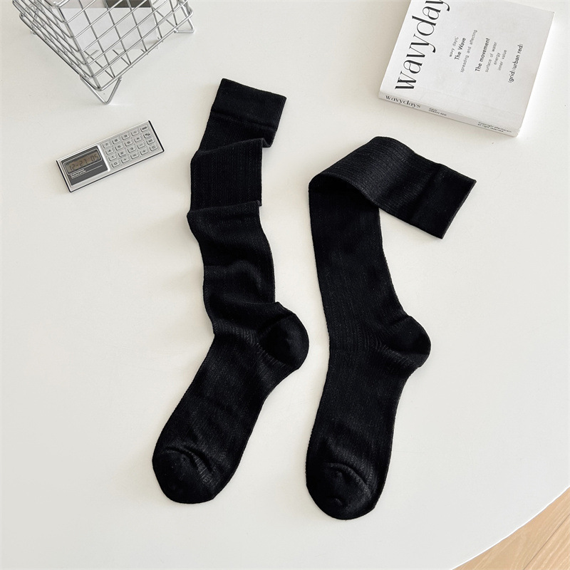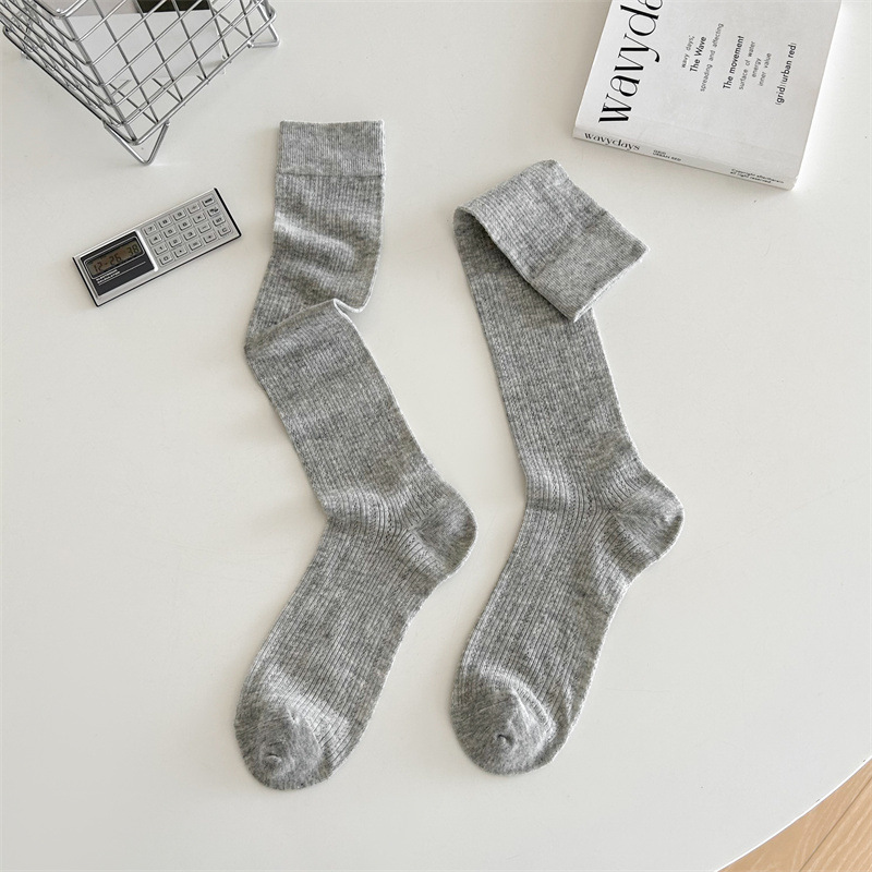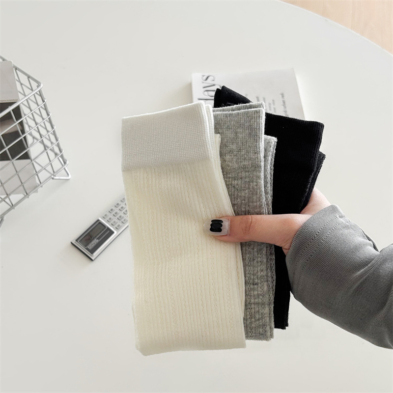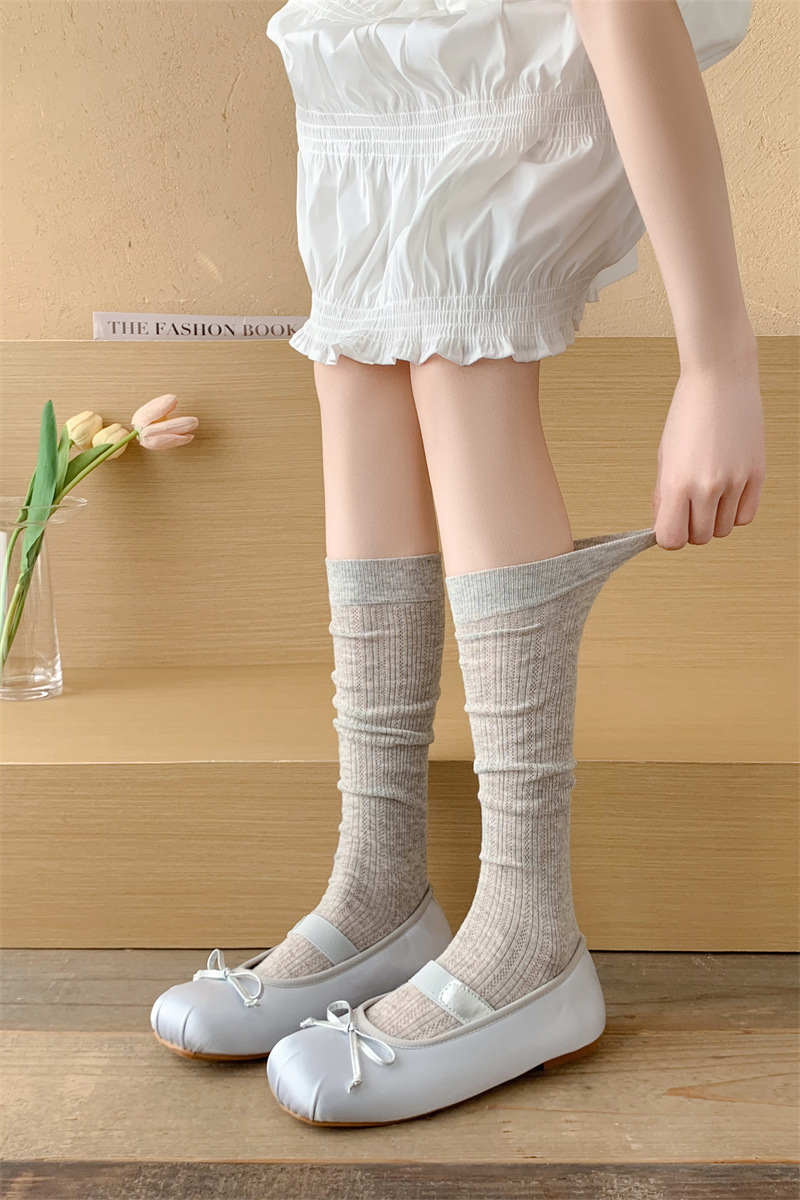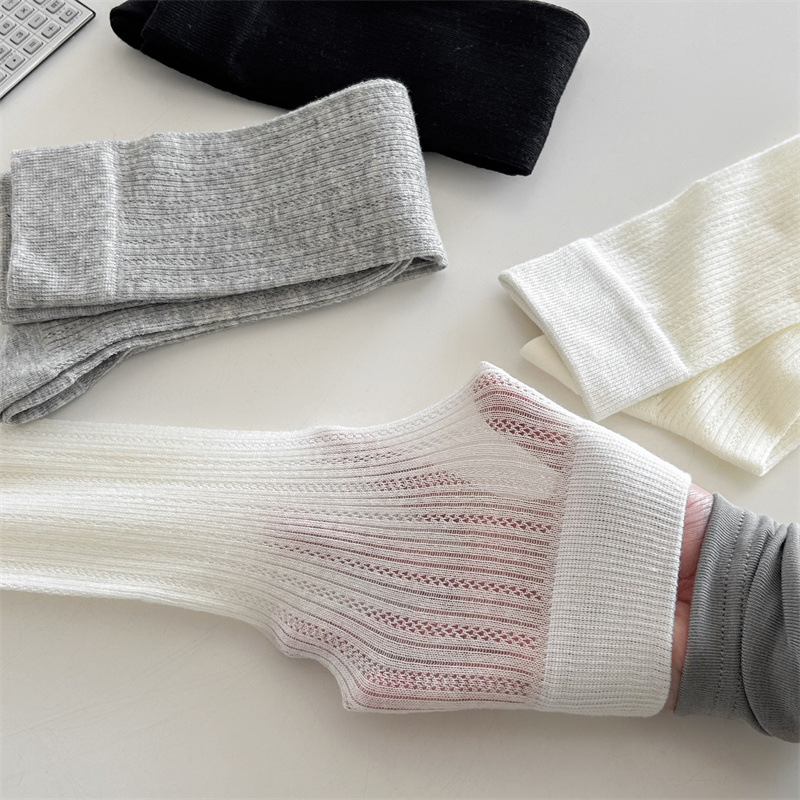 봄과 여름 양말 여성의 얇은 솔리드 컬러 다크 코튼 여성용 얕은 양말 간단한 한국식 계층화 된 양말 높은 스타킹