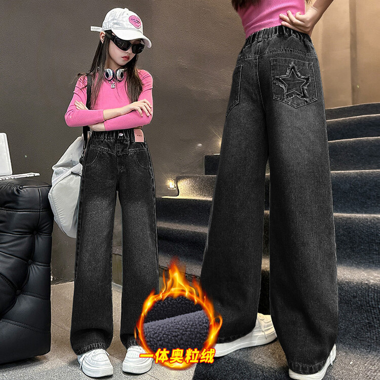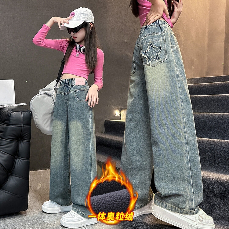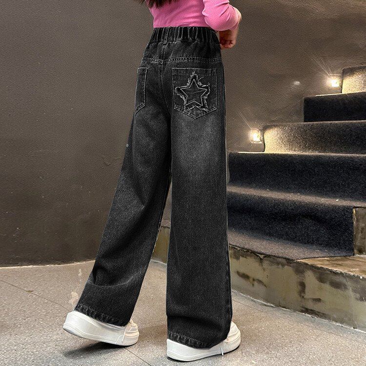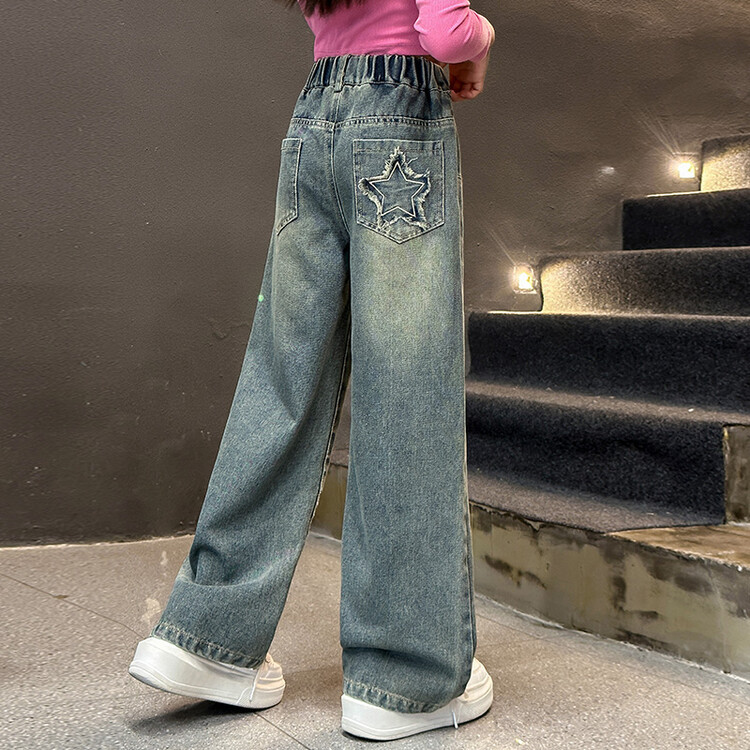 여아 봄 여름 청바지 패션 소녀 한국 스타일 중대형 아동용 세련된 다용도 일자형 별무늬 루즈핏 일자바지스토어 가기