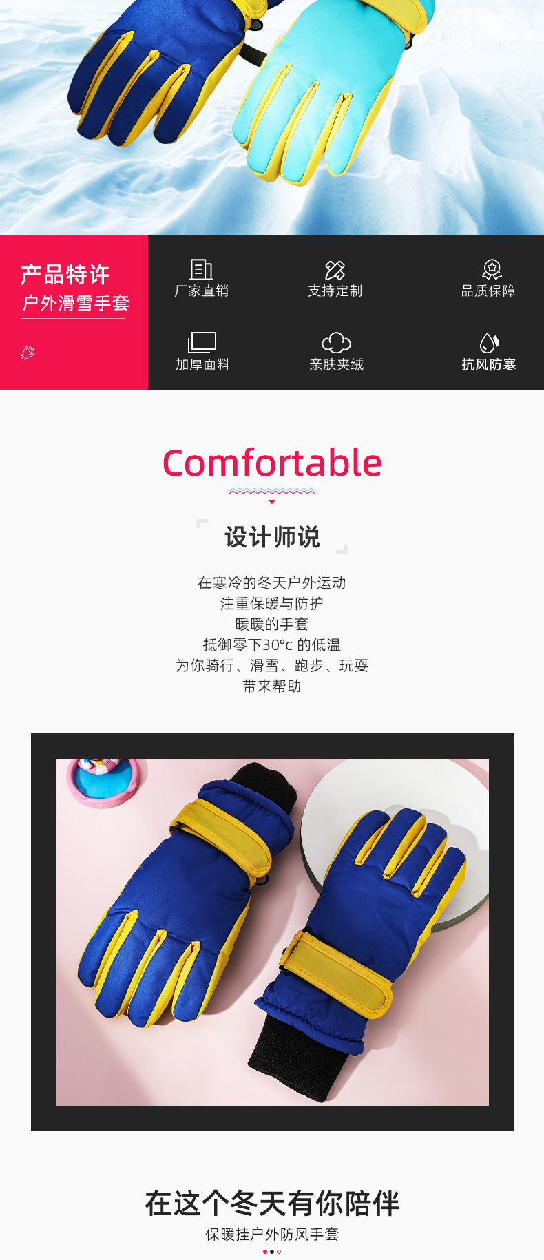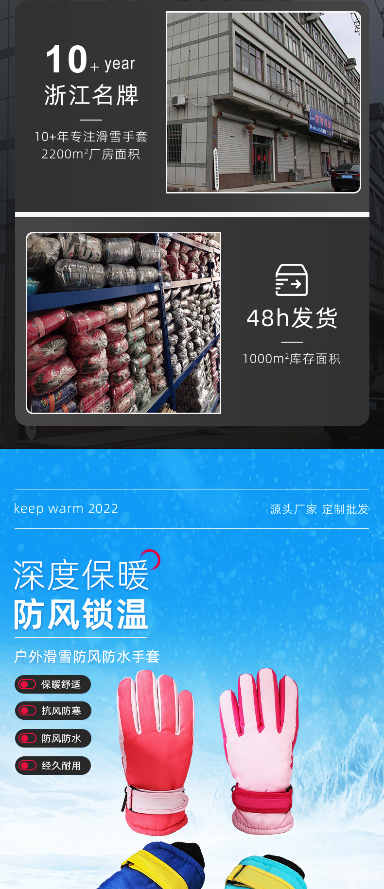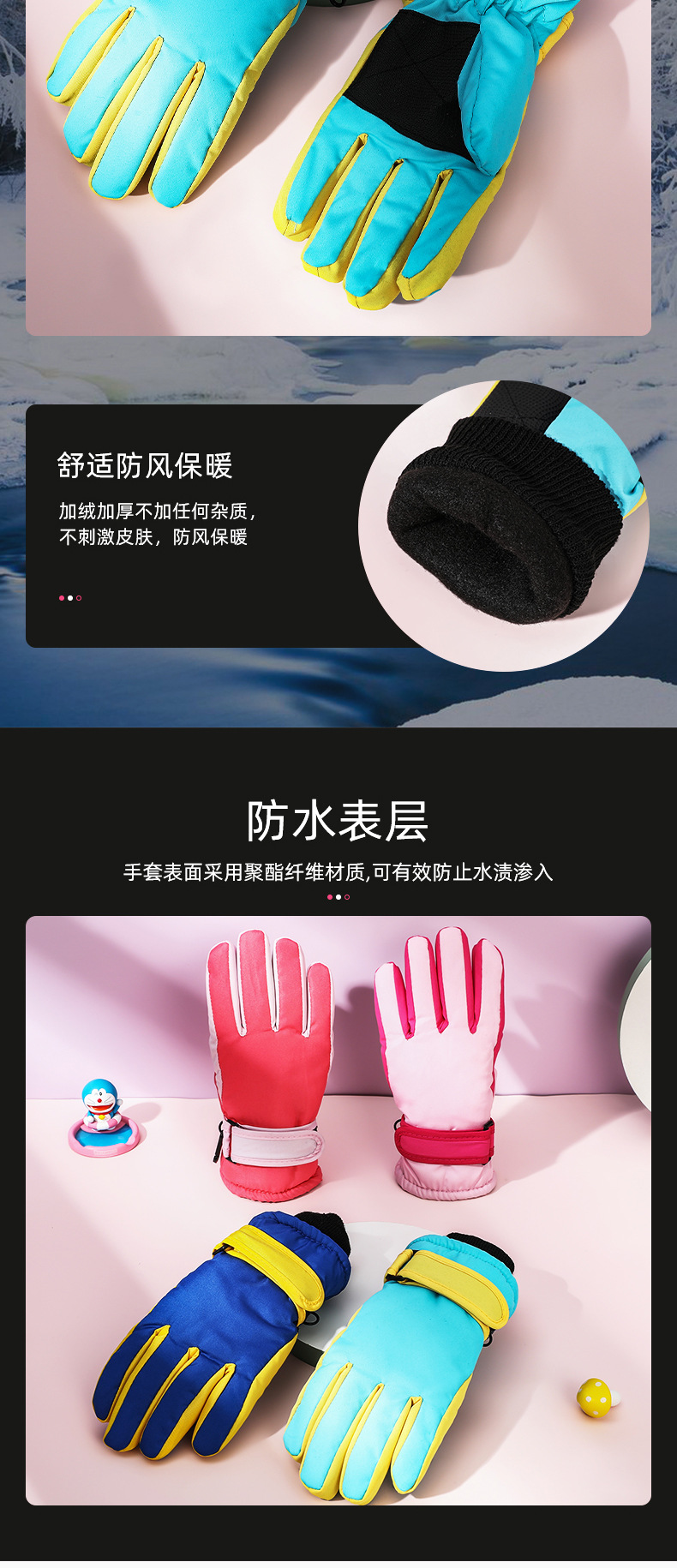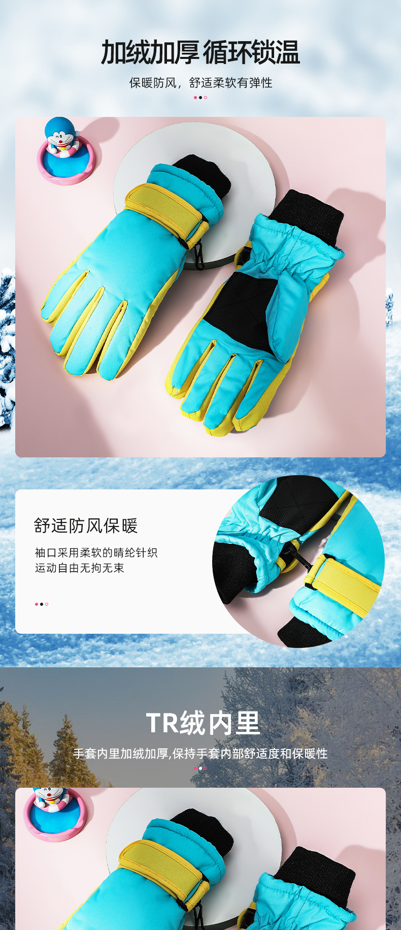 3-9세 어린이를 위한 공장 맞춤형 야외 스키 장갑, 크로스보더 벨벳 방풍 및 따뜻한 사이클링 스포츠 장갑