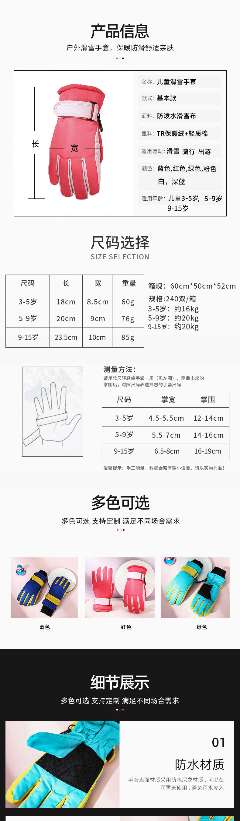 3-9세 어린이를 위한 공장 맞춤형 야외 스키 장갑, 크로스보더 벨벳 방풍 및 따뜻한 사이클링 스포츠 장갑스토어 가기