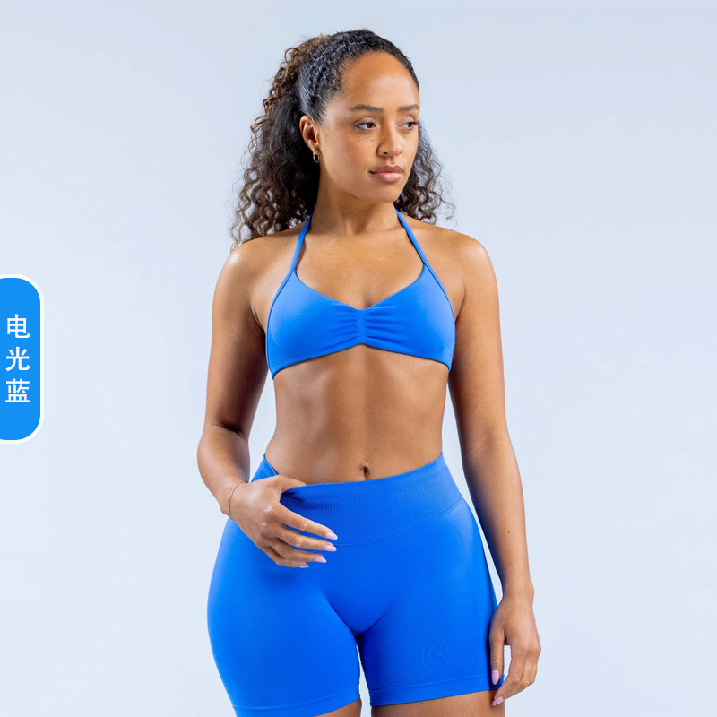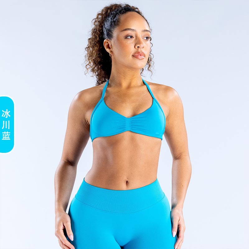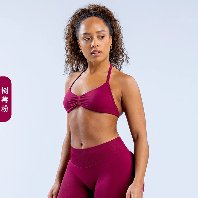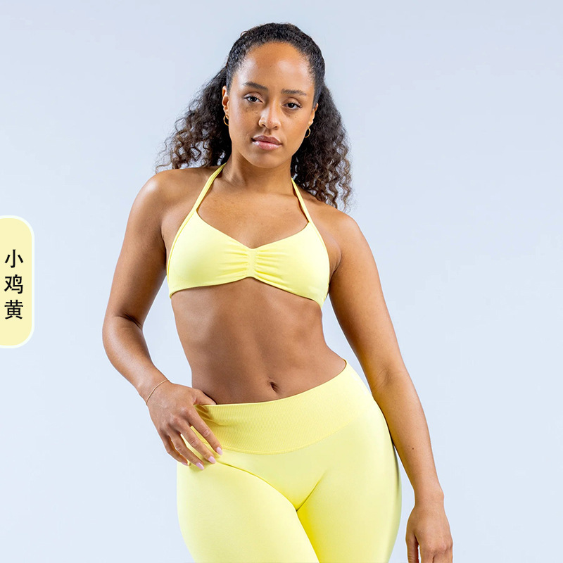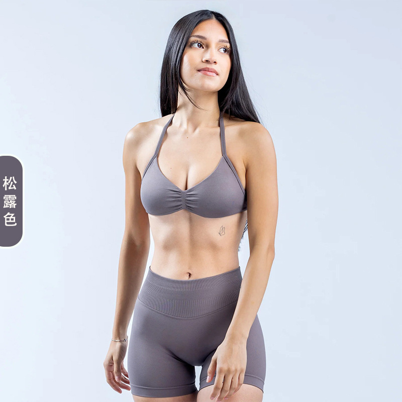 DFYNE 국경 간 인기 유럽과 미국 스타일의 대형 백리스 홀터넥 슬링 브라 스포츠 타이트 요가 브라 여성용 슬링스토어 가기