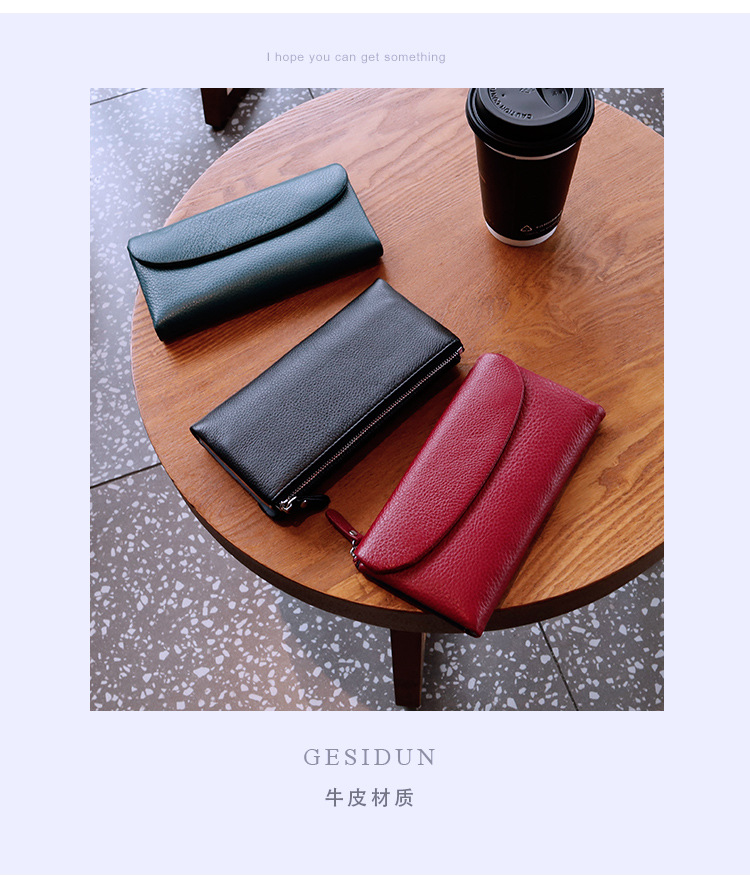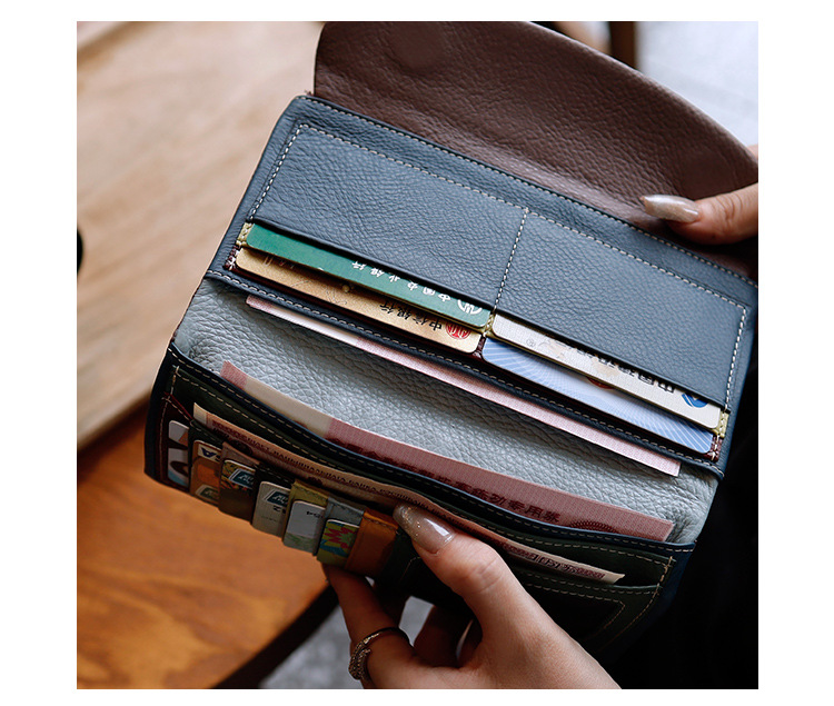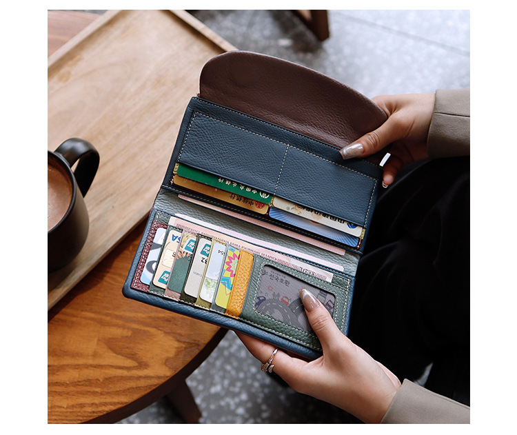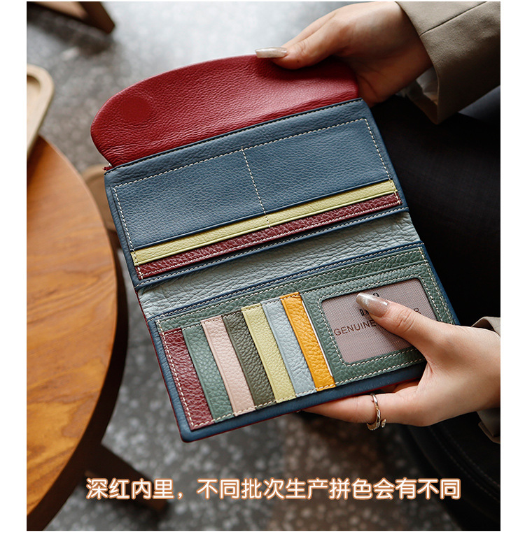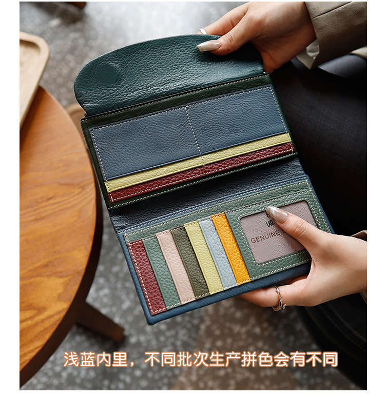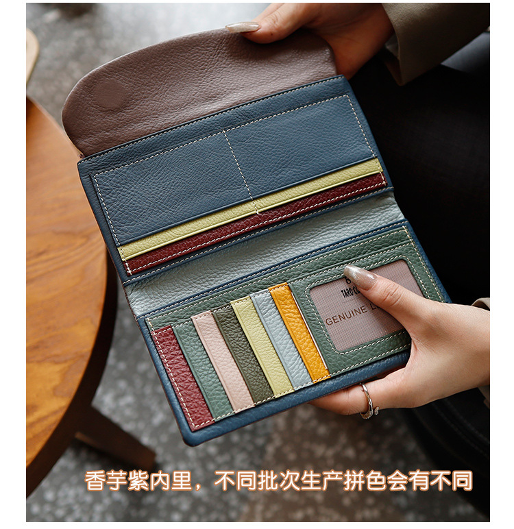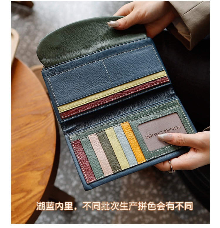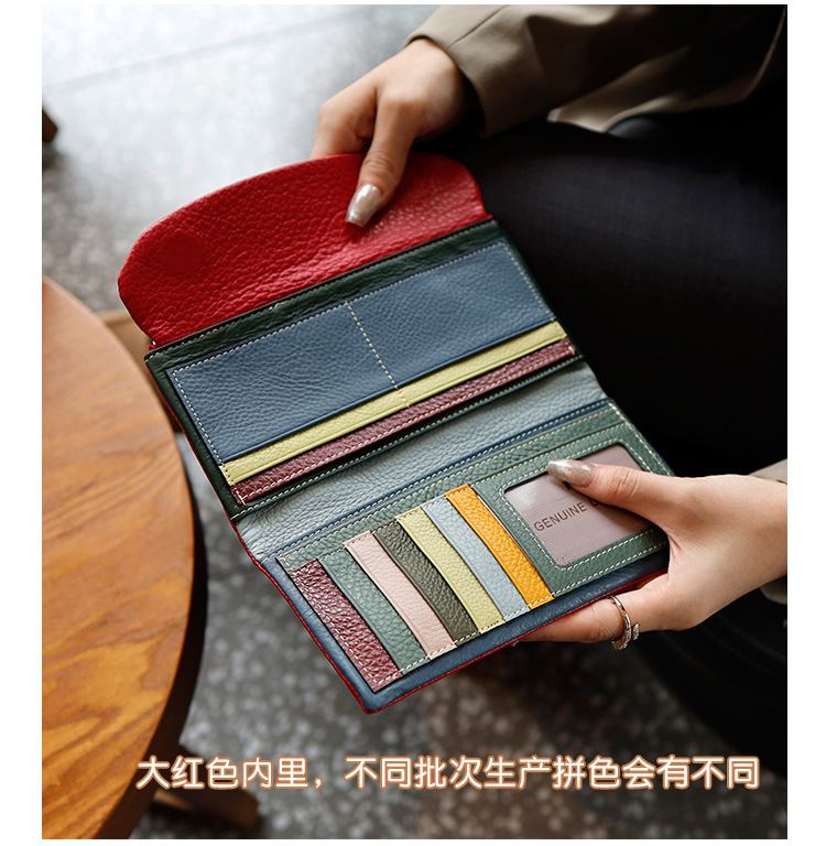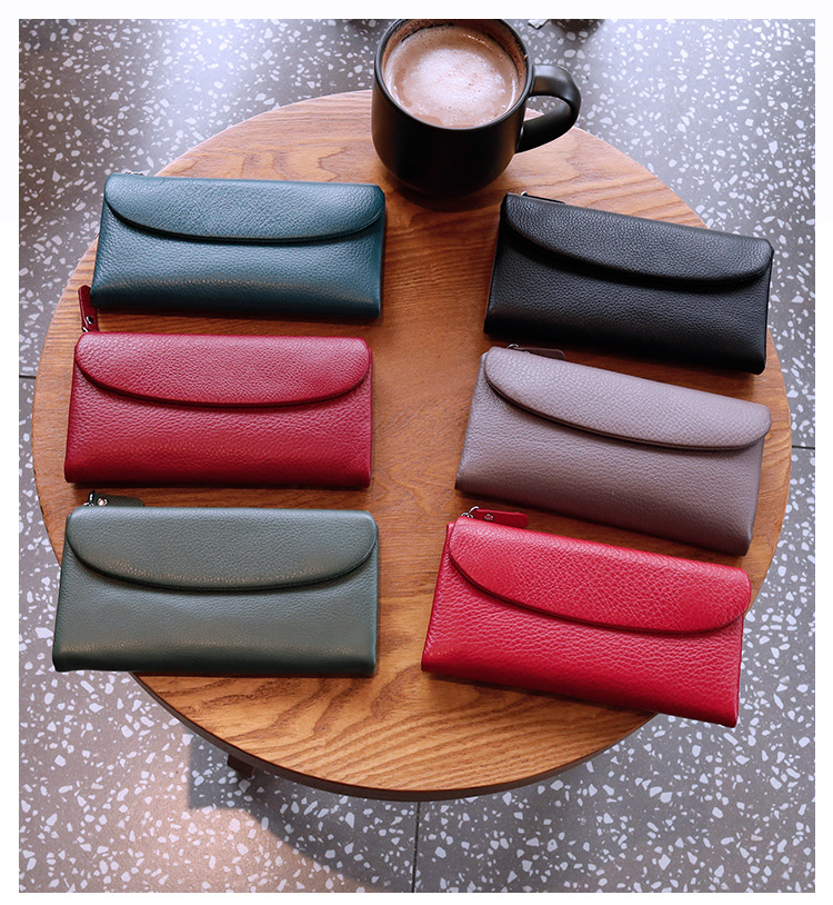 새로운 가죽 지갑 여성의 긴 접이식 탑 레이어 가죽 지갑 대용량 카드 가방 대외 무역 국경 도매스토어 가기