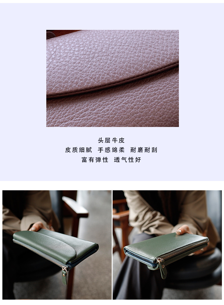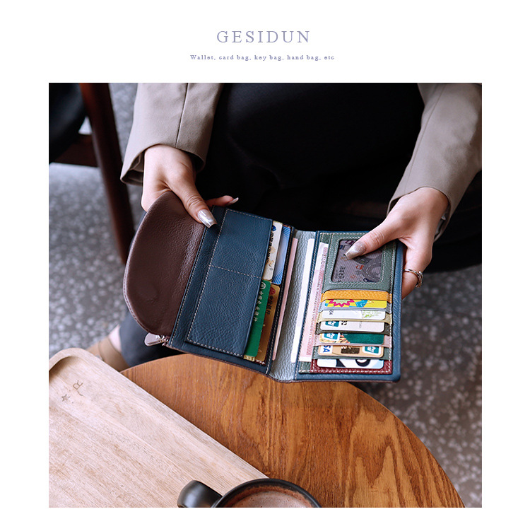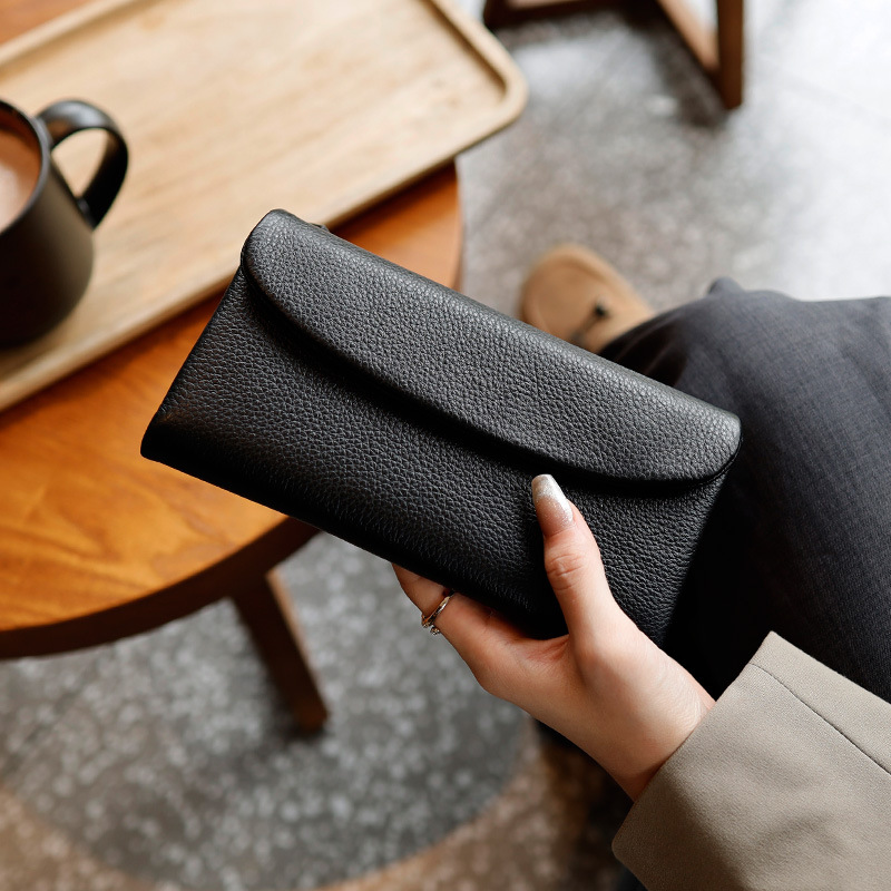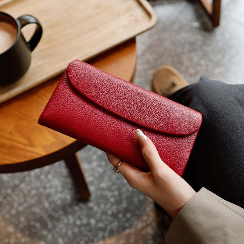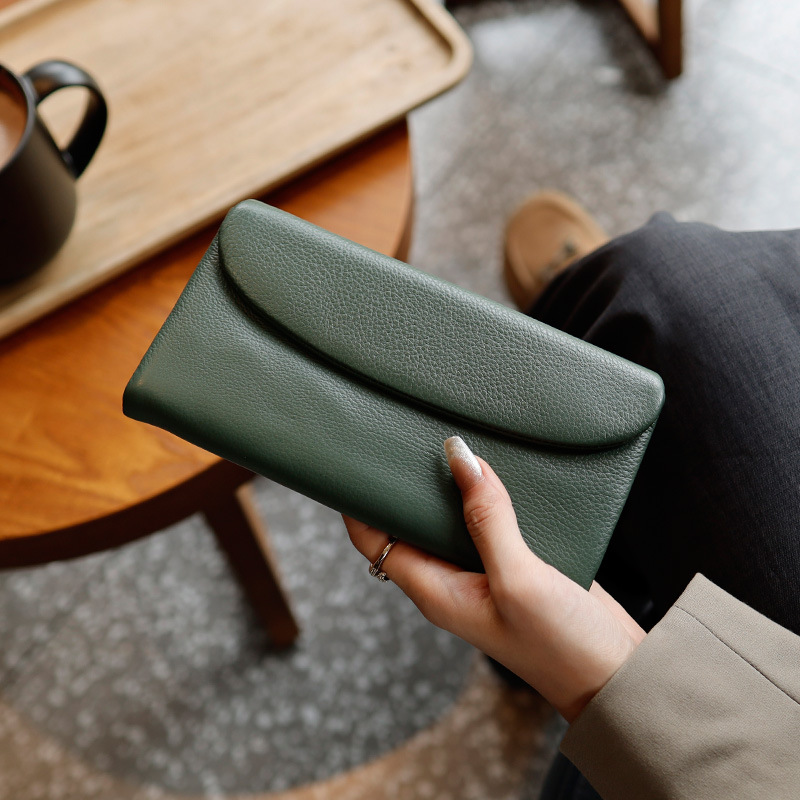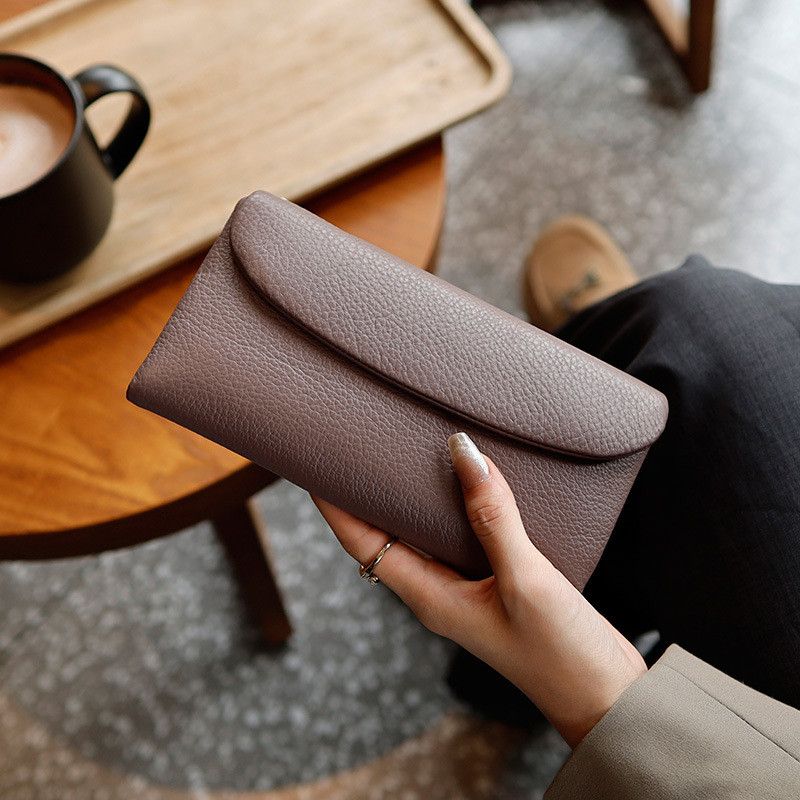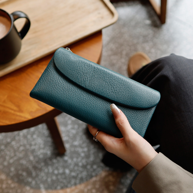 새로운 가죽 지갑 여성의 긴 접이식 탑 레이어 가죽 지갑 대용량 카드 가방 대외 무역 국경 도매스토어 가기